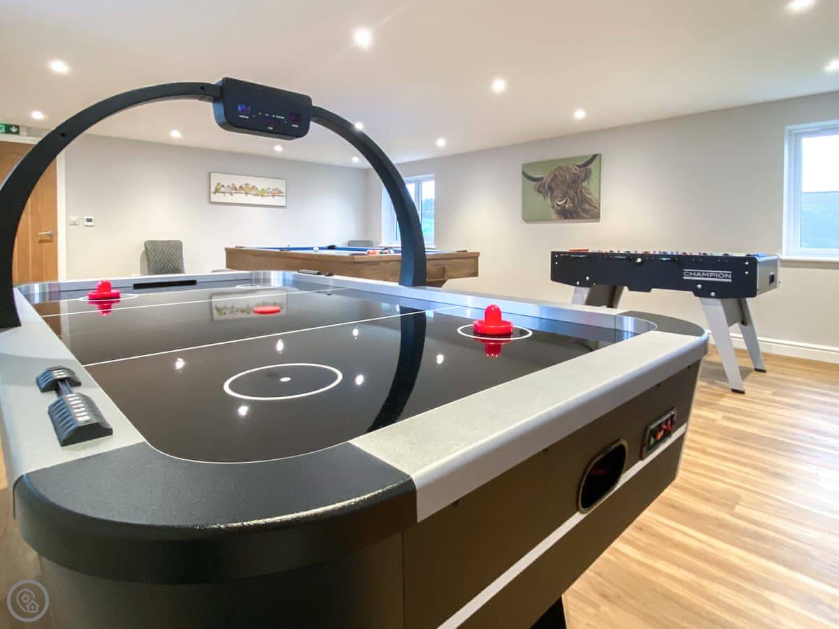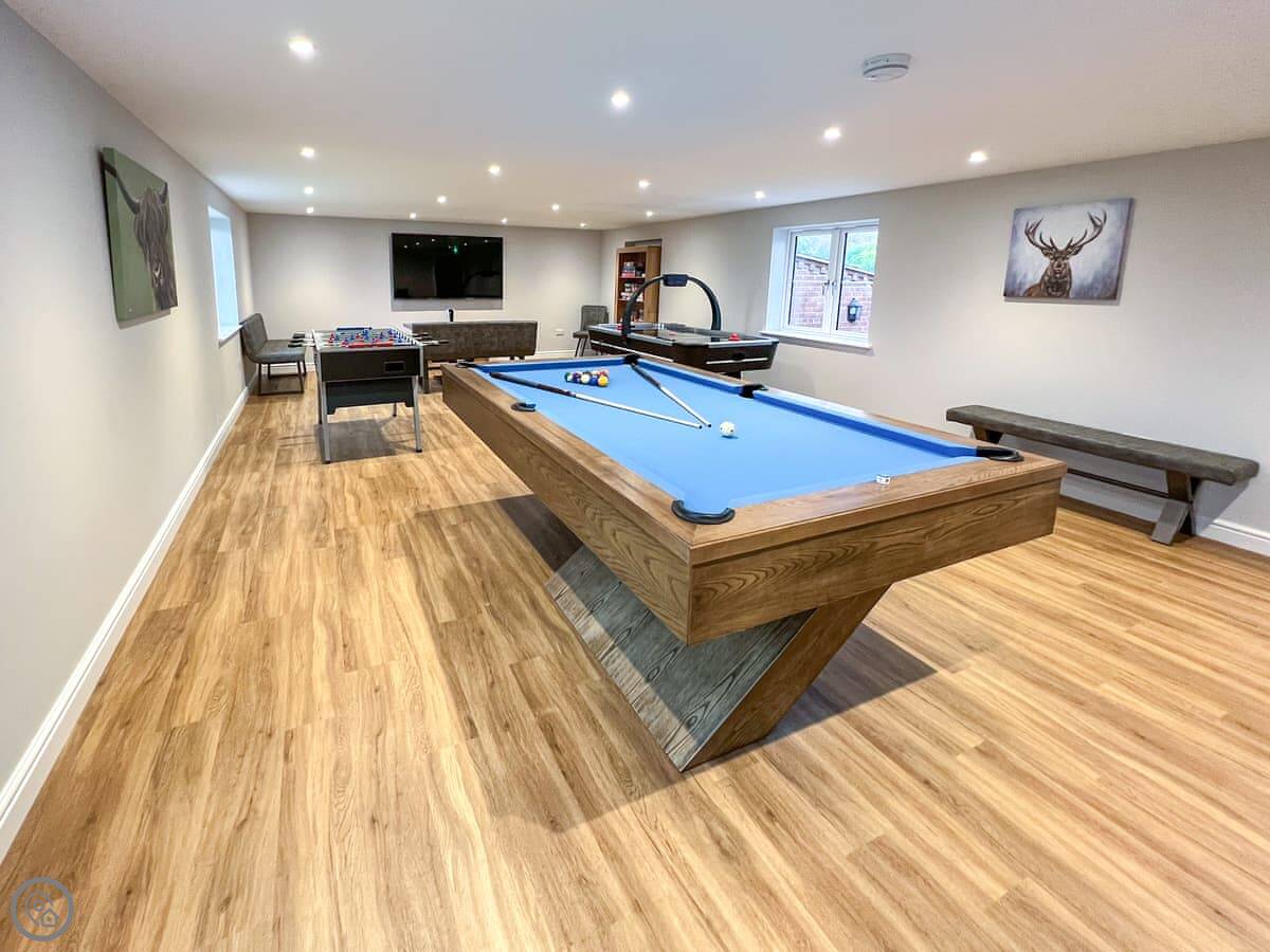 Inside, there's a games room. The property is wheelchair accessible at the entrance and has ground floor facilities. It has all the things you'd expect: washing machine, dishwasher, WiFi, TV. Bedding and towels are included. They can provide a cot and highchair. No pets allowed.