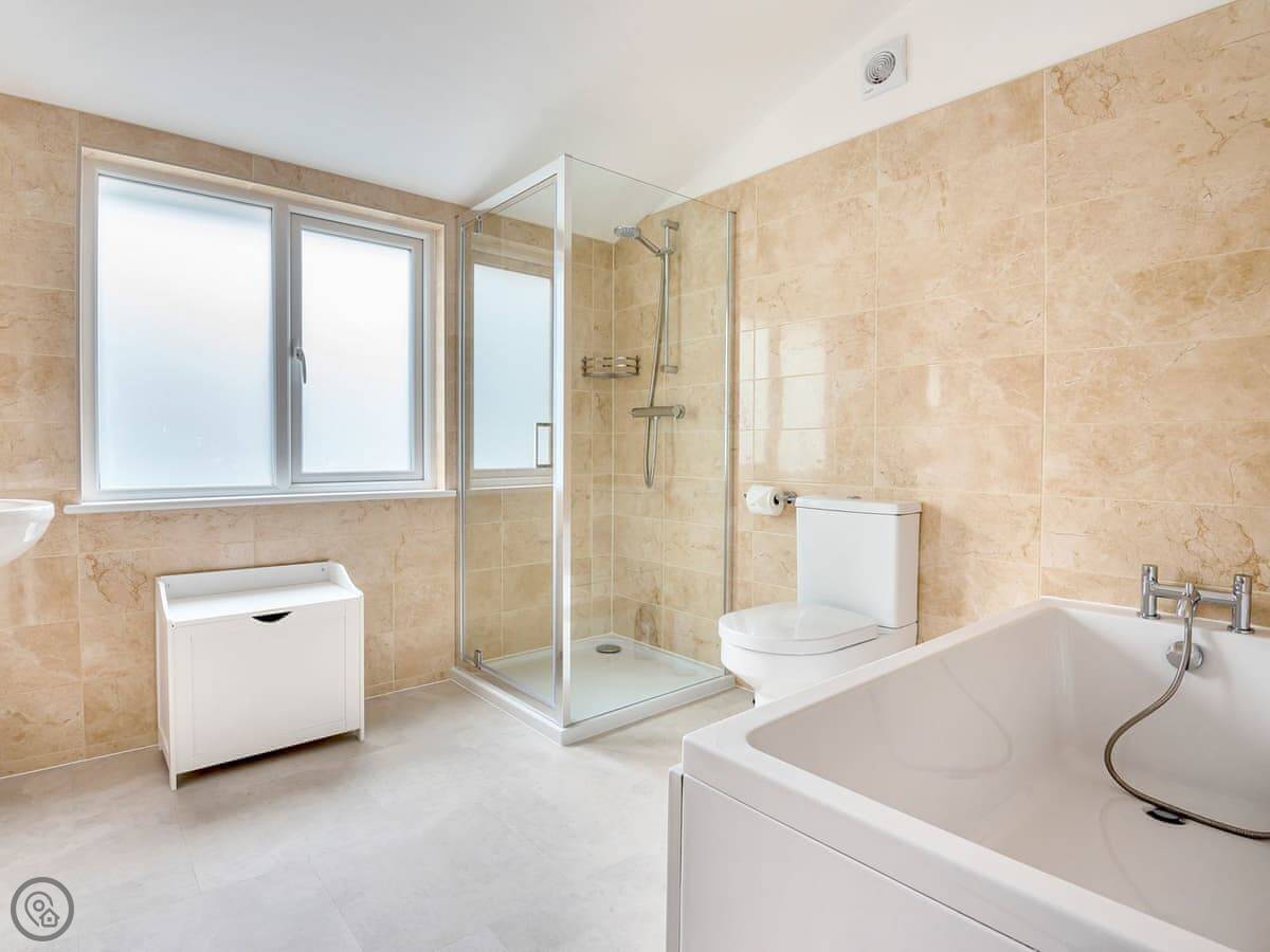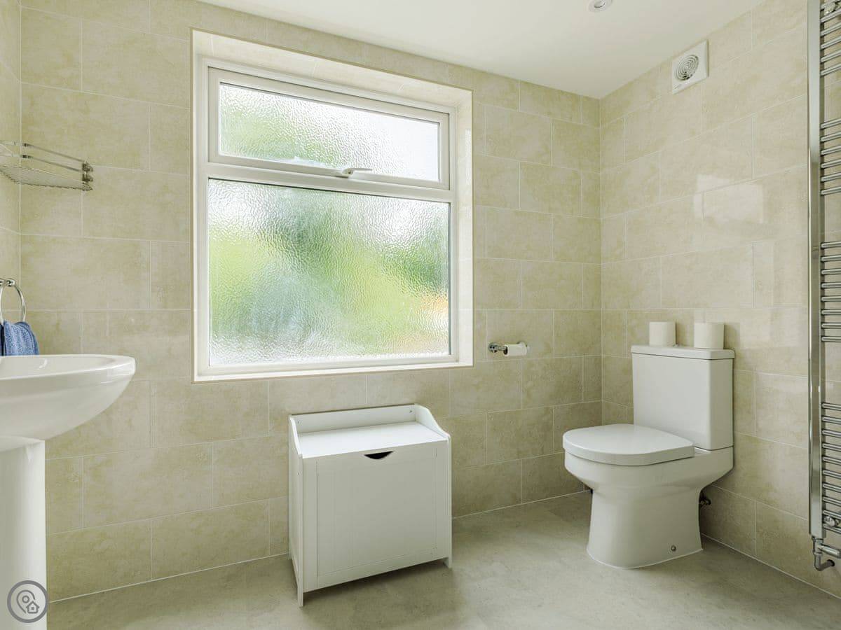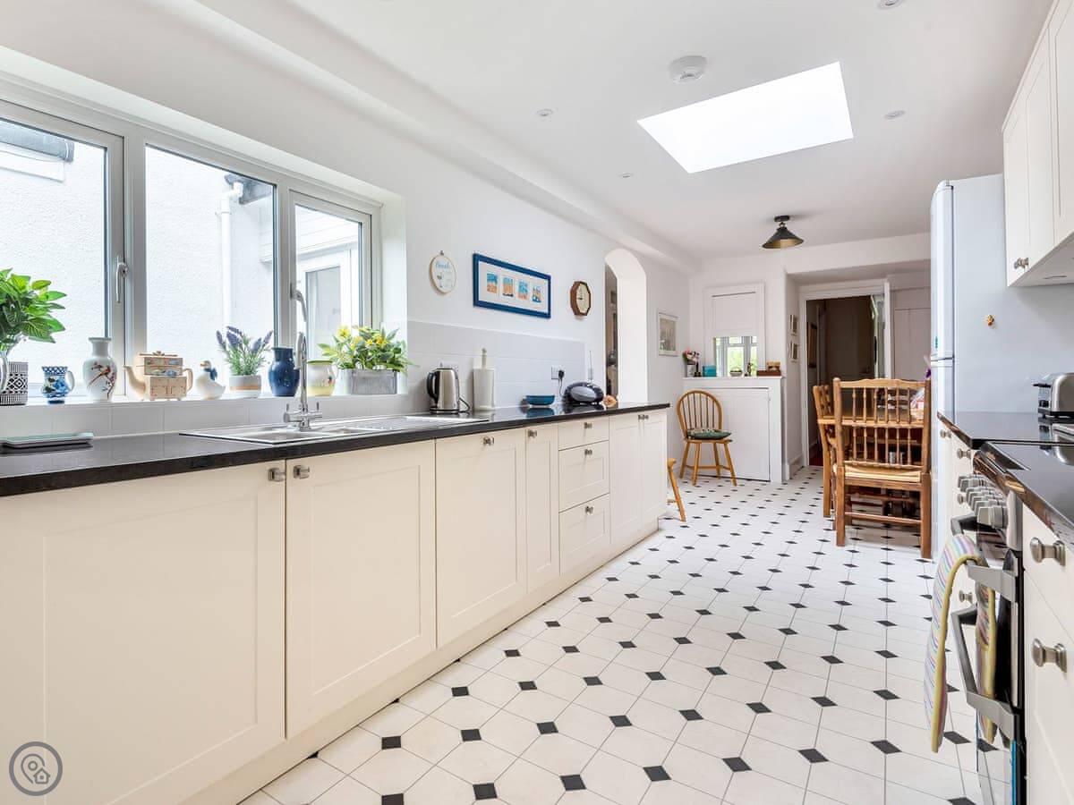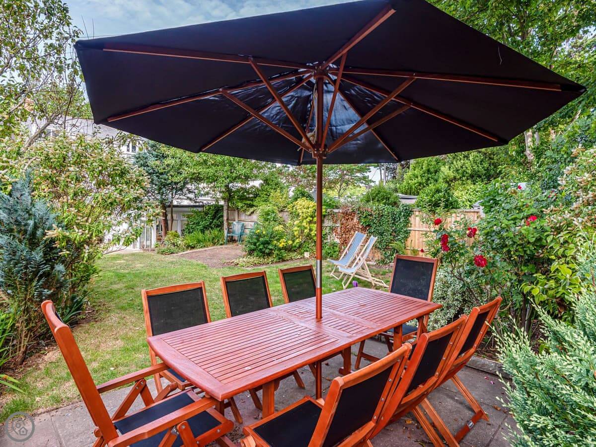 It's a big house, sleeps eight. Four bedrooms, three bathrooms. It's got a 5 Star rating. That means it's been recently done up and everything is in good order. The garden is a good size, enclosed, and gets the sun. There's outdoor seating.