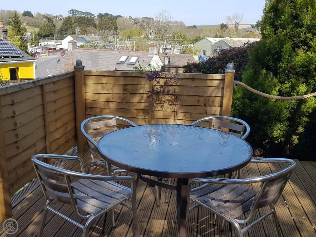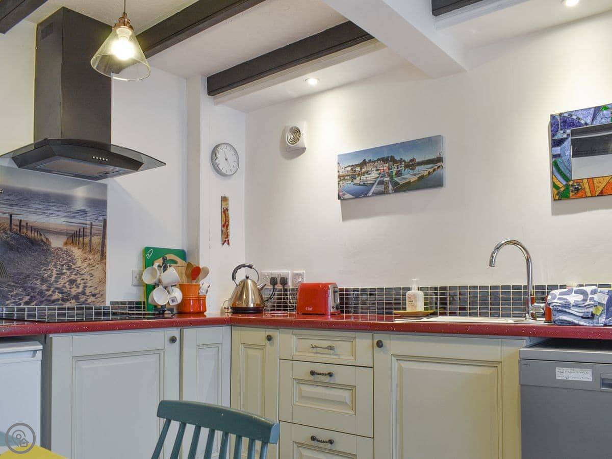 The cottage offers comfortable and traditional accommodation. The kitchen is well equipped and deceptively spacious, allowing you to rustle up breakfast before your day’s adventure or evening meal after it! The living space is inviting and cosy, where you can unwind and relax and perhaps watch a movie. Upstairs, a double bedroom and second bedroom with bunk beds will be welcome sights after a busy day out. The bathroom has a Heated towel rail and excellent shower cubicle, whilst the garden is elevated having lovely views with a nautical feel offering decking and seating, ideal for morning coffee or that all important beverage before bedime! Guest can unload outside the property, parking is 100 yards along the road. A well-stocked small supermarket is within easy walking distance.