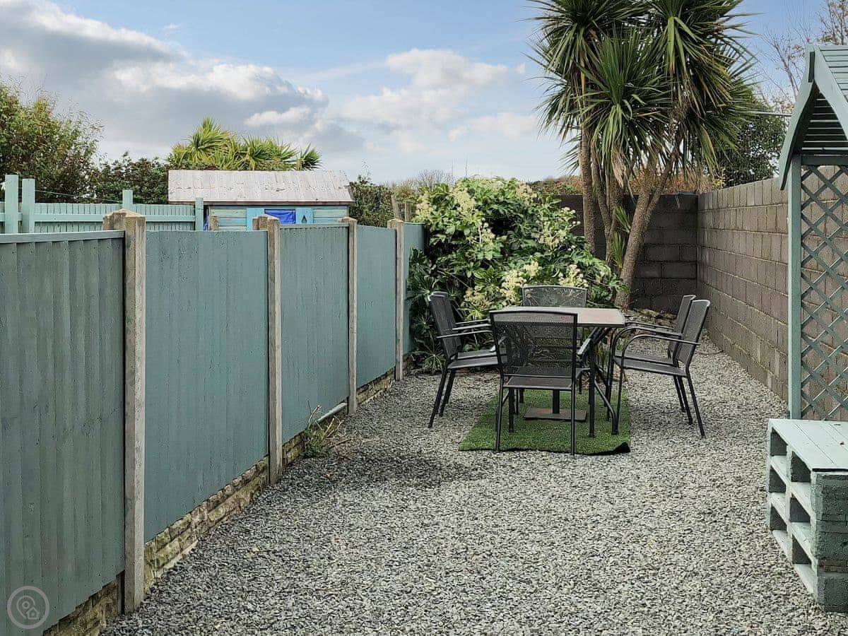 Out the back there's an enclosed garden. It's paved, with a table and chairs and a barbecue. It gets the sun in the afternoon.