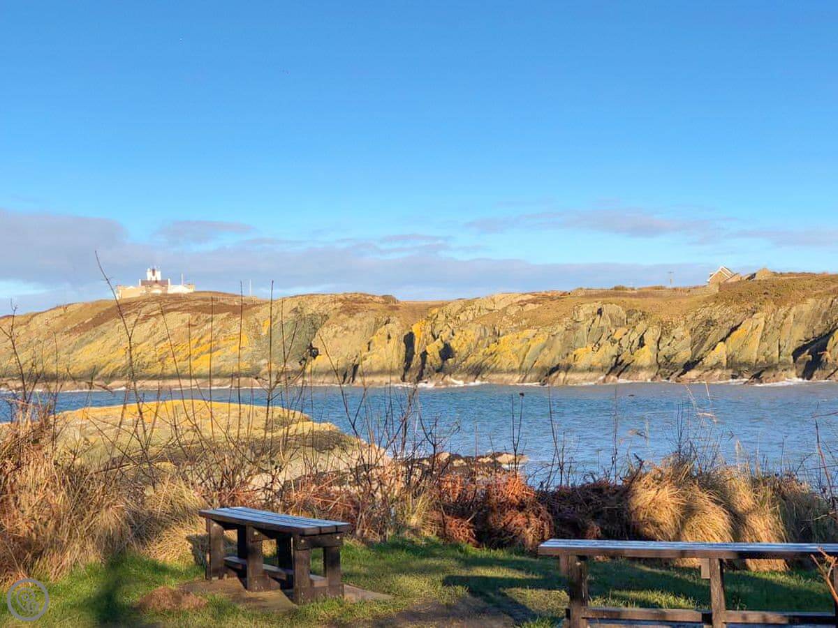 Bull Bay is about two miles away. It's a small cove. You see seals there sometimes. Cemaes Bay is a bit further, maybe ten minutes in the car. It’s a bigger village with a nice beach and harbour.