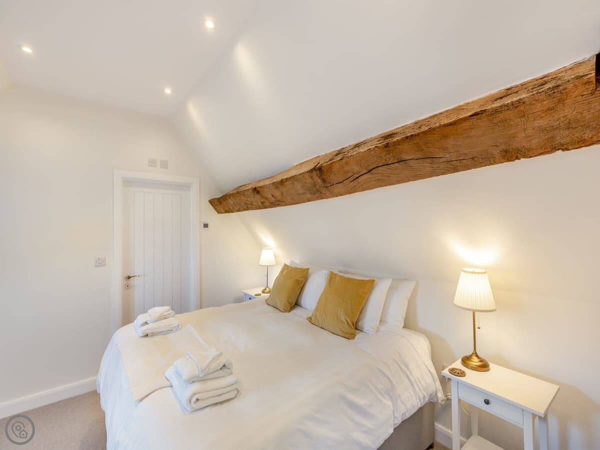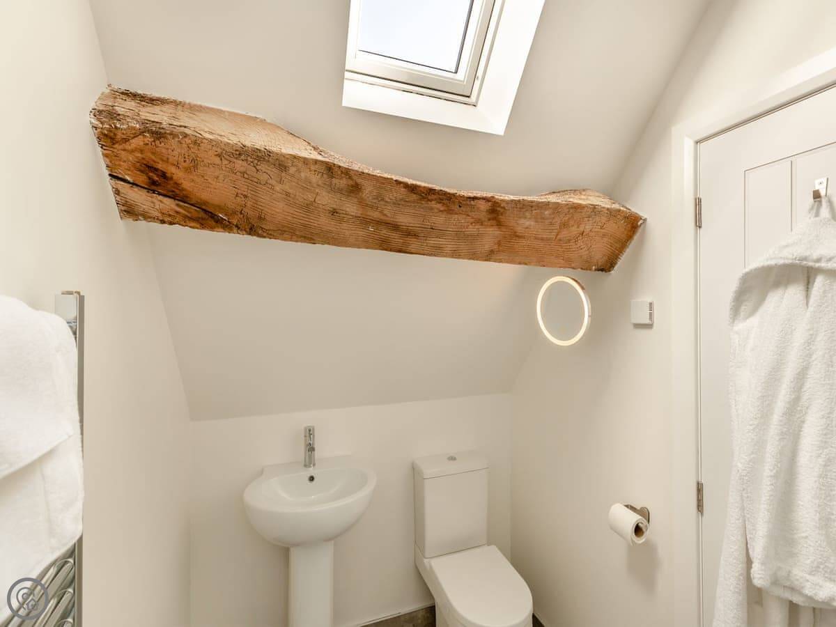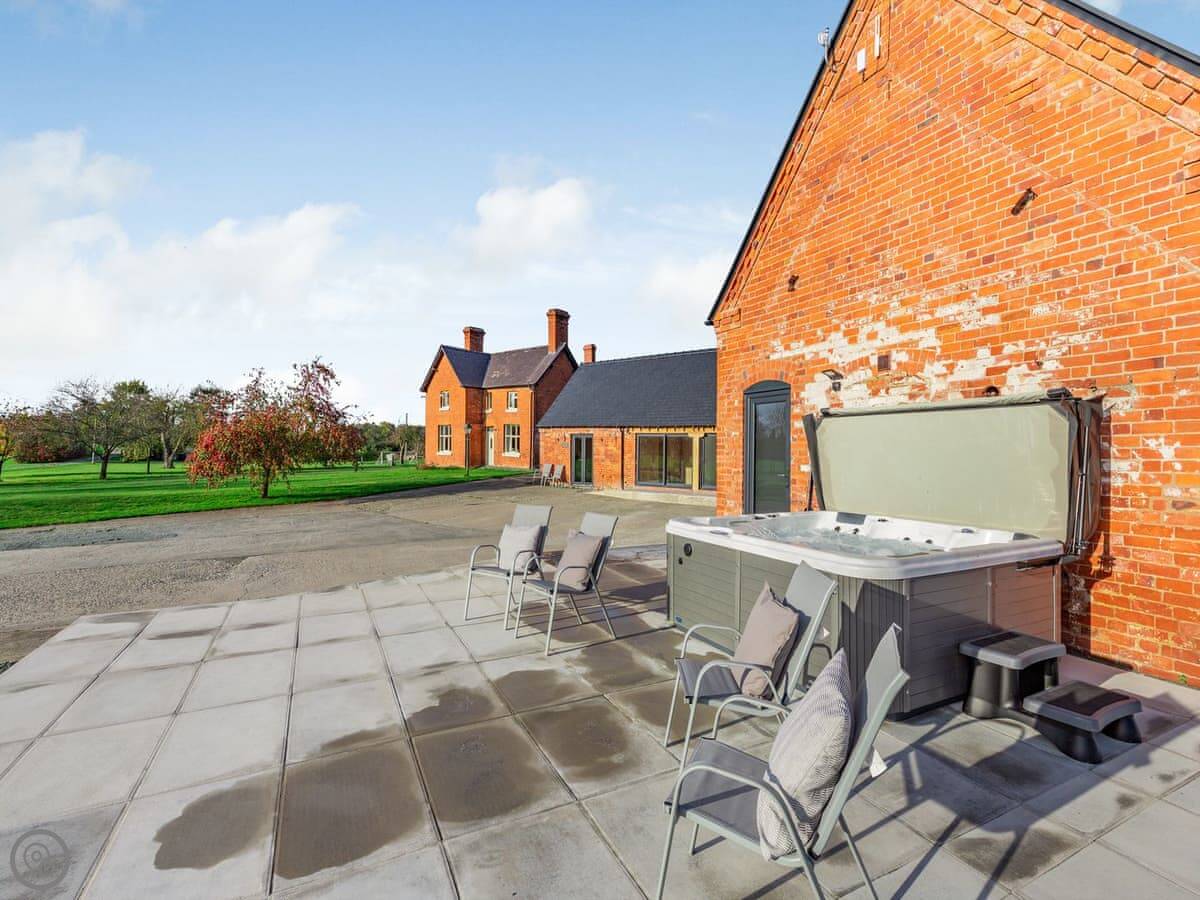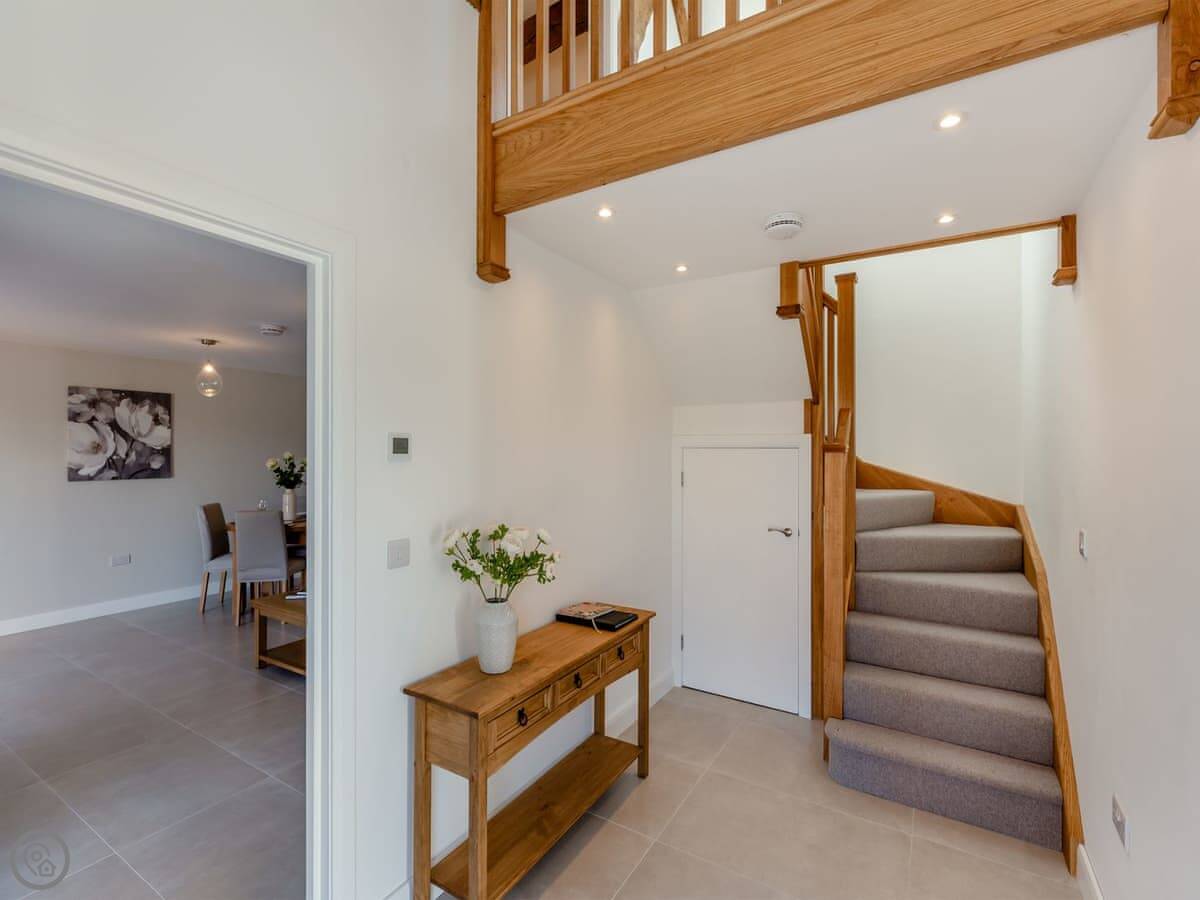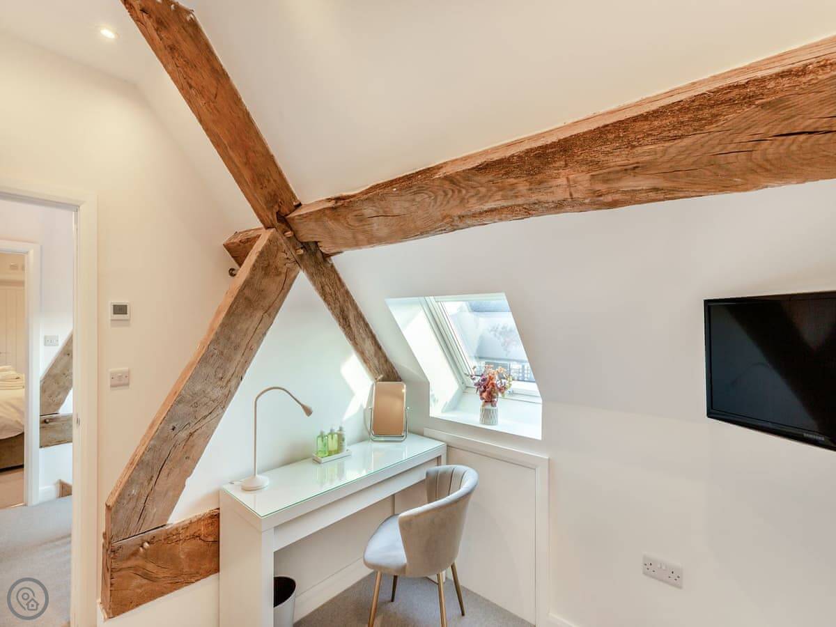 The barn is open-plan inside, with wooden beams. Big windows. You get a view over the fields from here, and you can see the River Severn. It's a working farm, so you'll see sheep and hear tractors sometimes.