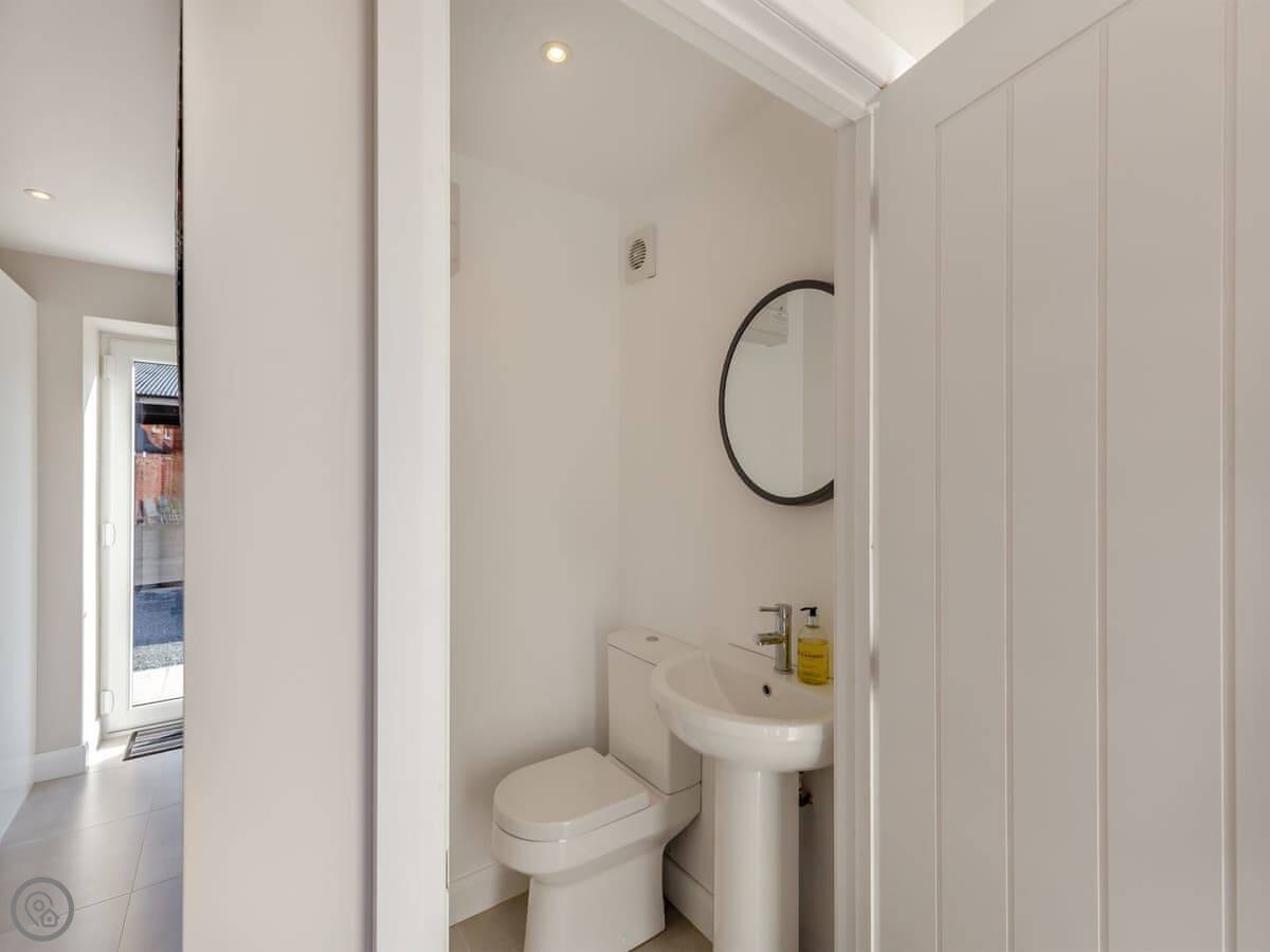 Inside, it's got what you'd need. Washing machine, TV, WiFi. Bedding and towels are included. There's a cot and a highchair if you need them.