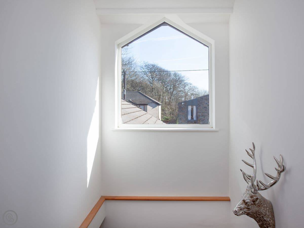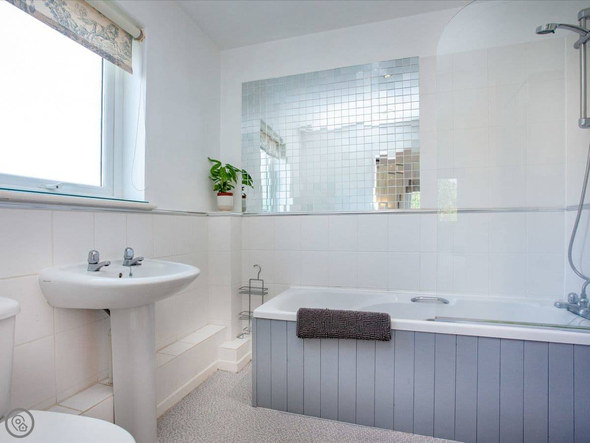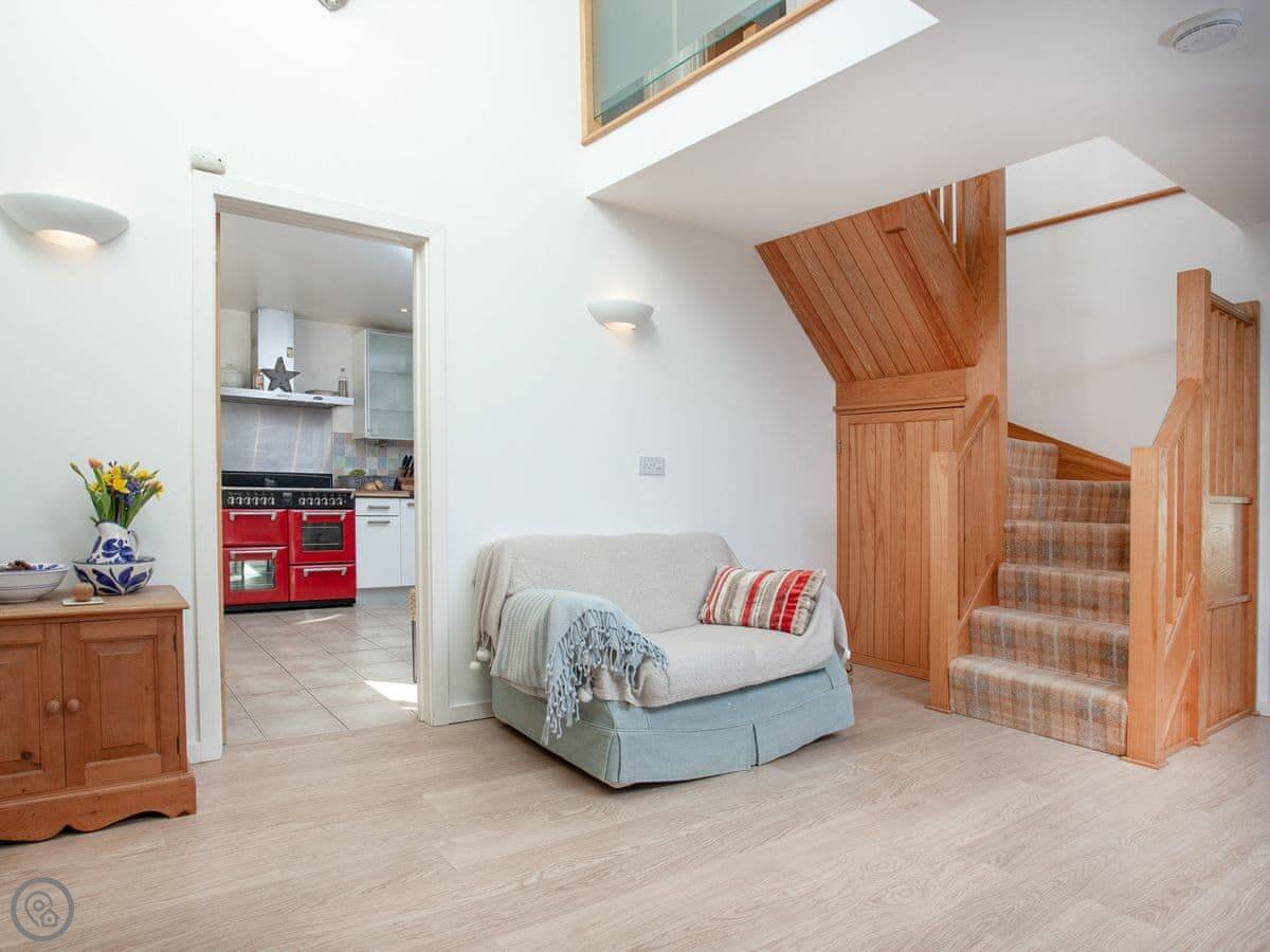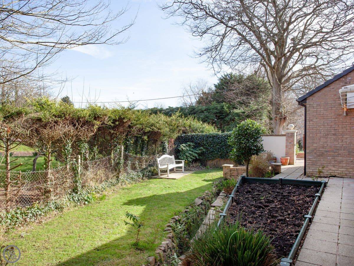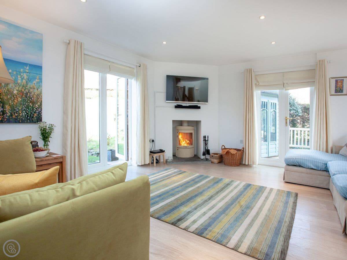 Outside is an enclosed garden on two sides. It's got a lawn, a patio, and a summerhouse. There's a small stream running through part of it, so just something to be aware of if you have young kids.