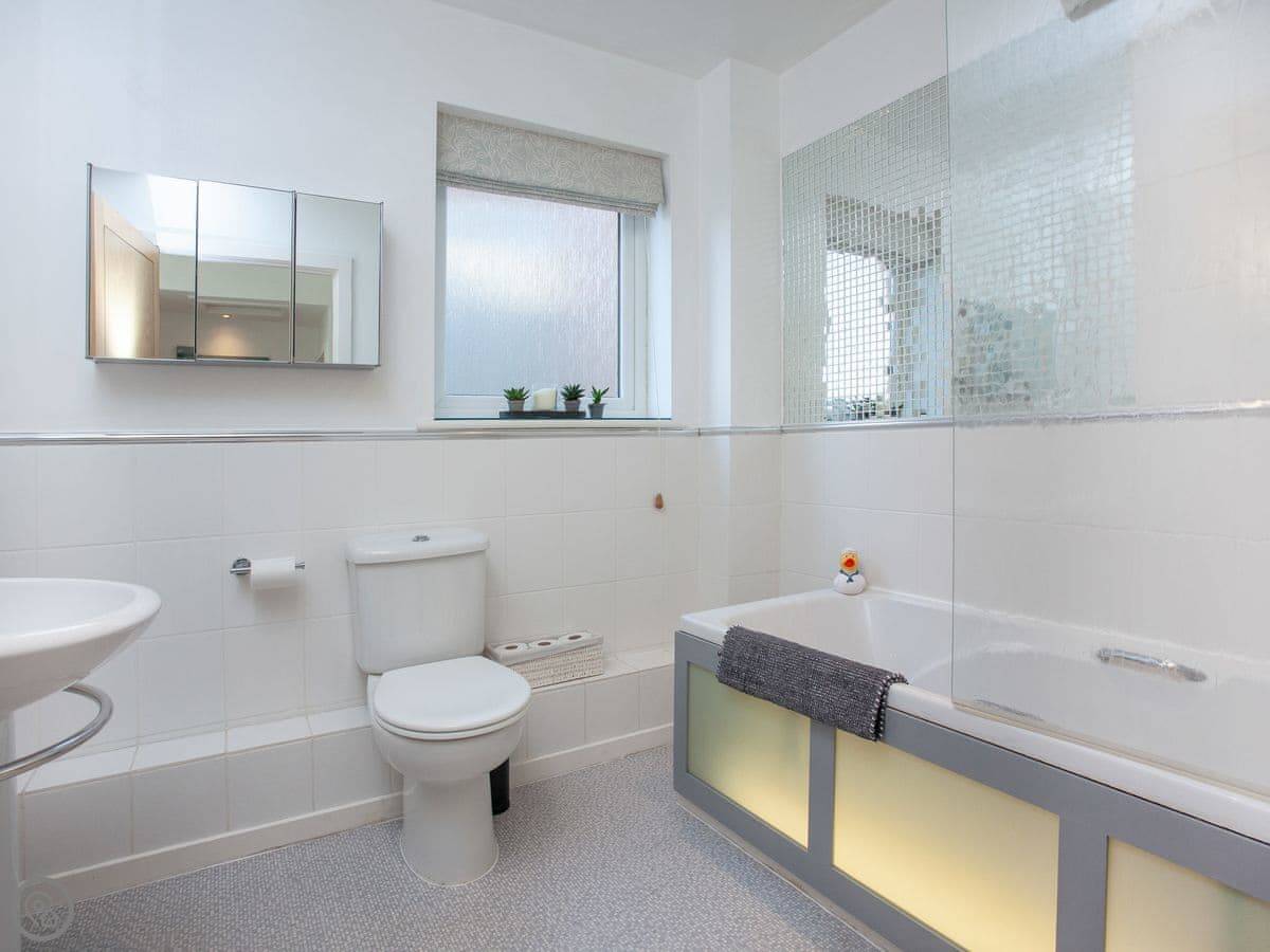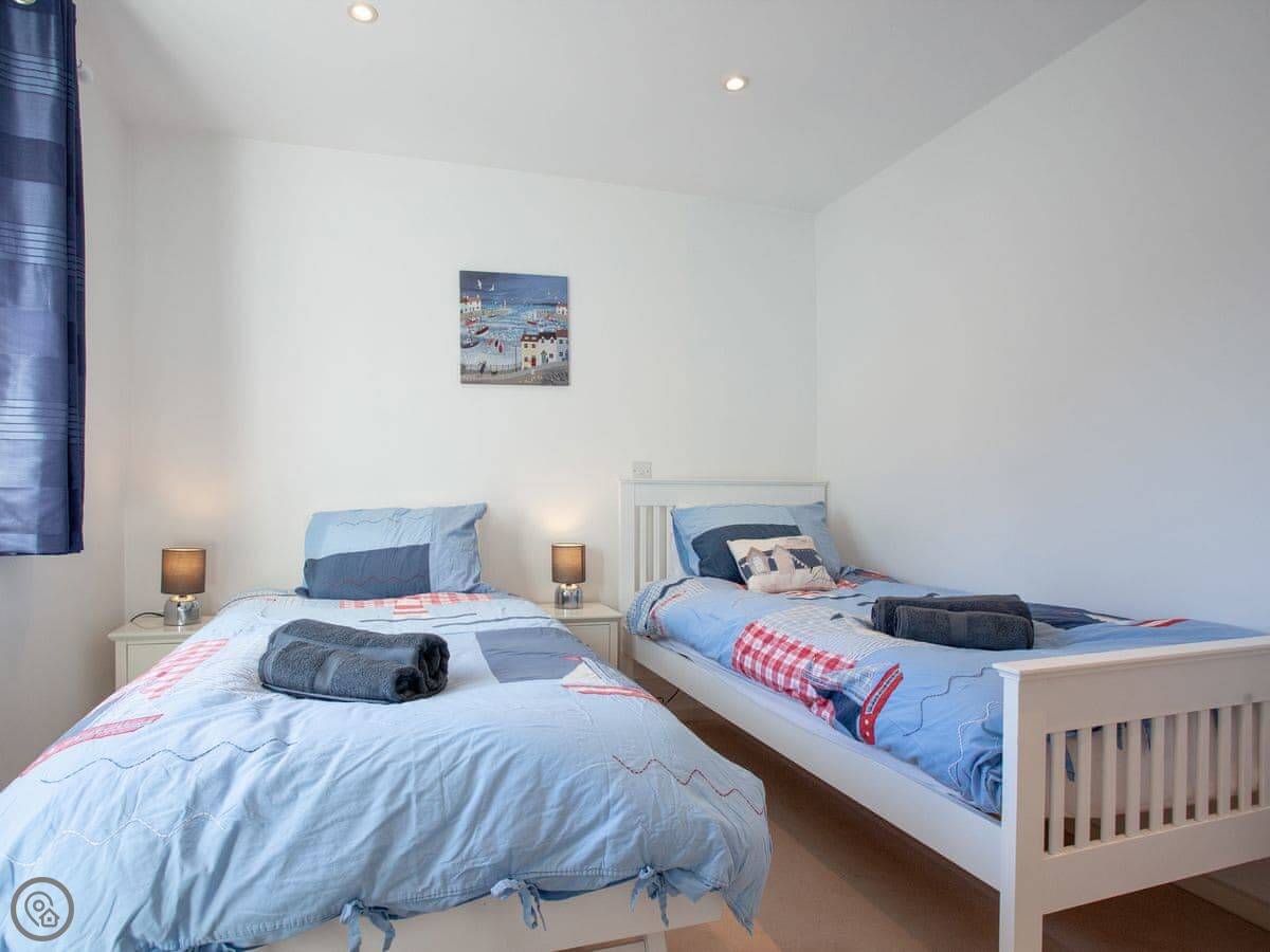 The house sleeps eight. Four bedrooms, three bathrooms. Two bedrooms are king size with their own shower rooms. The other two are a small double and a twin room. There's a proper family bathroom upstairs too. It's a 4 Star place, so everything is in good order.