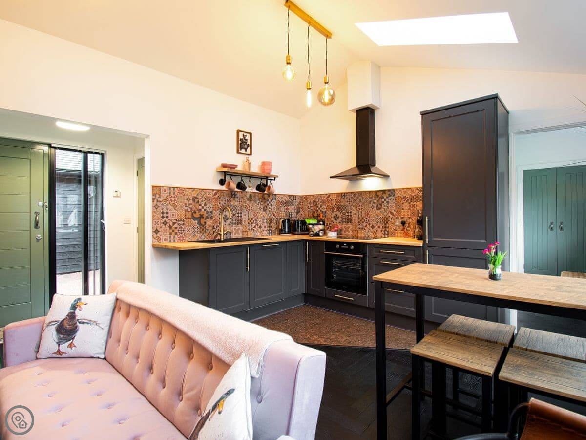 Diesel’s Desirable Den is the perfect space in which to unwind and relax, located in an Area of Outstanding Natural Beauty. This den is perfect for couples and families. The living/dining room is a lovely spot to sit with a luxury sofa bed for two additional guests and a 43” Smart TV. There are two bedrooms, one with a kingsize memory foam bed and en-suite and another with zip and link beds when put together creates a super kingsize bed with en-suite and Smart TV. Outside is a shared courtyard and water feature with seating for guests to enjoy.