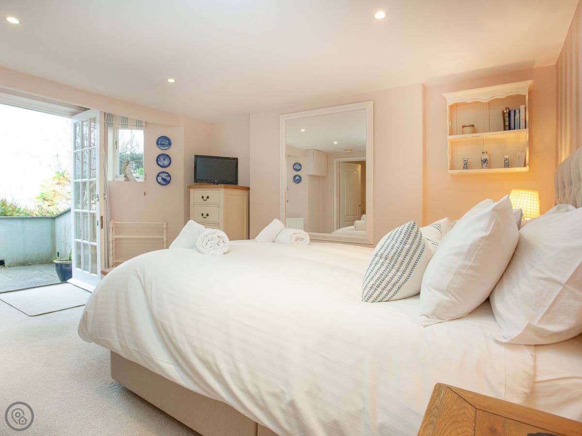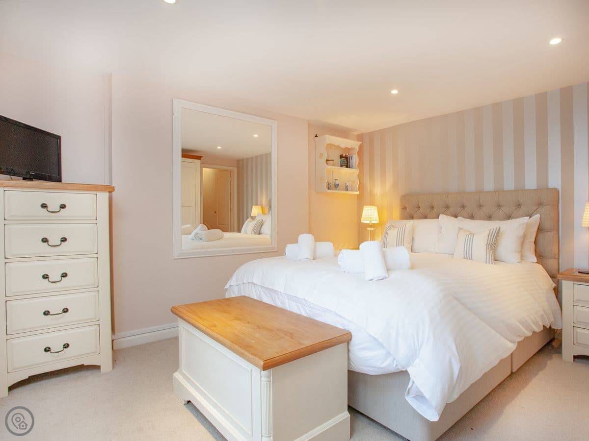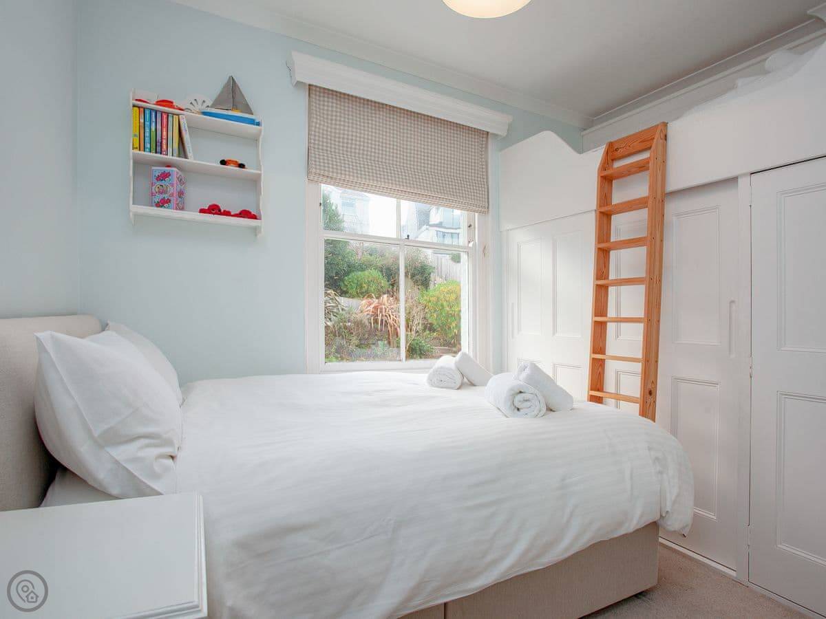 The first floor is where the remaining three bedrooms and family bathroom are located. Facing the front of the property with estuary views is a kingsize bedroom with double wardrobes and TV. Overlooking the rear landscaped garden are another two bedrooms, one with a double bed and wardrobe storage and one with a double bed and additional single ’top bunk’ like bed accessed via a small ladder, a perfect children’s room.