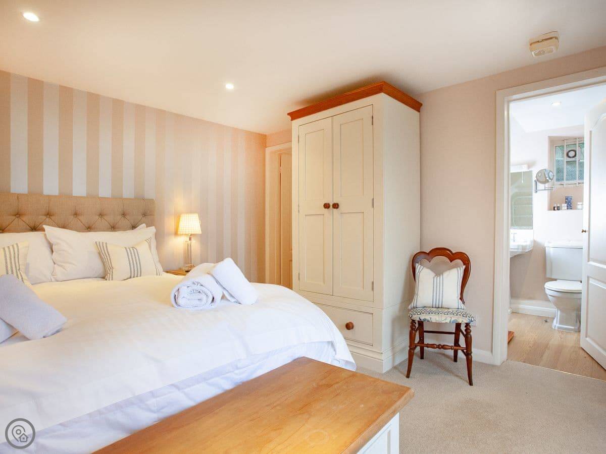 As you enter Lyndoch through the front door you feel immediately at home. The warm tones and decoration really make this property feel like a home away from home. Directly in front of you is the kitchen area, fully equipped with all you could need for a comfortable stay. This leads into the conservatory/dining area with an eight seater extending dining table and sofa area too. From here there are doors leading out onto the rear patio with seating making this area a lovely social space. Up the garden steps leads you to another patio area with garden furniture and far reaching views over the estuary. Back into the dining area and this leads into the living room. A really lovely area for relaxing in front of the open fire on one of the comfortable sofas after a long day exploring. The beautiful bay window with seating, looks out across the estuary, no better place to sit and enjoy a morning coffee. This entrance floor also benefits from a separate toilet. Down a set of stairs in the hallway leads to the lower ground floor bedroom which contains a kingsize bed, an en-suite shower room and doors leading out onto a small patio area with seating at the front of the house.