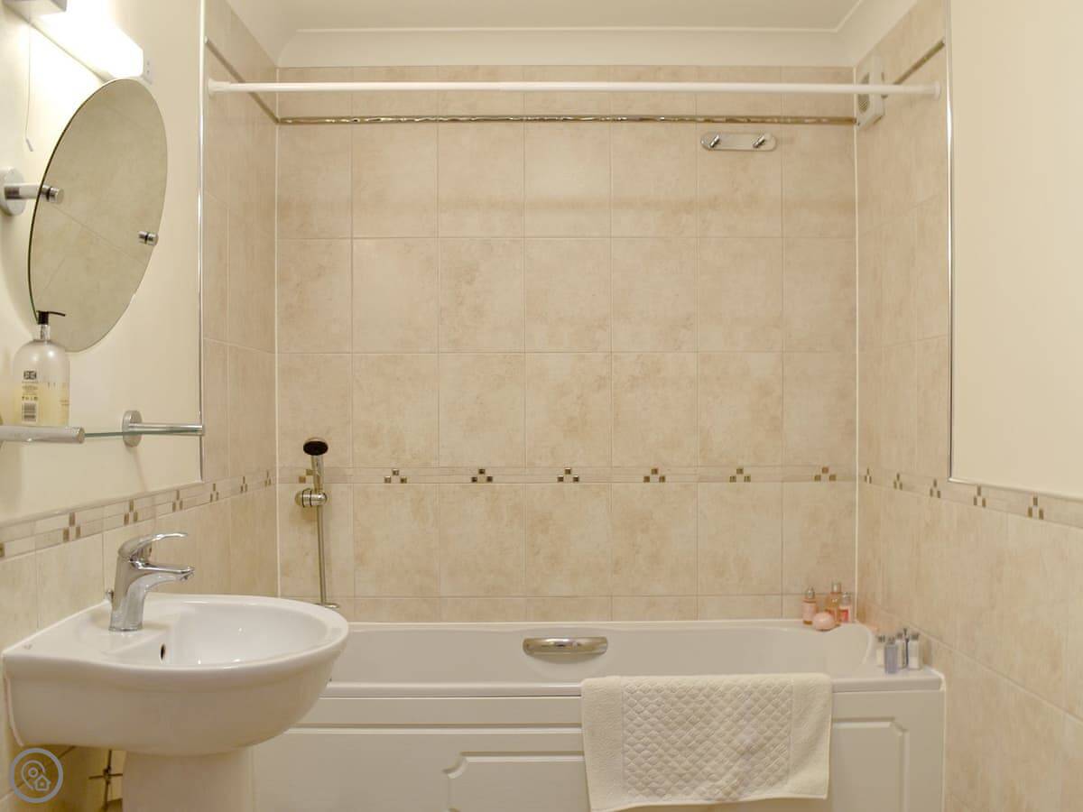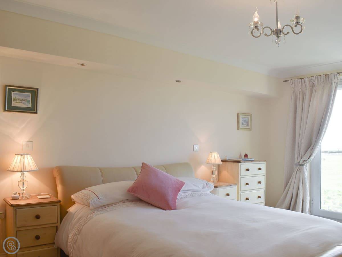 It sleeps four, in two bedrooms. Both bedrooms have double beds and their own TVs. There are two bathrooms as well, one is an en-suite. The place has a 4 Star rating. It's modern and tidy.