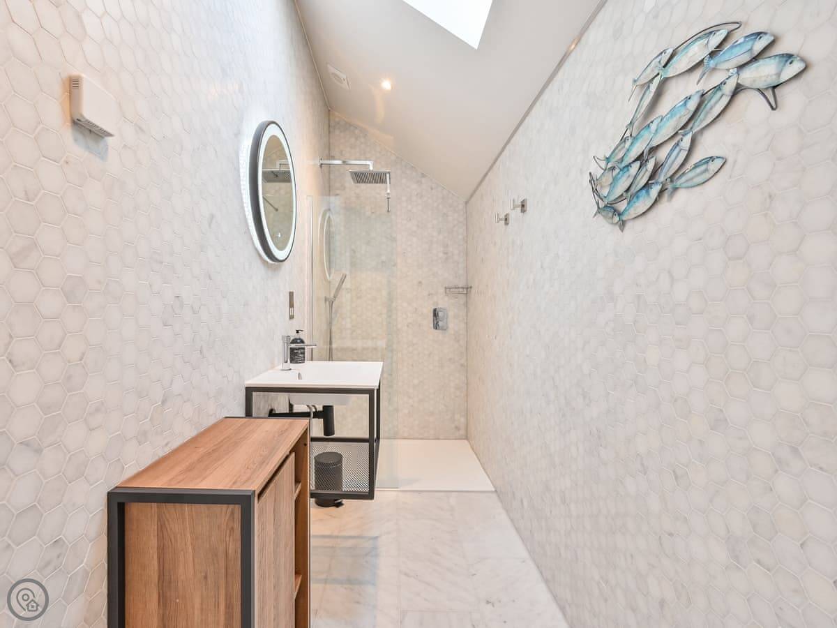 This spacious modern holiday home, newly built in 2023, is located on the historic Charlestown harbour in Cornwall, just a minute’s walk from all the bars and restaurants around the harbour and two minutes’ walk from Charlestown’s beach. Whilst boasting sea views from the master bedroom, the interior of the house has been elegantly designed and furnished with modern amenities to make your stay comfortable and luxurious. The large living room and dining area are perfect for relaxing and enjoying meals with family or friends. The four upstairs bedrooms are spacious and cosy with comfortable beds, providing a peaceful retreat after a long day of exploring the surrounding area, two with their own private en-suite bathrooms. The house also features a well-equipped kitchen with all modern Miele appliances- perfect for preparing and cooking meals. Outside, the house has a beautiful garden and terrace, where you can enjoy the fresh sea breeze and stunning views of the surrounding landscape. With its prime location and luxurious amenities, this holiday home is the perfect getaway for anyone looking to relax and recharge in Cornwall. 12 The Nest is a delightful property which has been tastefully and lovingly furnished to provide spacious and luxurious accommodation. The large modern house with a glass entryway is a stunning example of contemporary architecture, providing a grand and impressive entrance and making a statement to anyone who enters. The large windows throughout the house allow for plenty of natural light to flood in, creating a bright and airy atmosphere. The property has a large, modern kitchen and dining space and four good size bedrooms.
