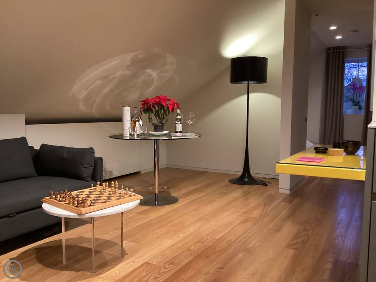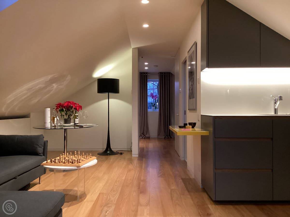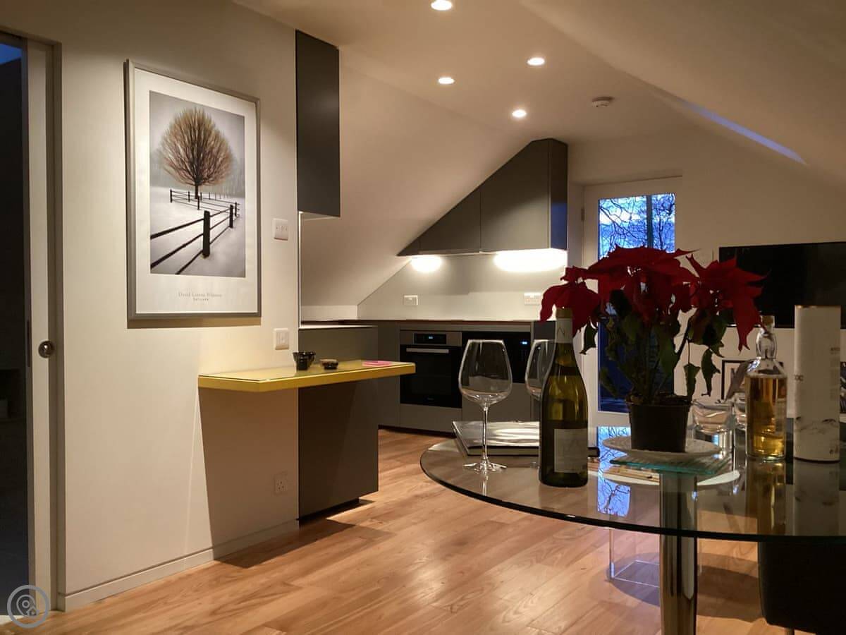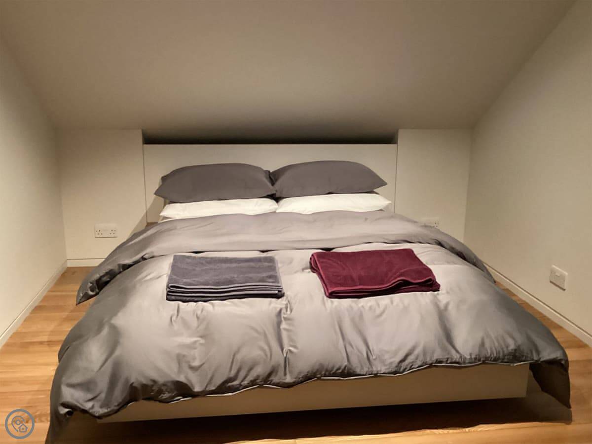 It's for two people. One bedroom, one bathroom. The bedroom has a king size bed. Everything's open plan, so the kitchen, living area, and dining table are all in one room. It's been done to a good standard. The rating is 4 Star, which feels about right.
