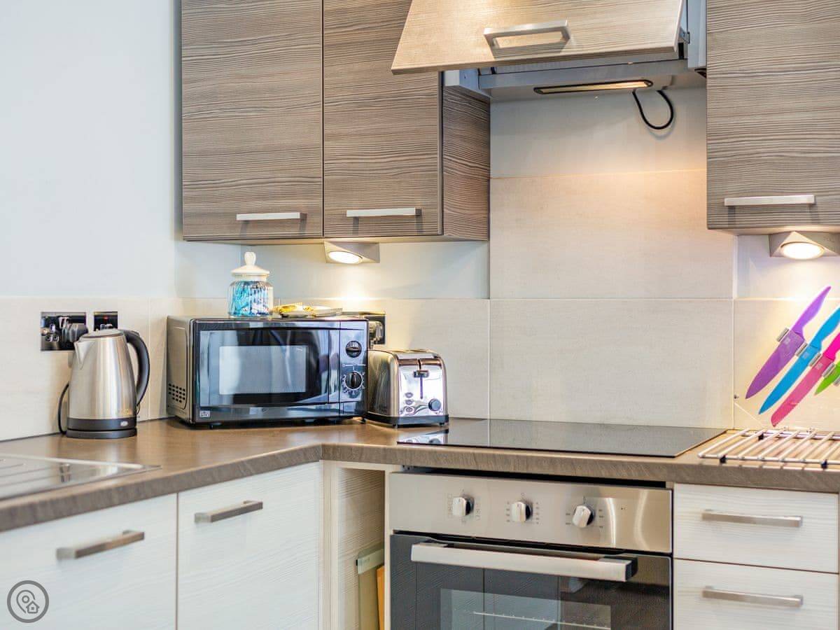 Siskin is a ground floor, one-bed apartment with open-plan living, dining and kitchen area flooded with light from the very large bay window. The owners have carefully retained the character of the building, including a feature electric fireplace, while updating it with an en-suite which includes a walk-in double-head shower and quality furnishings throughout. Part of Easedale House, a traditional lakeland slate building, it is set in a quiet street in the centre of Keswick, with everything you need right on the doorstep. Each gorgeous apartment also comes with the advantage of a parking permit for the private car park nearby . Finished to an excellent standard, with a real eye for detail, each stylish apartment has its own personality, and all have the same lovely feel. The house boasts a great range of walks right from the door and everything else Keswick can offer.