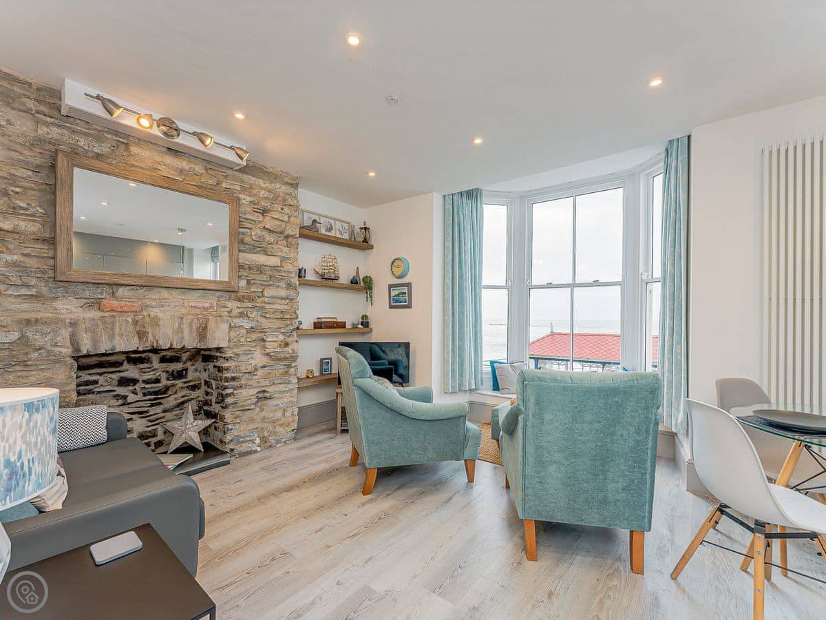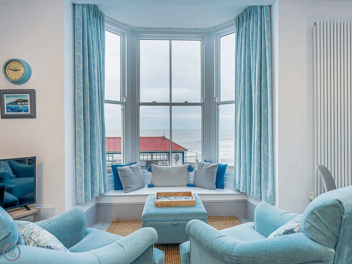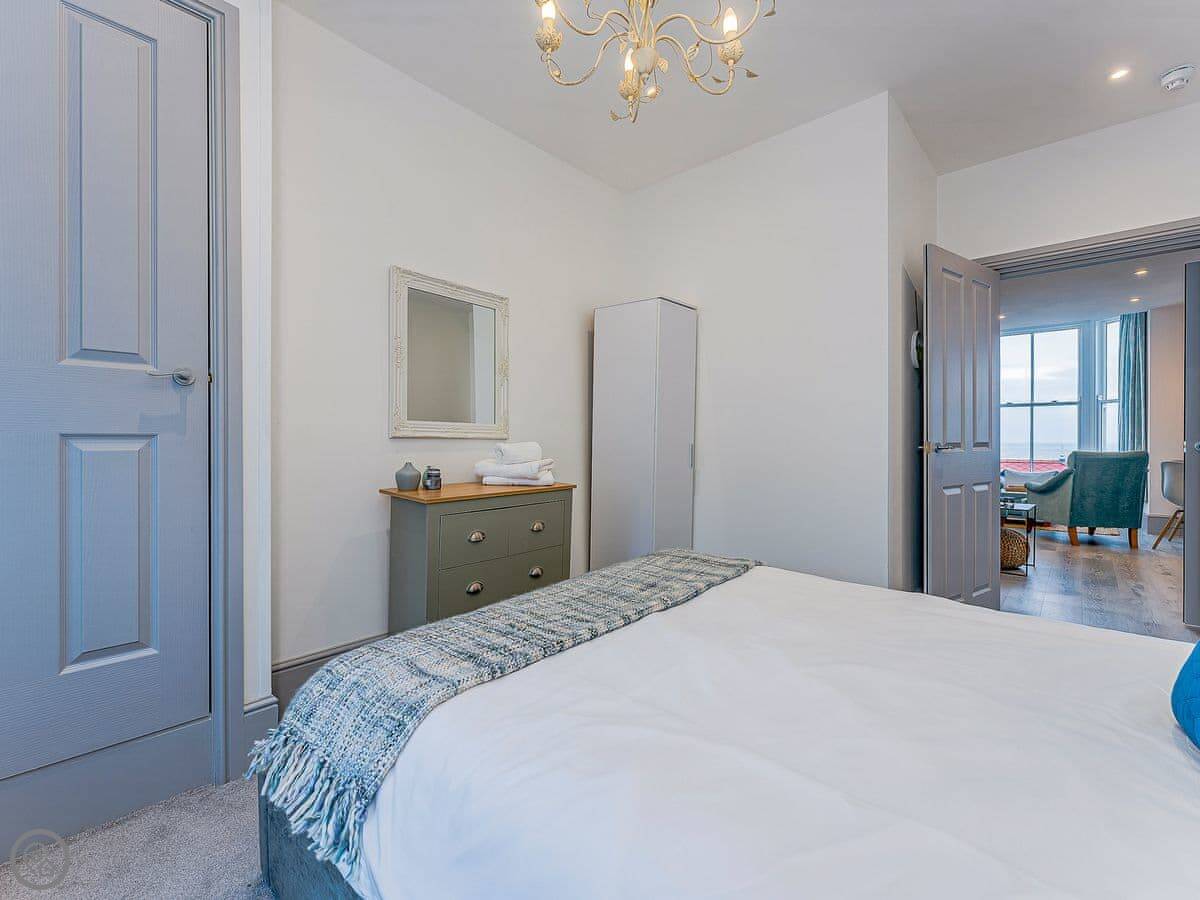 Elenydd is a stylish and elegant apartment on the first floor of a Victorian townhouse, conveniently located on Aberystwyth’s seafront with direct access to the mile long promenade. The light-filled, open plan living area boasts a traditional stone feature fireplace and large bay windows that instantly transport you to a relaxing seaside haven, while the modern fitted kitchen is well-equipped with everything you’ll need. The spacious bedroom has been designed with comfort in mind and the shower room features modern fixtures and fittings. You’ll find an abundance of lovely independent stores, pubs, and restaurants within a few minutes’ walk of the property.