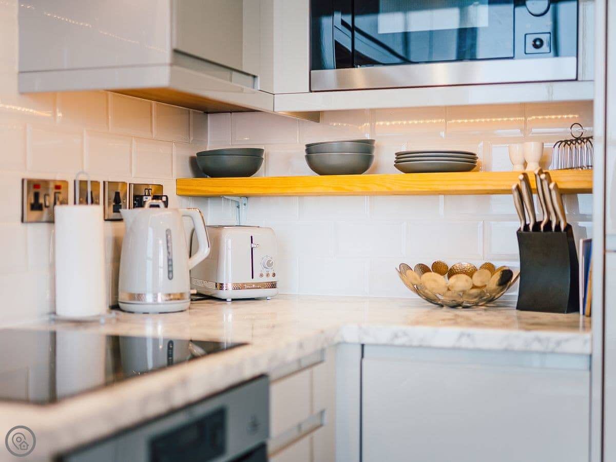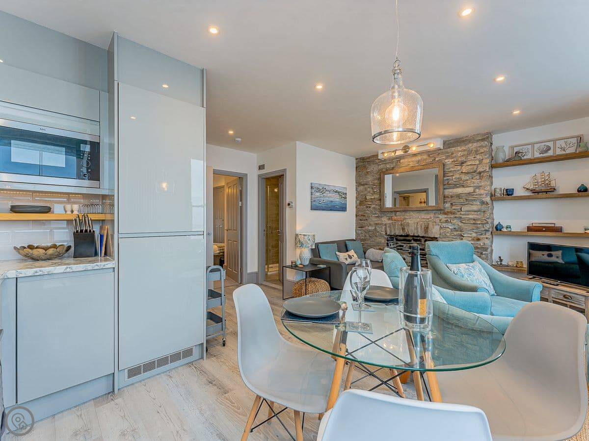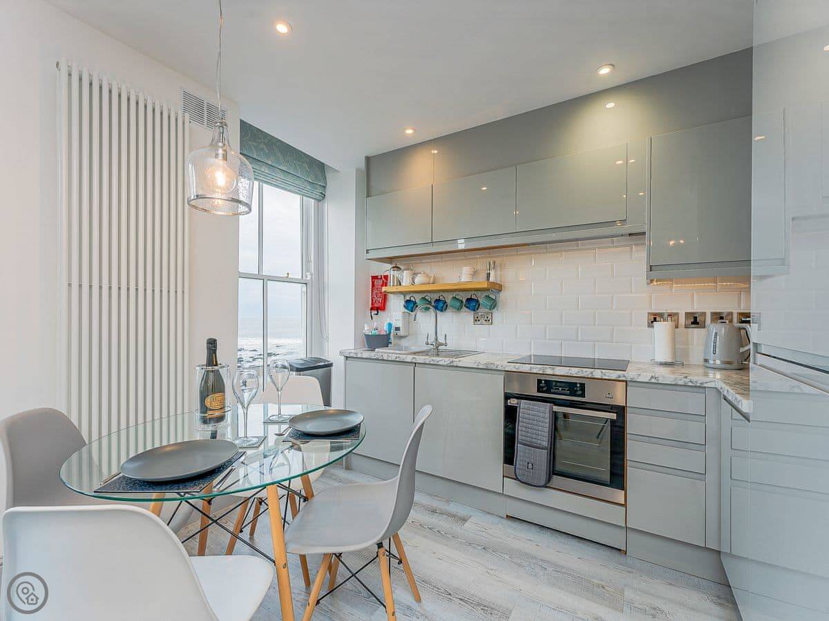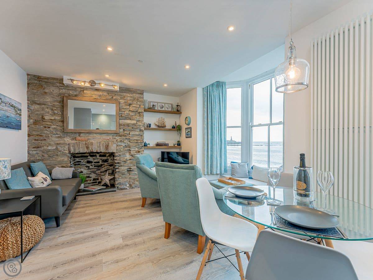 Elenydd is a stylish and elegant apartment on the first floor of a Victorian townhouse, conveniently located on Aberystwyth’s seafront with direct access to the mile long promenade. The light-filled, open plan living area boasts a traditional stone feature fireplace and large bay windows that instantly transport you to a relaxing seaside haven, while the modern fitted kitchen is well-equipped with everything you’ll need. The spacious bedroom has been designed with comfort in mind and the shower room features modern fixtures and fittings. You’ll find an abundance of lovely independent stores, pubs, and restaurants within a few minutes’ walk of the property.
