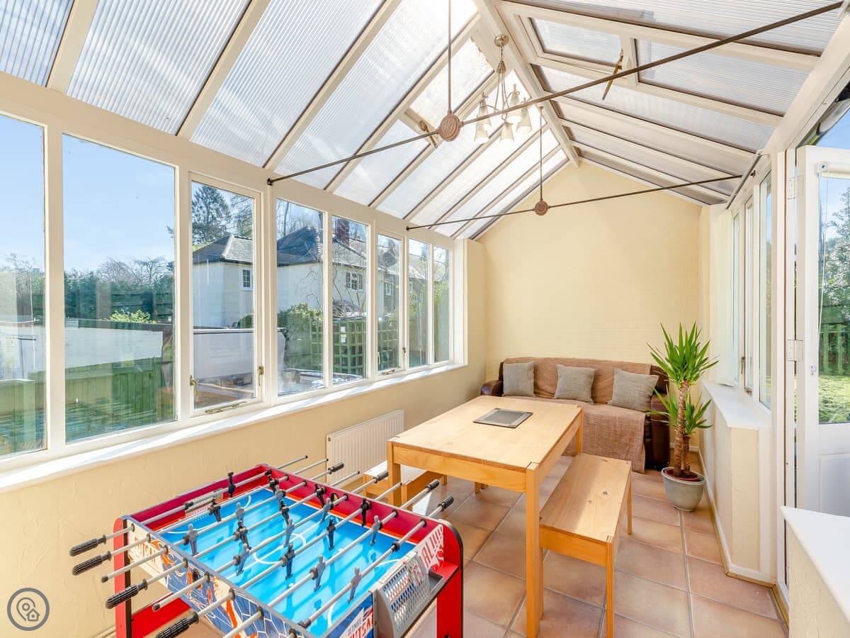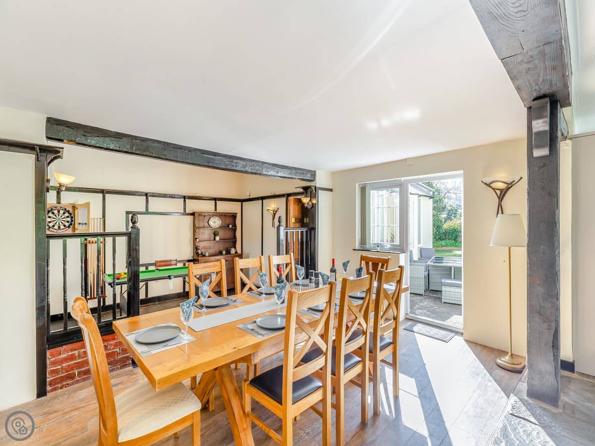 It sleeps eight, in four bedrooms. There are three bathrooms, which helps with that many people. It's got a 5 Star rating, so it's well-equipped and finished to a good standard. The garden is enclosed and there's a private hot tub you can use.