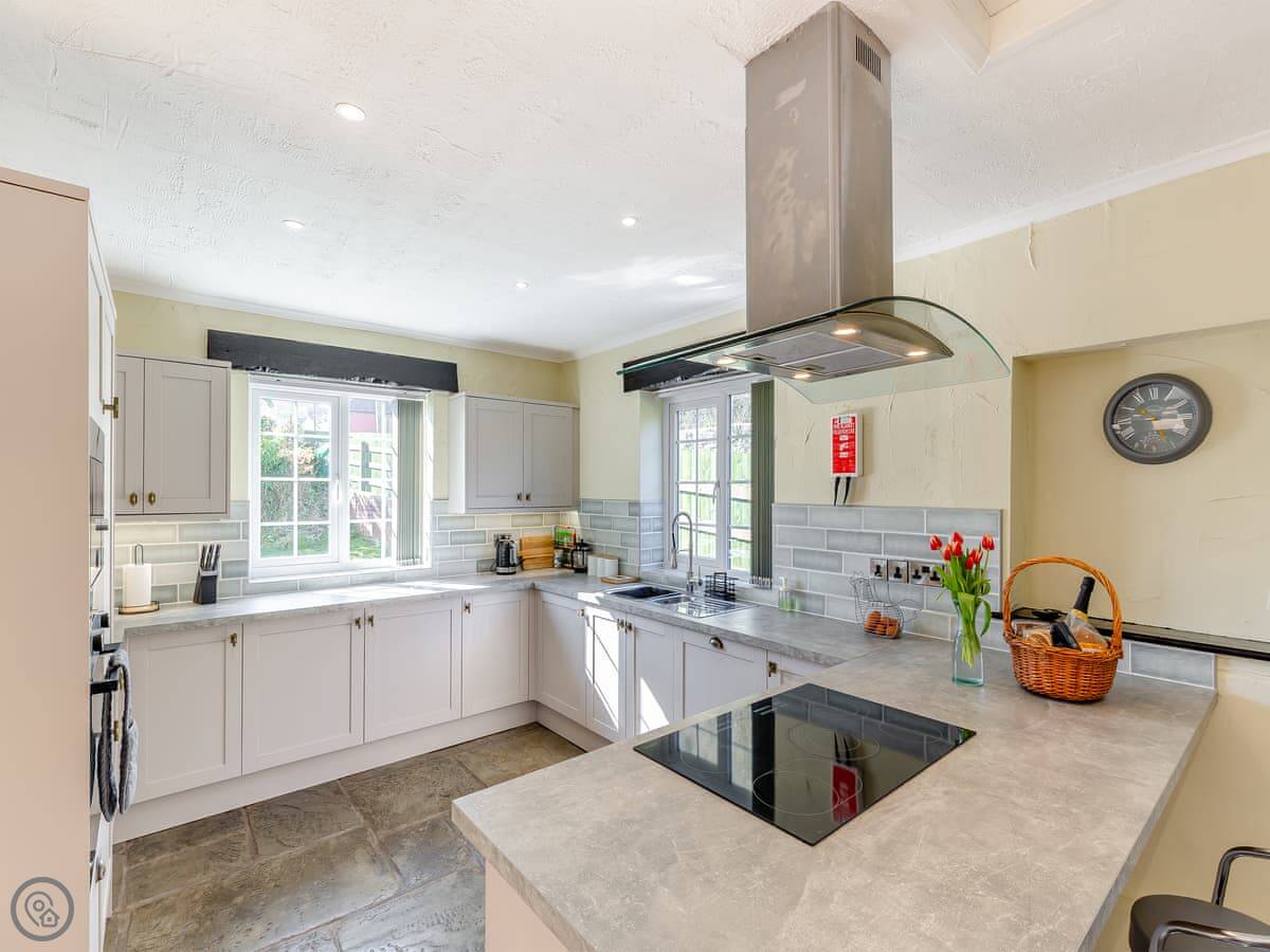 Facilities wise: it's got everything on the list. Washing machine, dishwasher, woodburner, WiFi, TV. Bedding and towels are included. There's a cot, highchair and stairgate if you need them. You can bring up to two pets. Parking is on site.