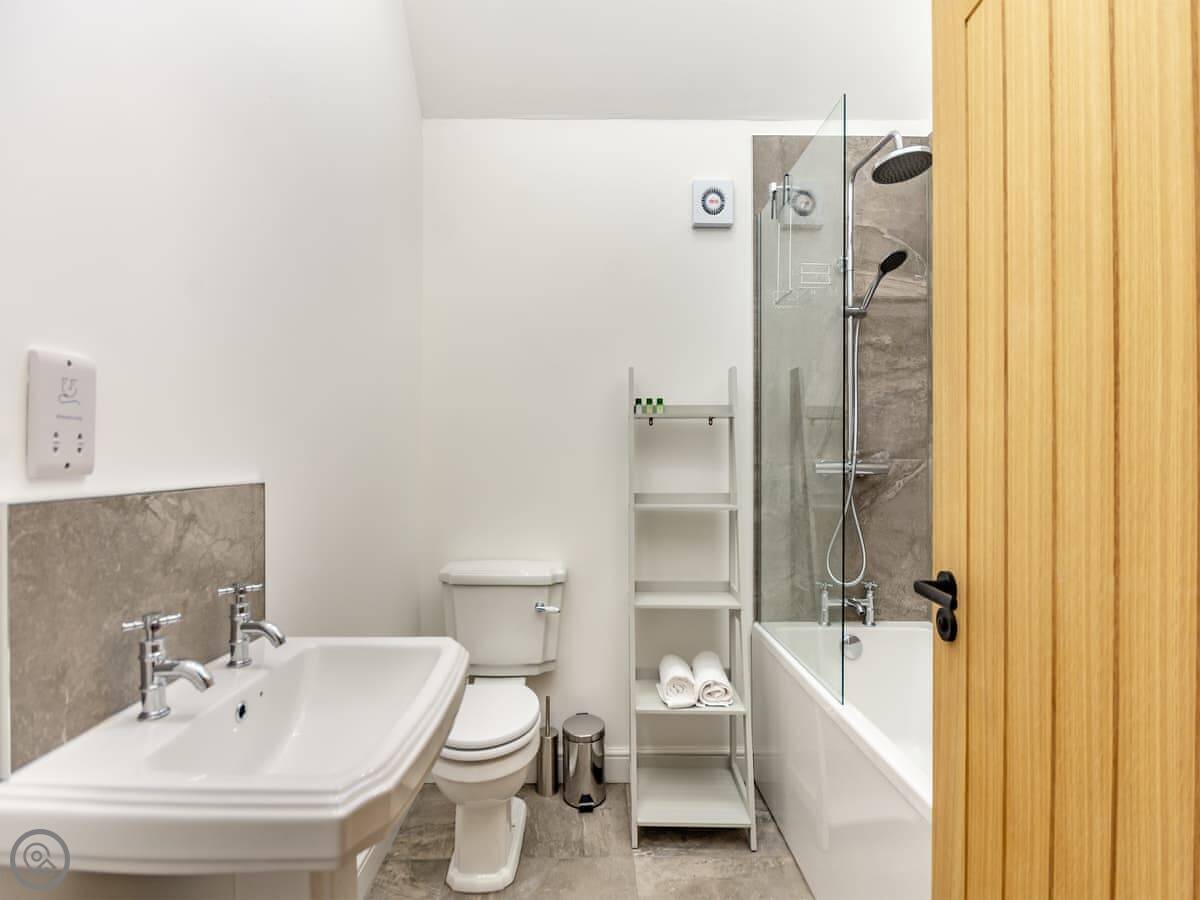 The Piggery is one of three cottages here at Corkhill, converted from old farm buildings. It sleeps four, with two bedrooms and one bathroom. It's got a 4 Star rating. The conversion is modern inside and everything is on one level, so there are no stairs at all. The main door has a step, but there's a level, wheelchair-accessible entrance at the back.