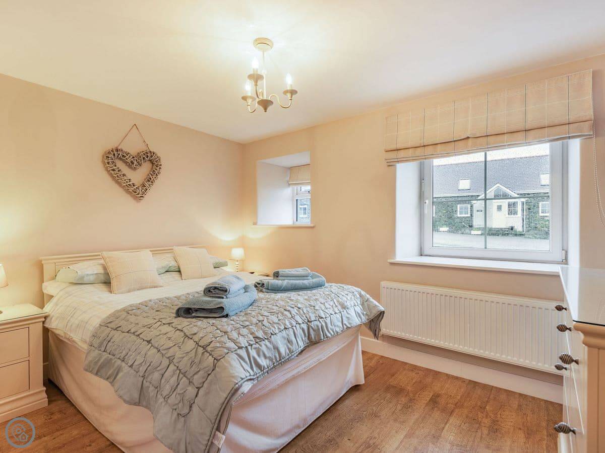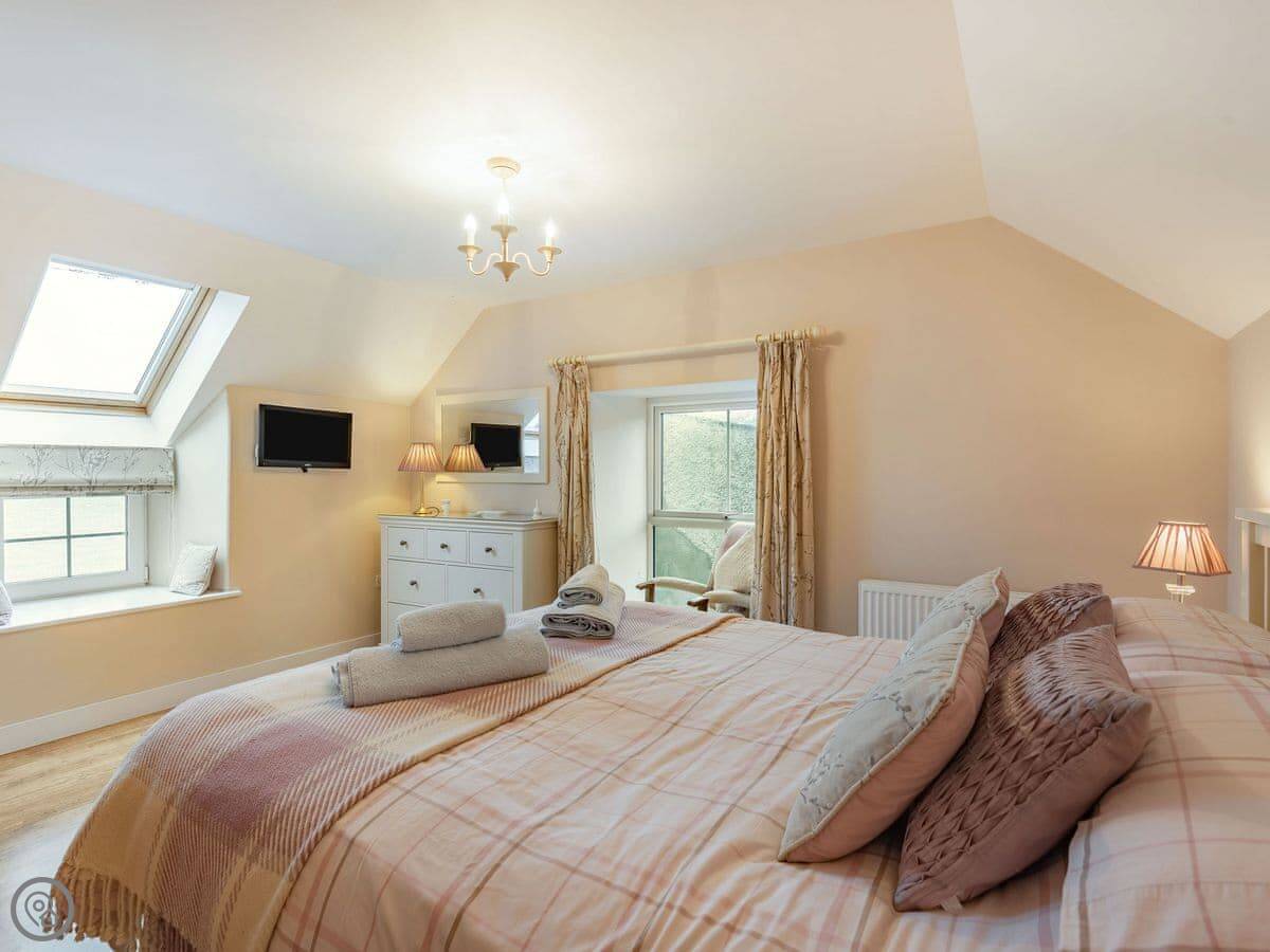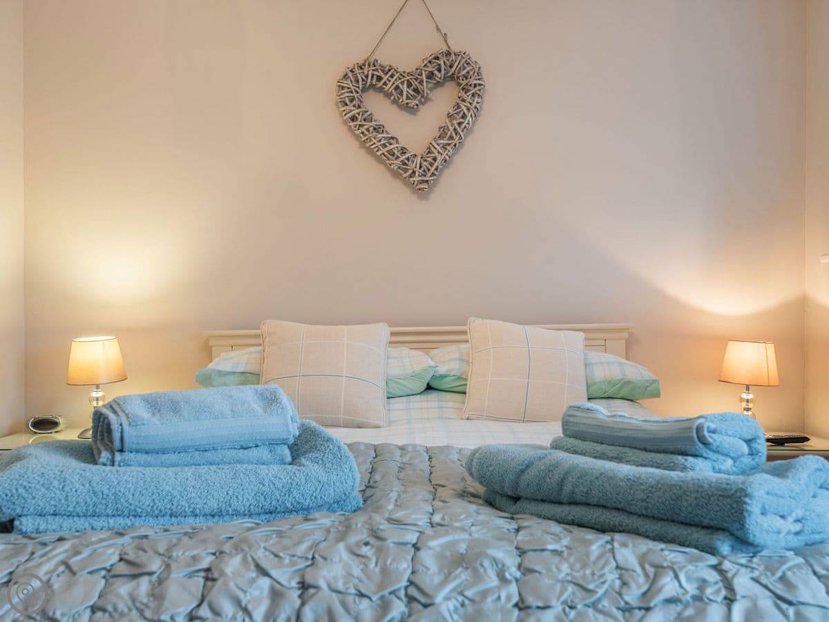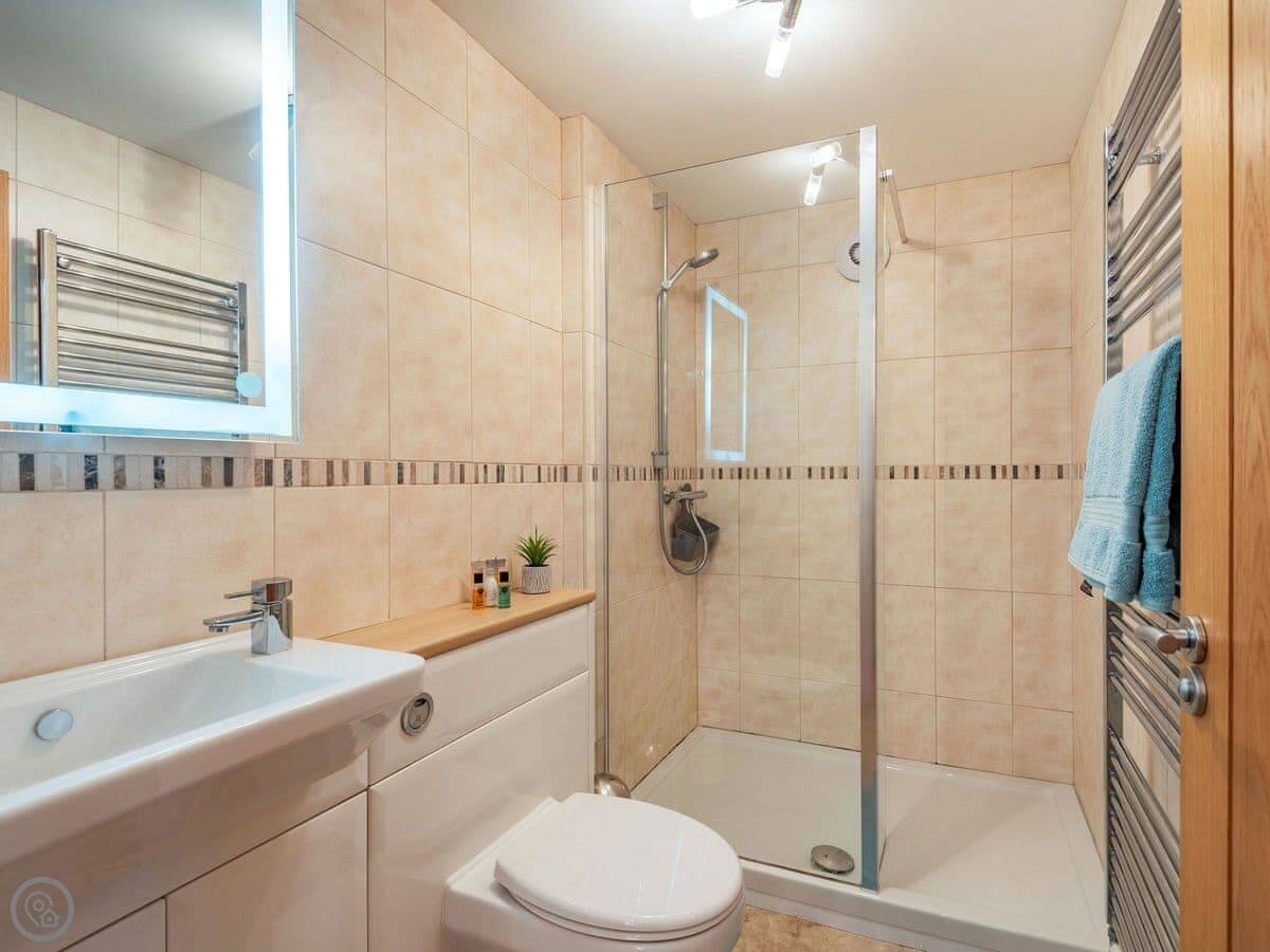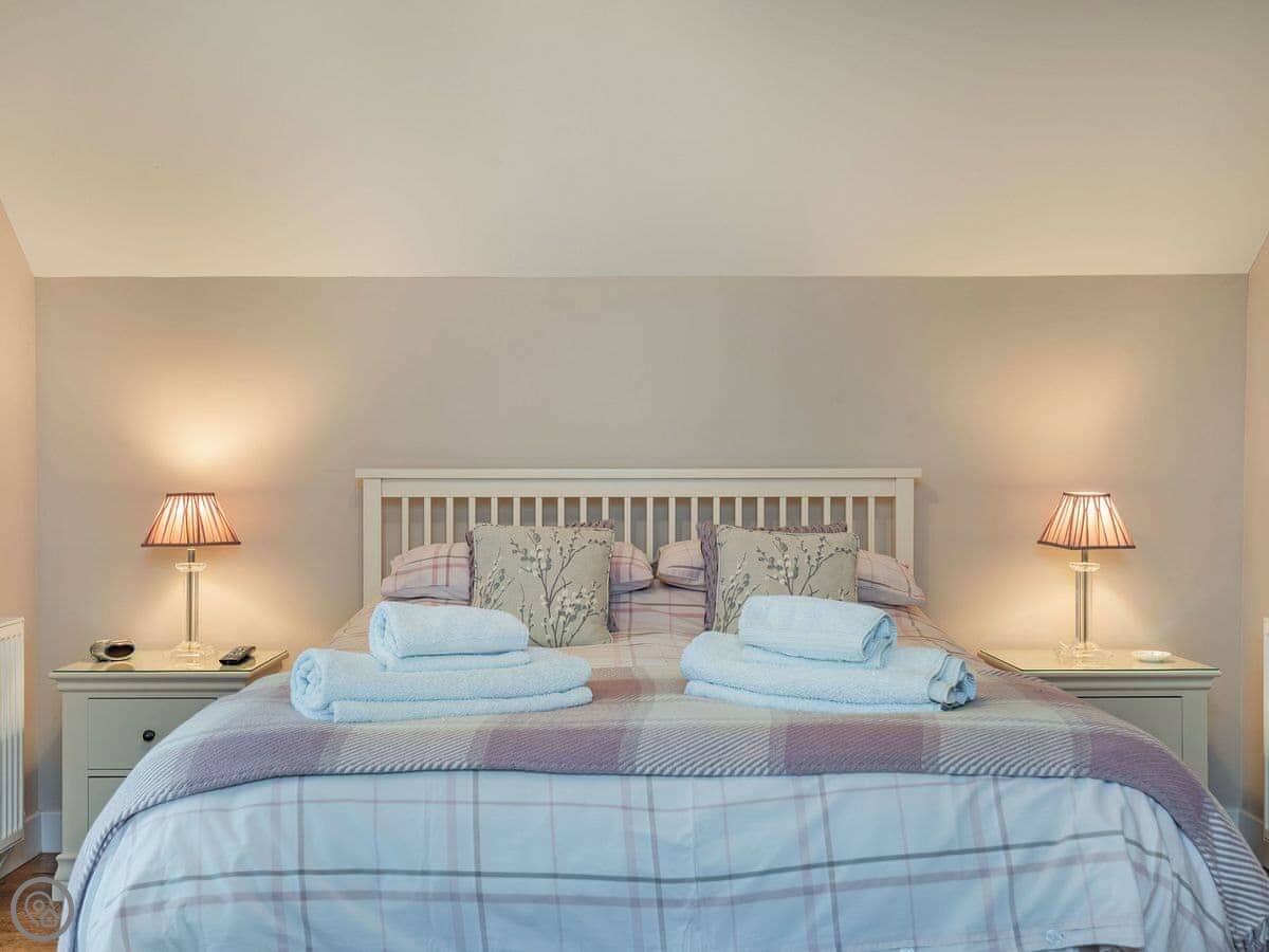 It sleeps six in three bedrooms. There's a double bedroom on the ground floor with its own shower room. Upstairs there's a king size room and a twin room. They share a shower room. All bedrooms have a TV. There's a washing machine and dishwasher. The garden is enclosed and there's parking.