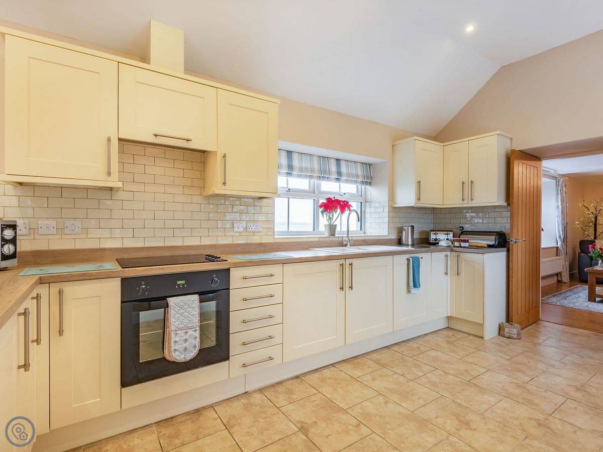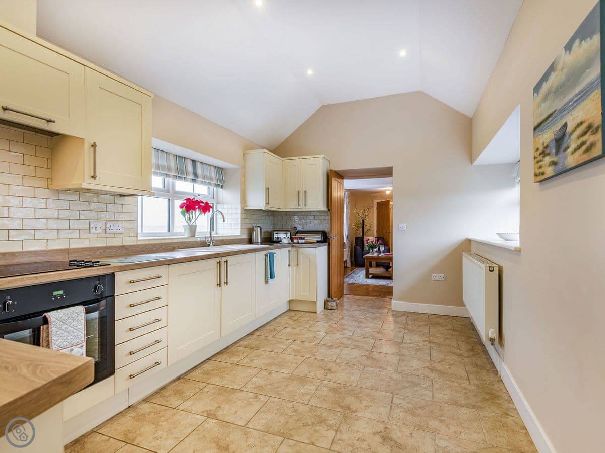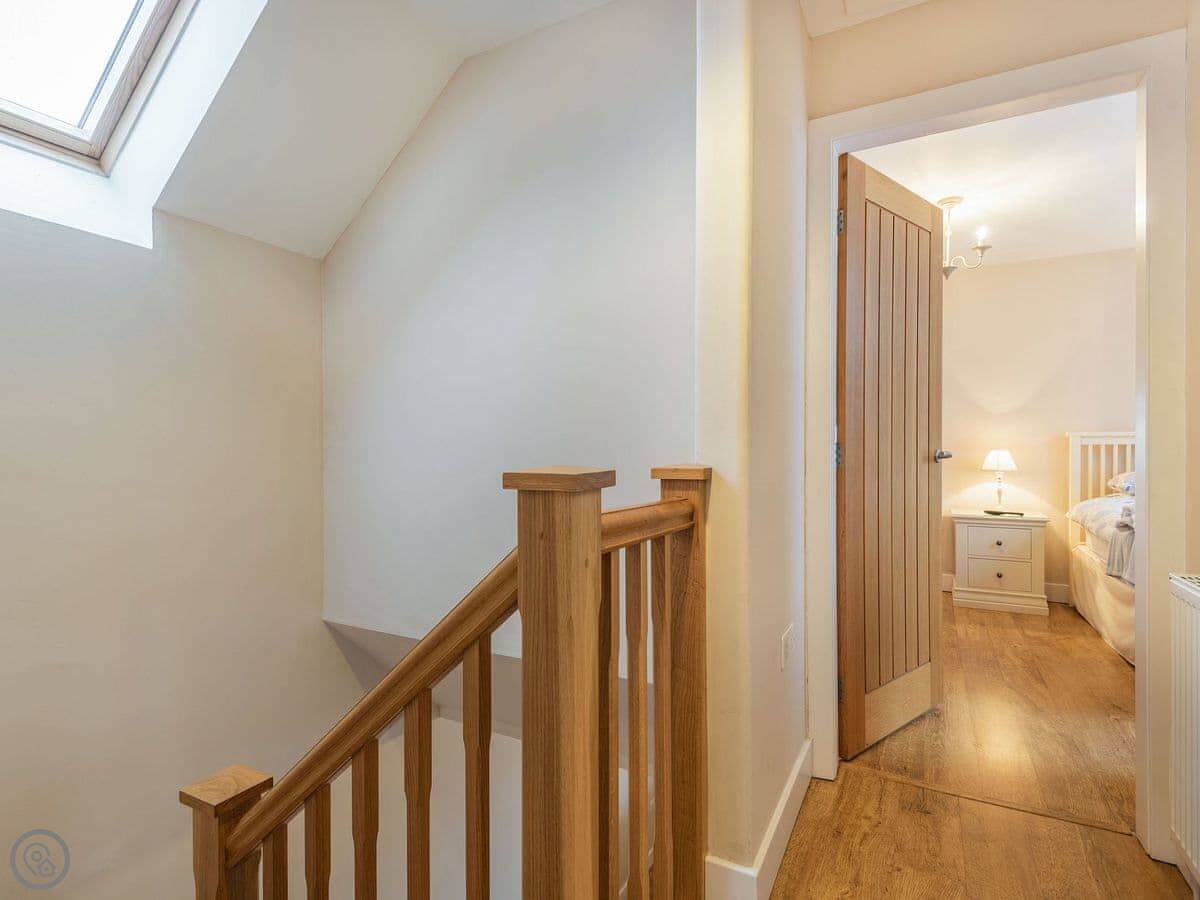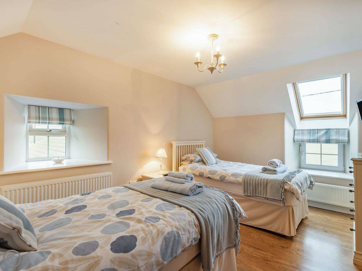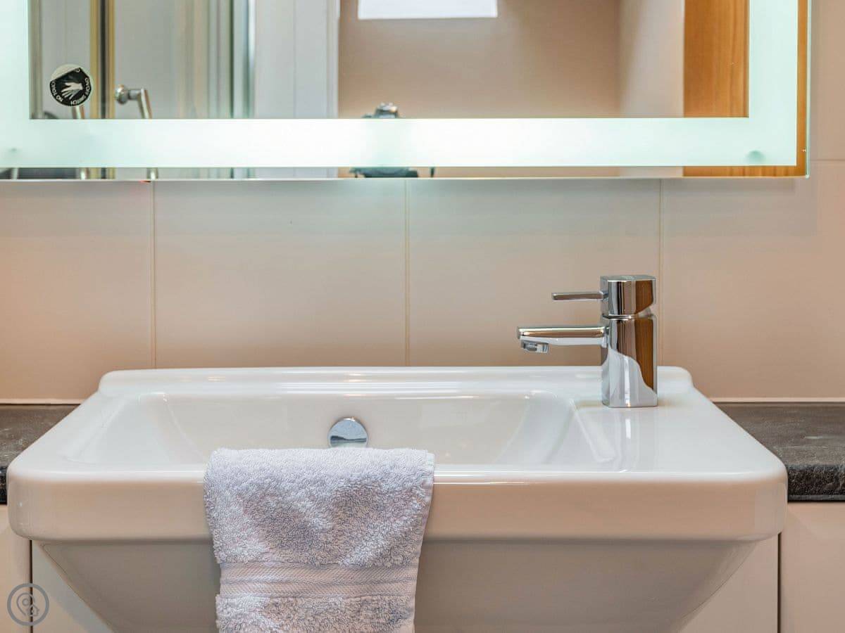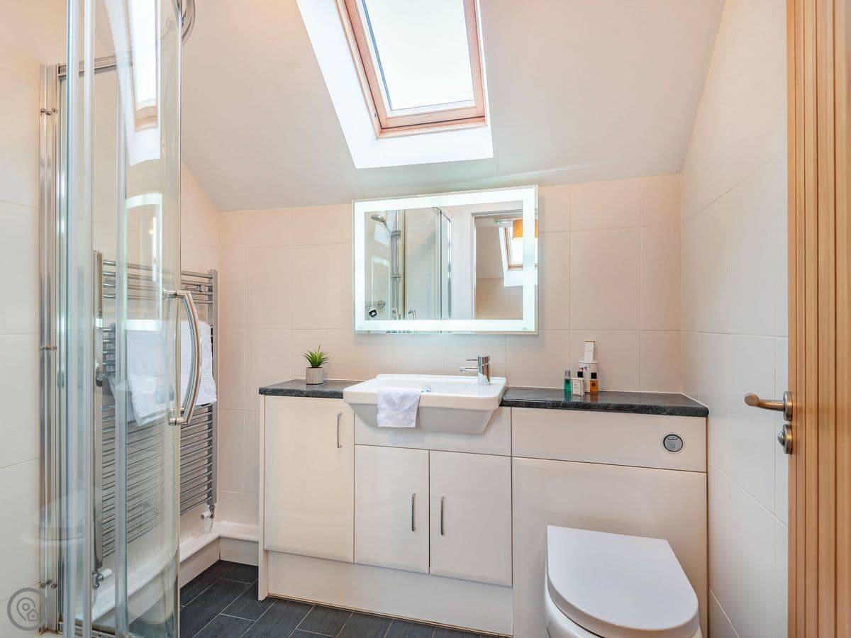 It sleeps six in three bedrooms. There's a double bedroom on the ground floor with its own shower room. Upstairs there's a king size room and a twin room. They share a shower room. All bedrooms have a TV. There's a washing machine and dishwasher. The garden is enclosed and there's parking.
