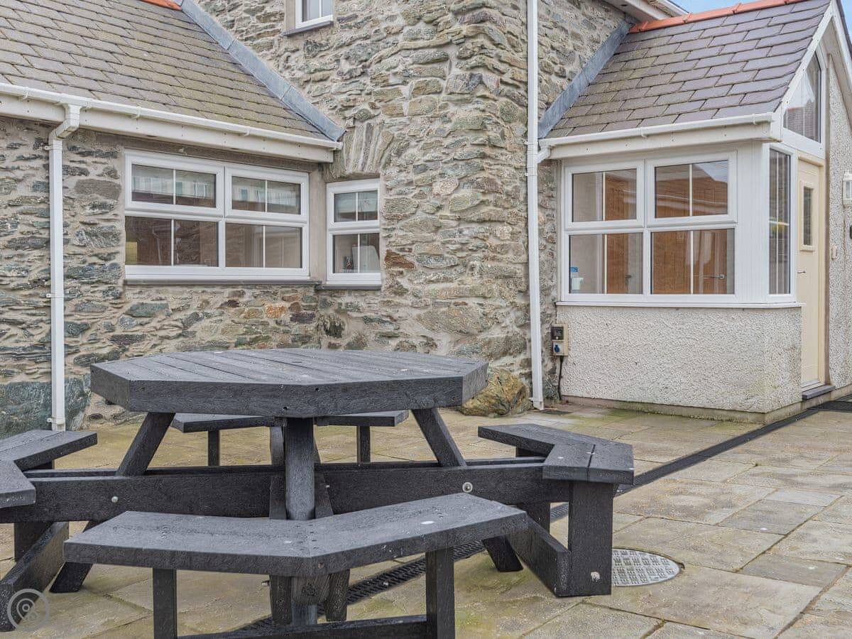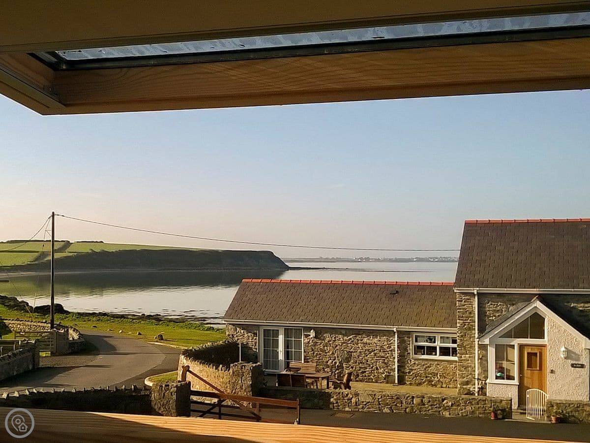 Yr Efail is in Llanfwrog on Anglesey. It's a detached cottage on the water. The main thing is the view. You look straight out over the sea from the living room. You can see boats and the bay.