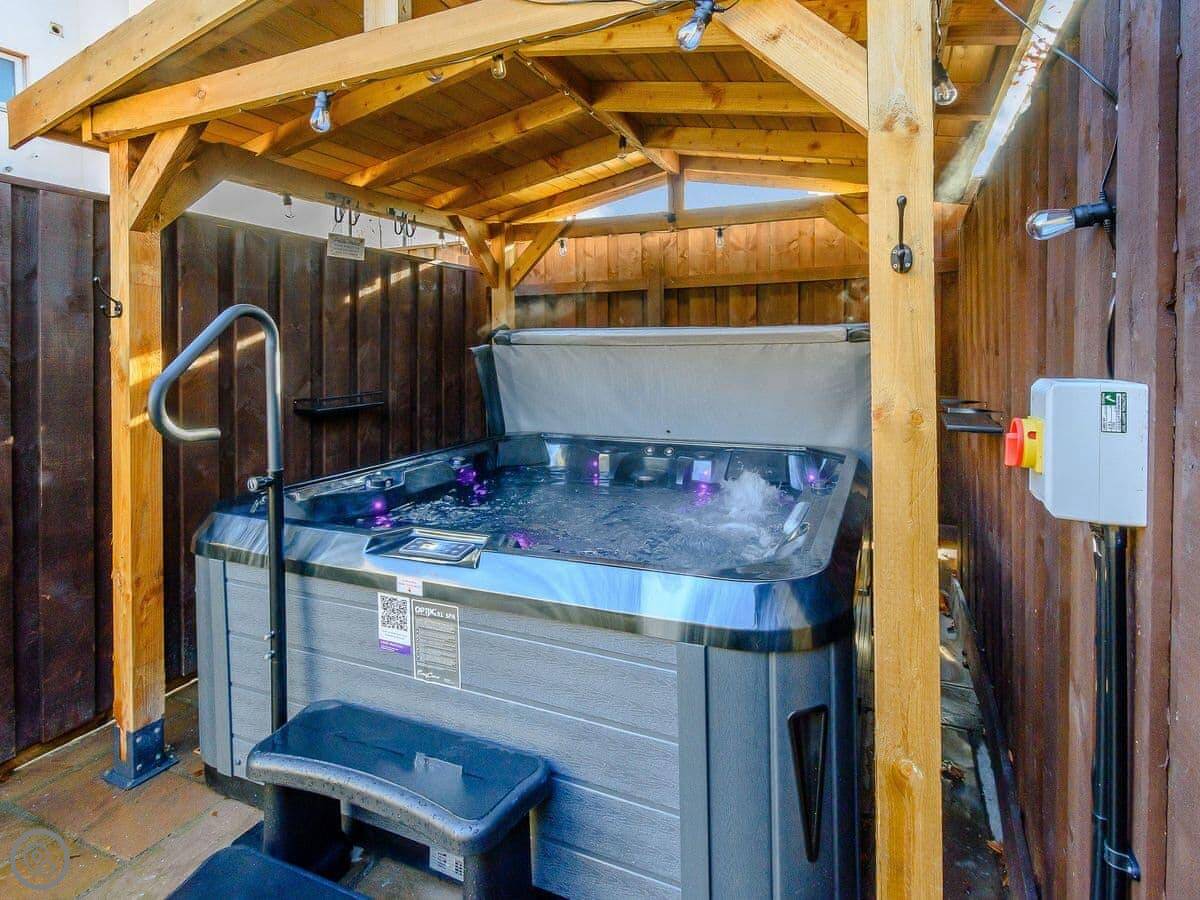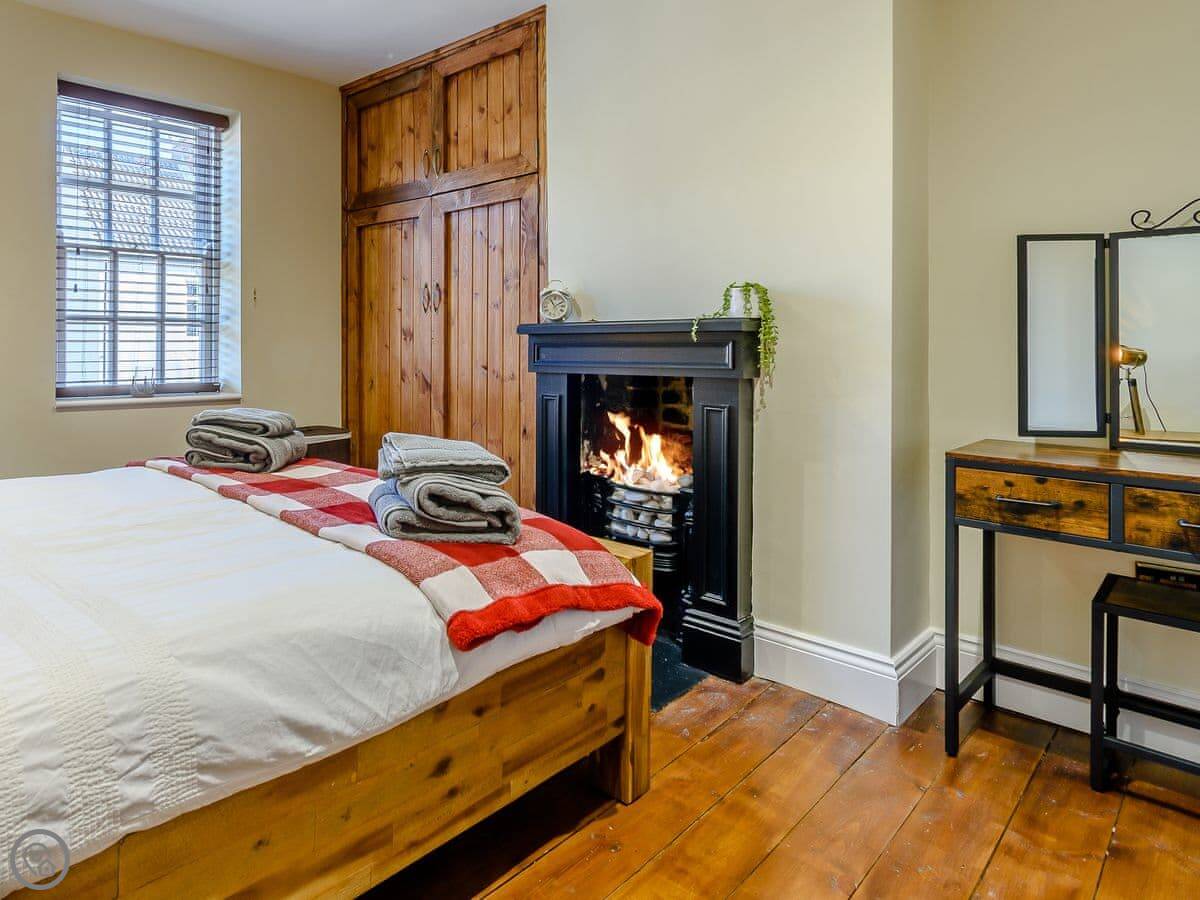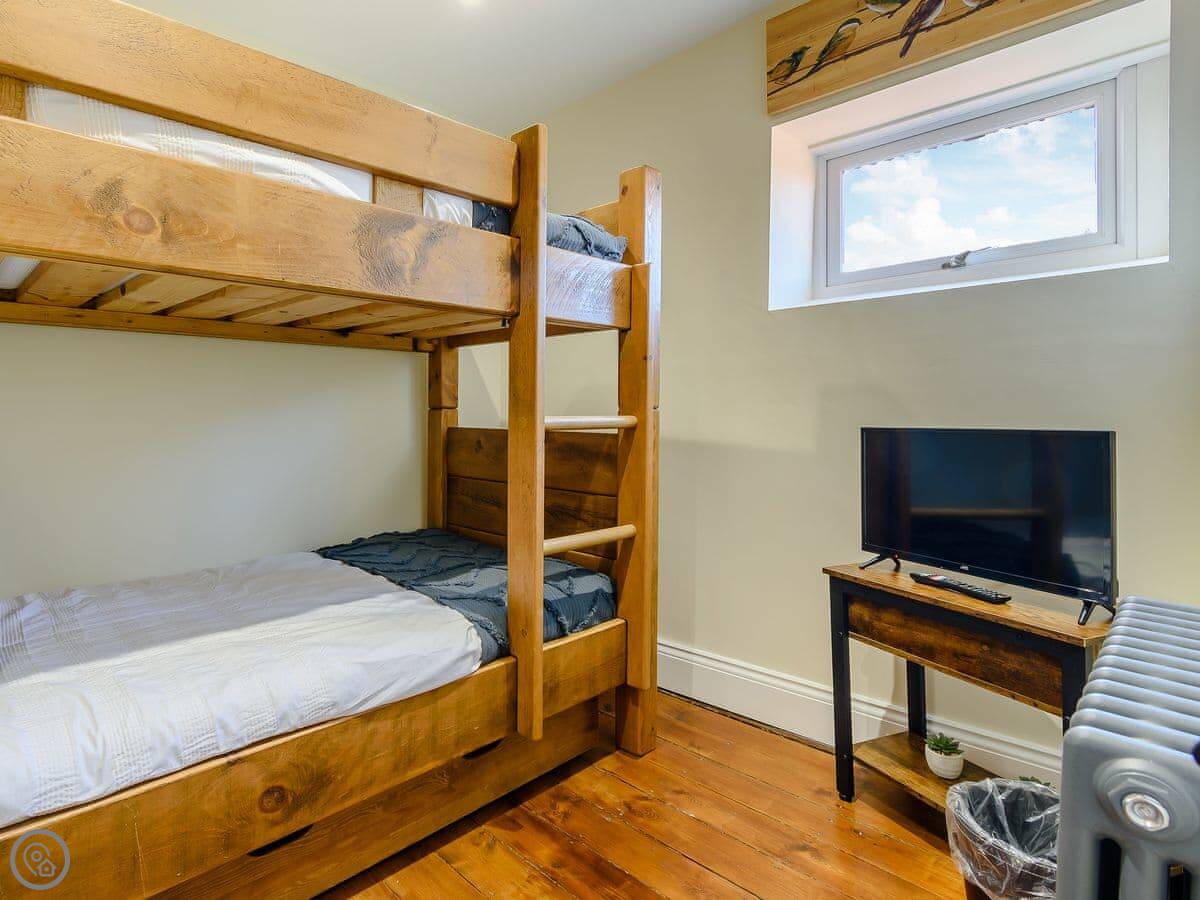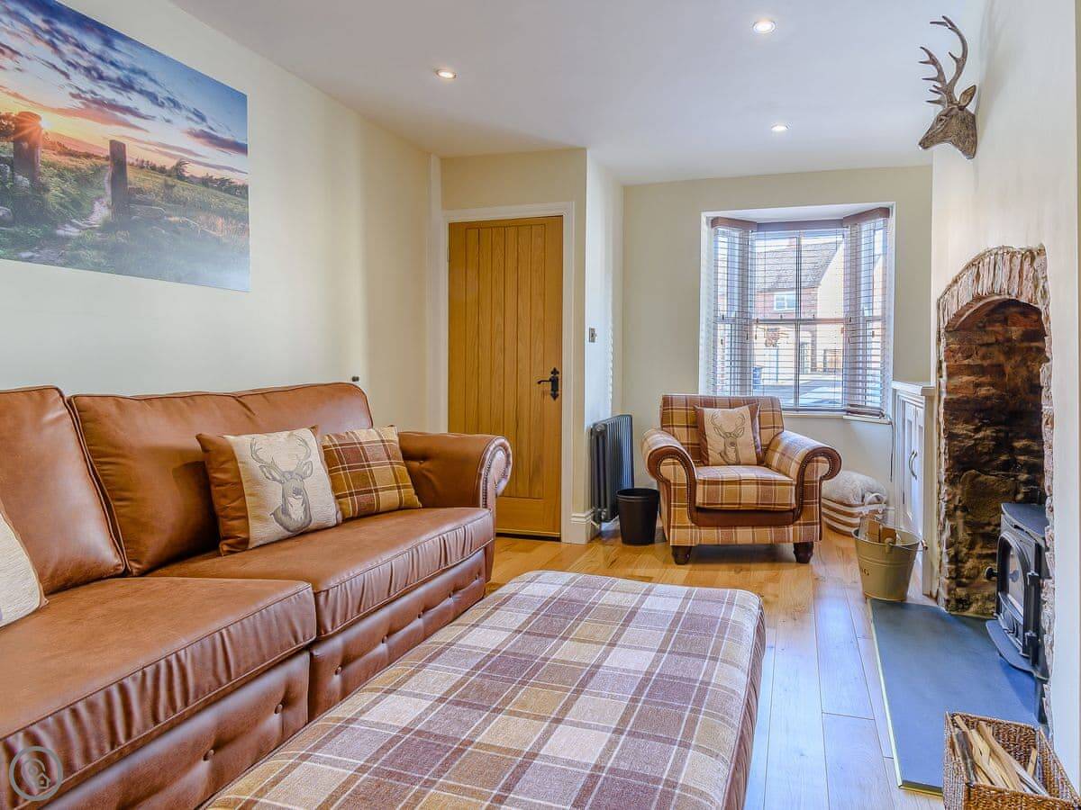 Stepping inside from the pavement you are welcomed into the living area which ensures that you will always be snug and cosy even on the coldest of winter evenings with the woodburner in the hearth, bathing the room in its warming glow. The kitchen is at the rear of the property and is modern yet tastefully chosen in keeping with the style of the cottage which flows effortlessly throughout each room. Also on the ground floor you have the shower room with a rainforest shower. Upstairs there are two bedrooms, the master bedroom has an original feature fireplace as well as built in wardrobes and a dressing table. The second bedroom has a bunk bed which has a strong solid structure and is suitable for adults as well as children. Outside at the back of the cottage you have the enclosed private patio which boasts your own covered hot tub, perfect for winding down together as the day draws to an end. There is also the fabulous addition of a purpose-built dog shower. Ensuring your furry friend can have a warm rinse down after a day of exploring. This outdoor shower is also great for wet suits and swimming costumes after a day at the beach – or even for very sandy children! From the patio you can see the rolling hills on the moorland enticing you out to explore.