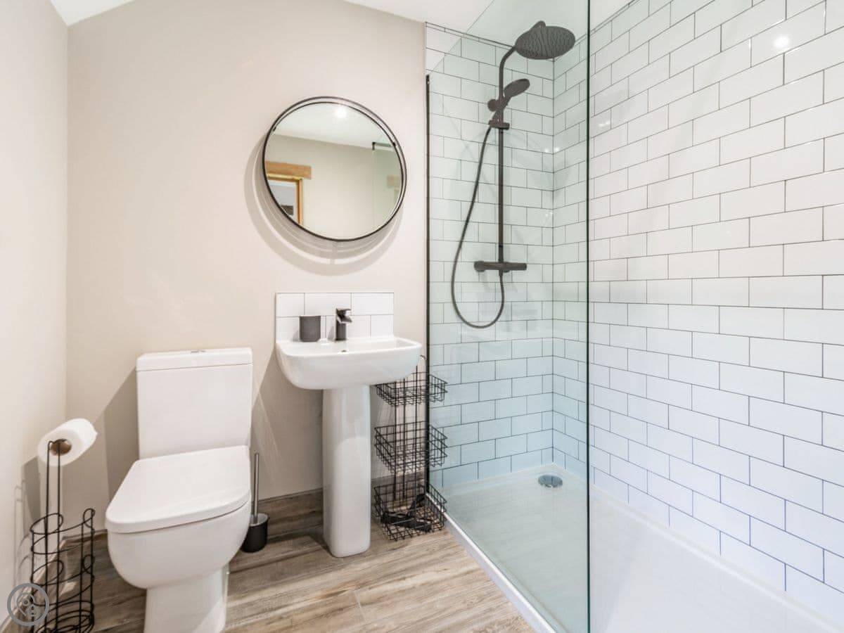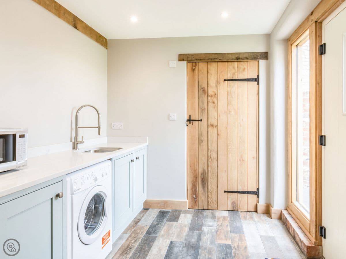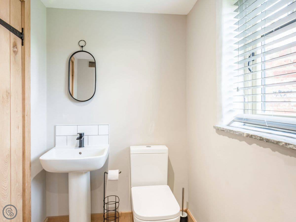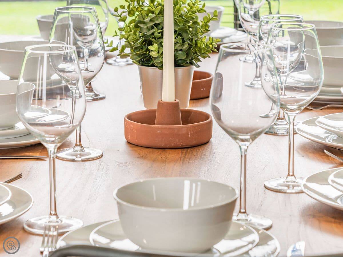 Downstairs is all open plan, which works well when there's a few of you. The table seats ten. There's a wood burner and a separate snug room if you need to get away for a bit. The kitchen has a double oven. Heating is underfloor, so it's warm.