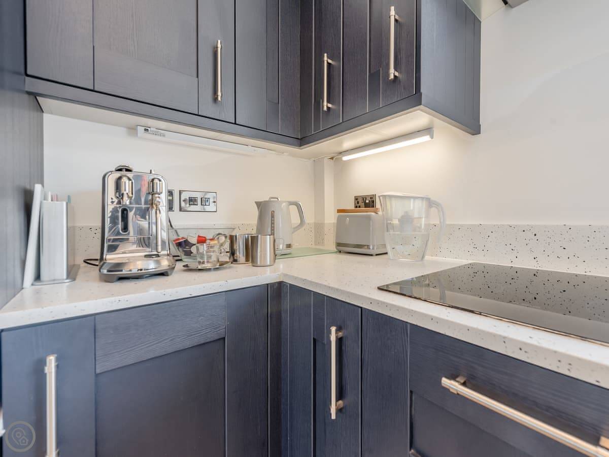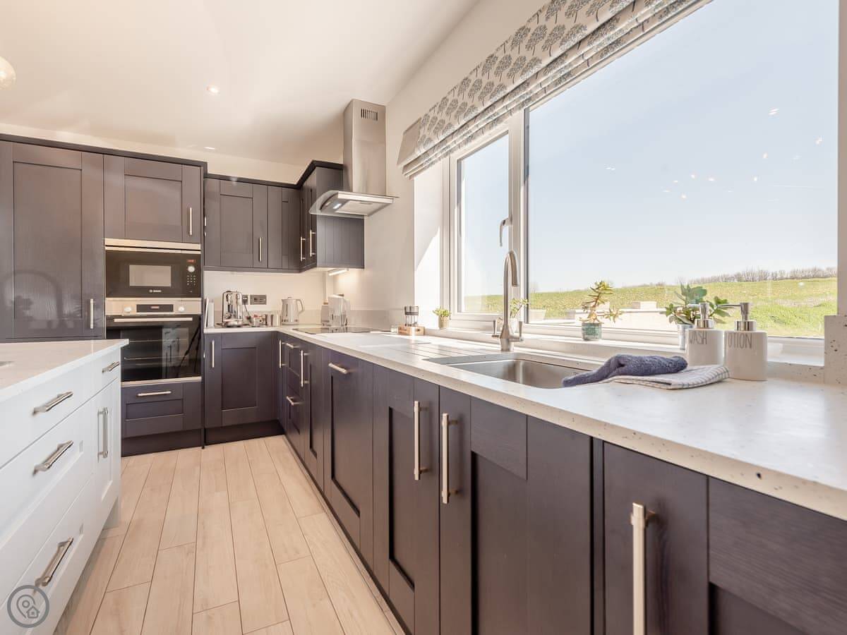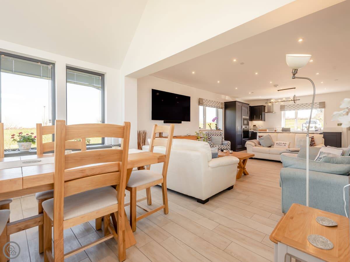 The kitchen and living area is all one room. It's open plan. There's a dishwasher and a washing machine. Outside, there's a patio with a barbecue and the garden is enclosed.