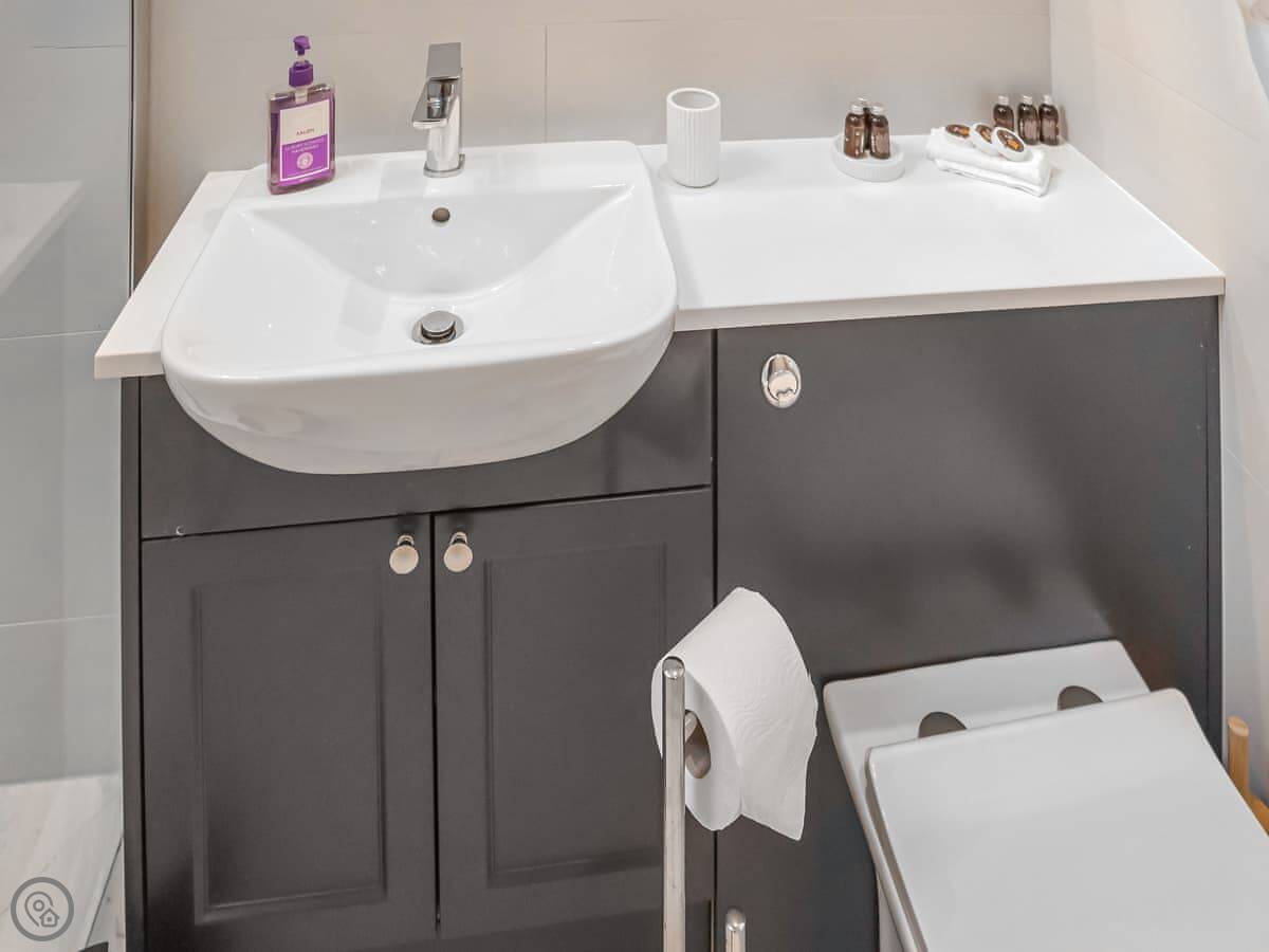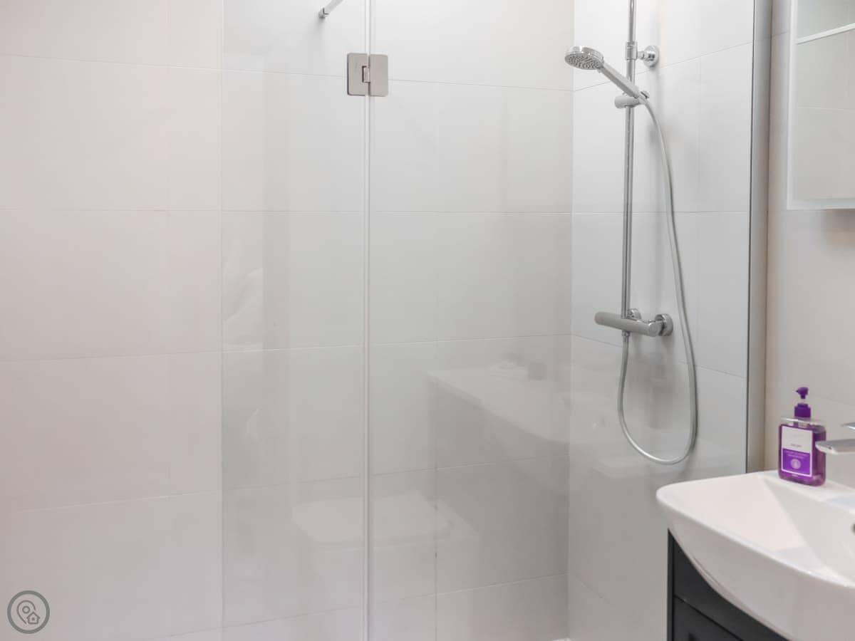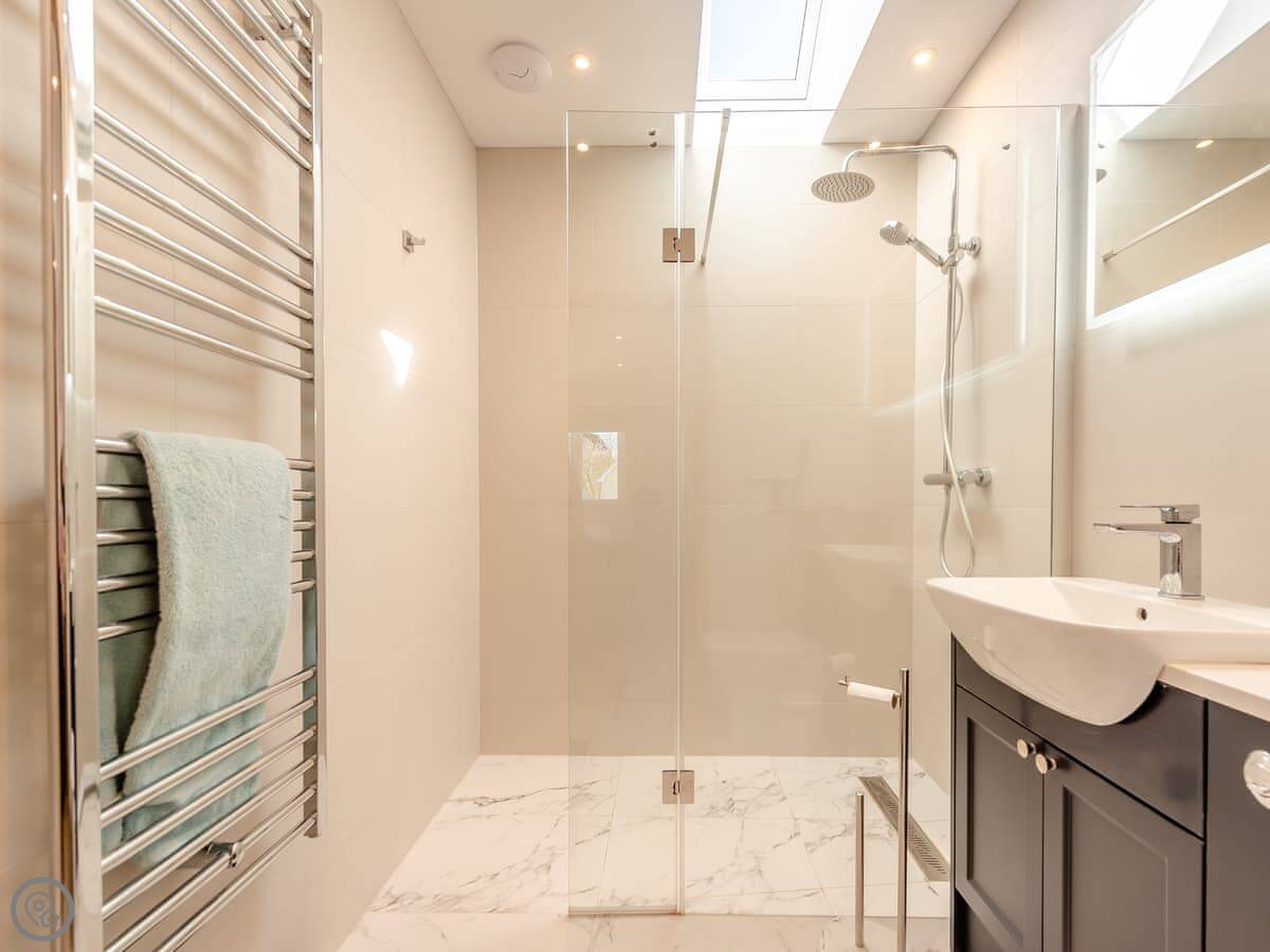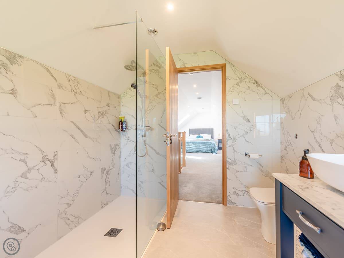 It sleeps four. Two bedrooms, both with their own bathrooms. It's a 5 Star place, so it's well finished. Everything's new. There's underfloor heating and air conditioning. Both beds are king-size, one can be split into two singles if you need it.