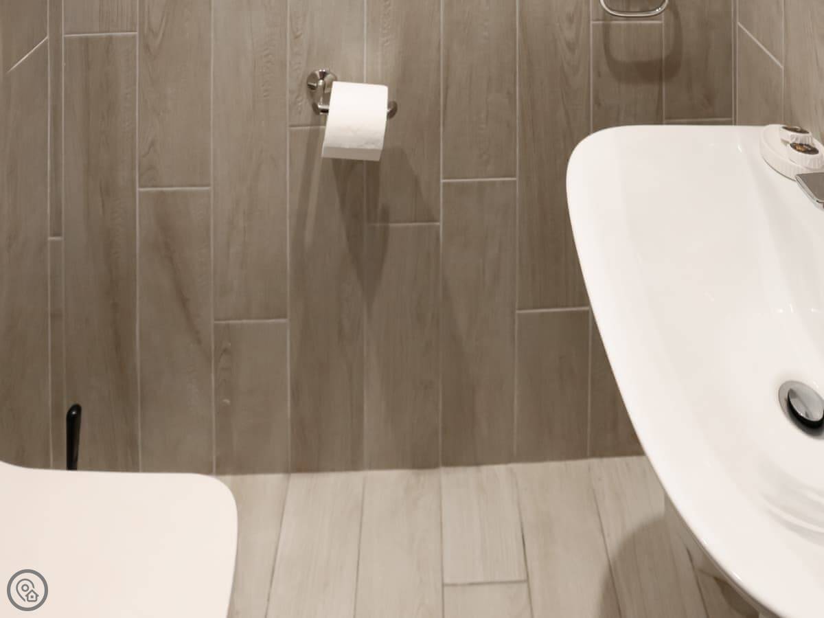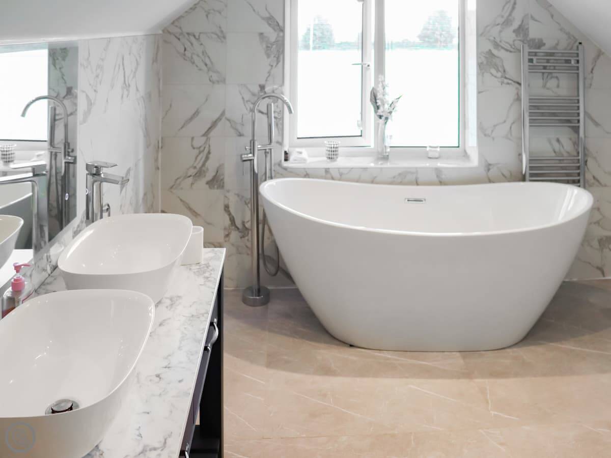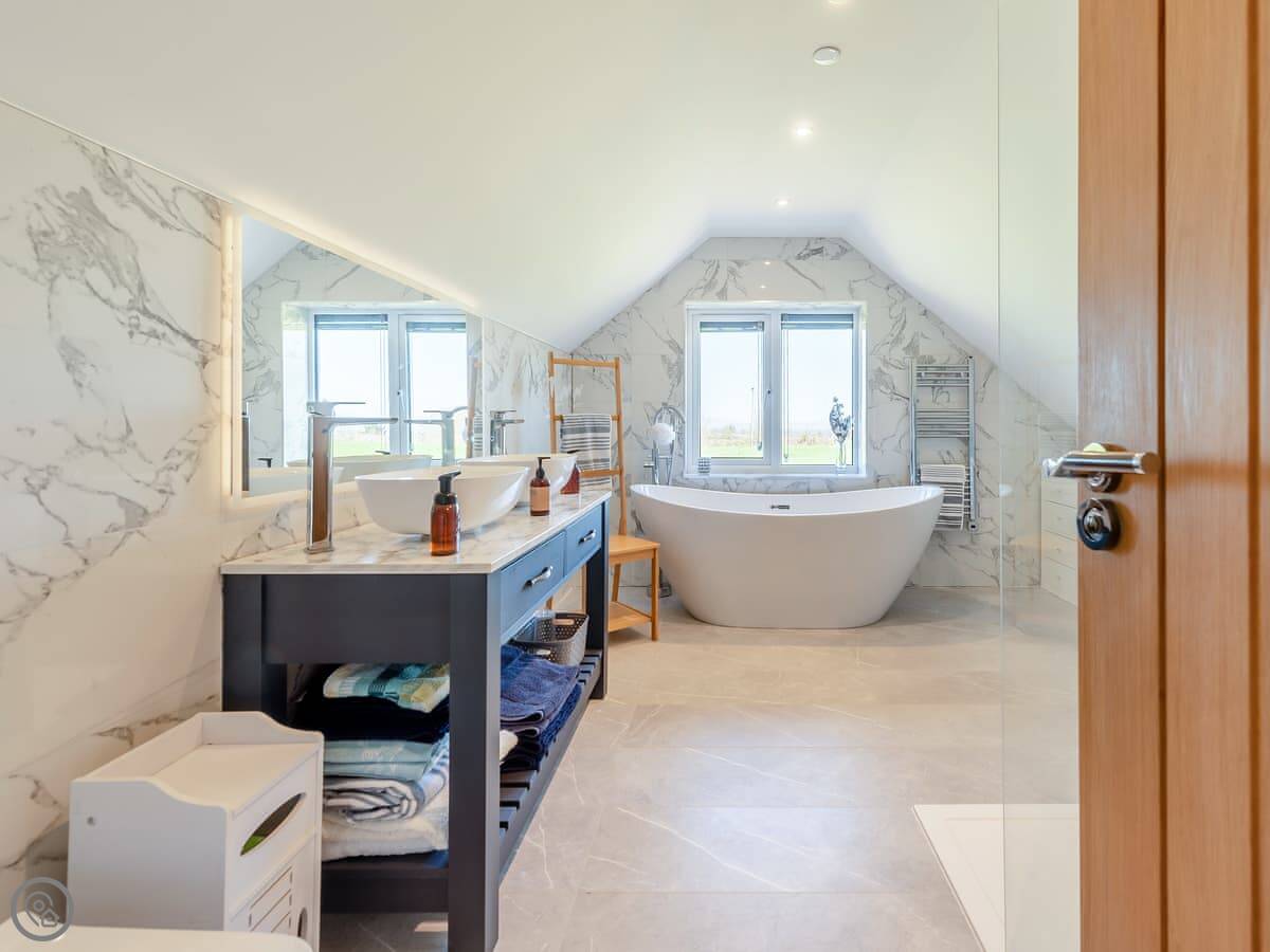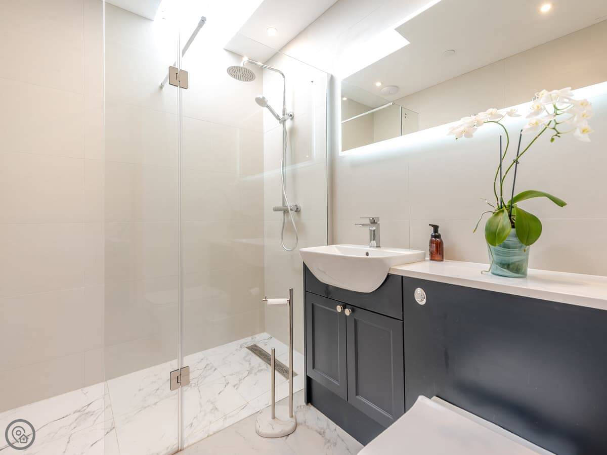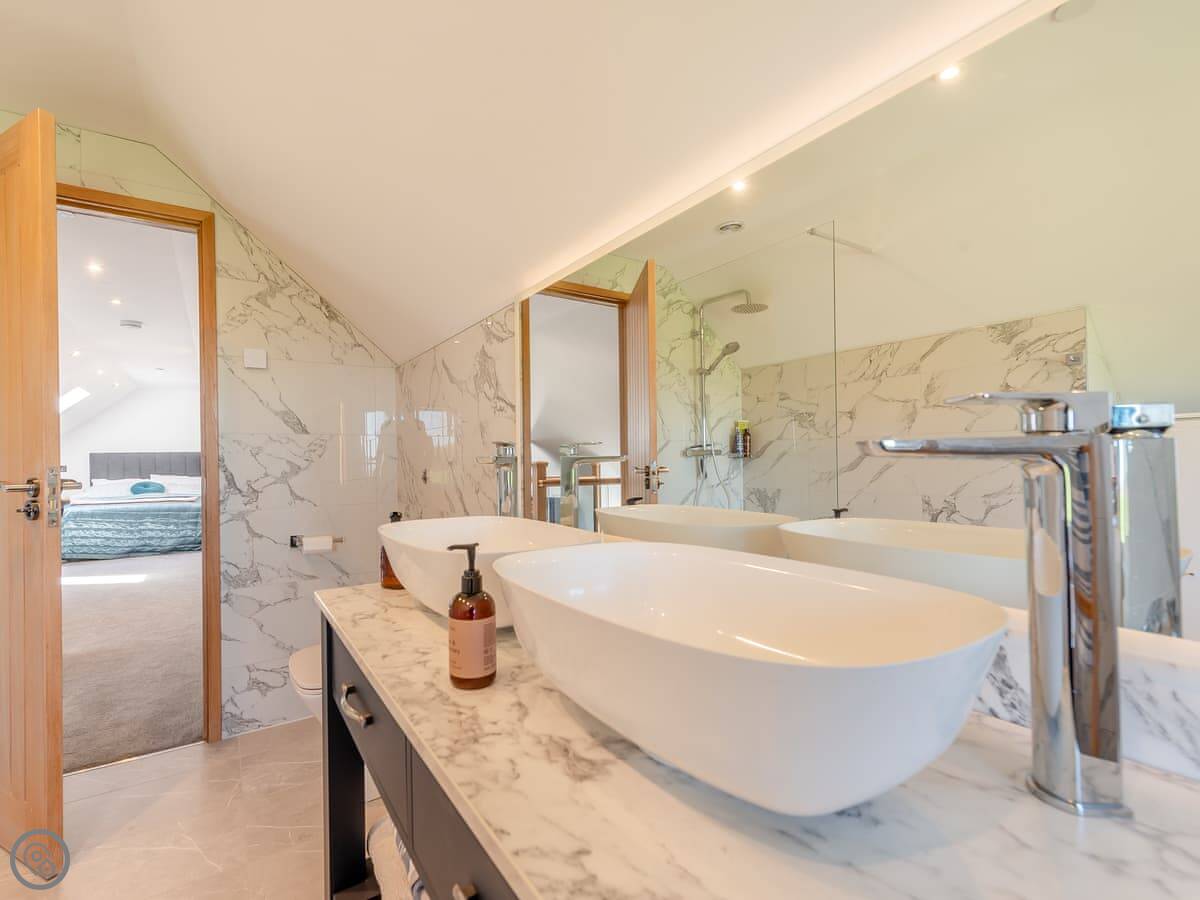 It sleeps four. Two bedrooms, both with their own bathrooms. It's a 5 Star place, so it's well finished. Everything's new. There's underfloor heating and air conditioning. Both beds are king-size, one can be split into two singles if you need it.