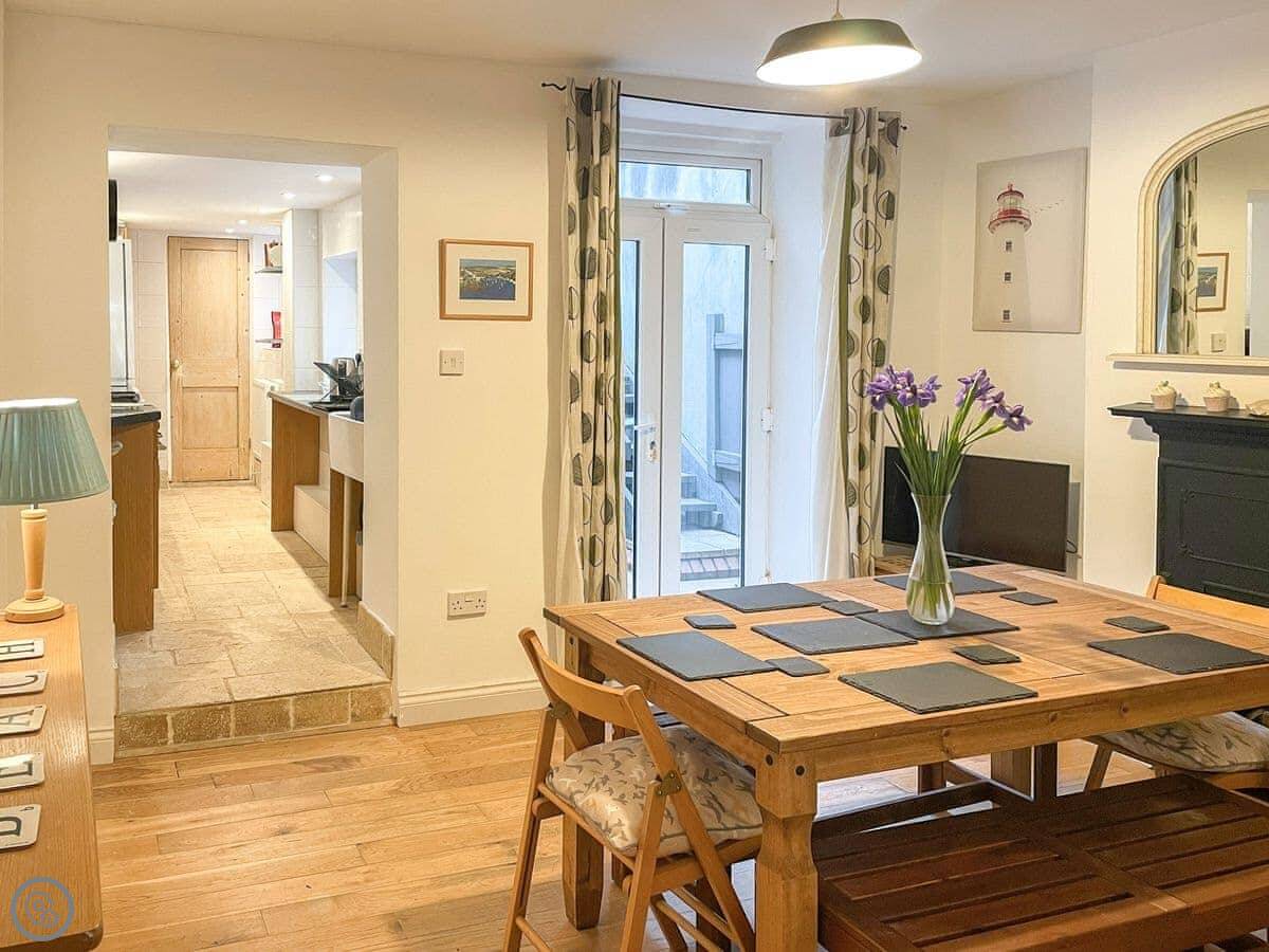 Stepping inside Chesil cottage, you are welcomed into the living room with a Purbeck stone fireplace. French doors lead out on to the front courtyard where you can sit and enjoy views across Chesil Beach, stylish new sofas and a Smart TV. The separate dining room which also has French doors that lead on to the rear of the courtyard garden is the perfect place for all the family to enjoy a meal, with a small work/PlayStation for both and adults and children to get some quiet time before heading out to explore the many beautiful places Dorset has to offer. The kitchen is well equipped with a Range oven, fridge/freezer, dishwasher and microwave. At the rear of the kitchen is the downstairs toilet. On the first floor, you will the find the large family bathroom with a roll-top bath, large shower unit and heated towel rail. A utility room/studio room is off the bathroom with views across on the upper deck garden. Bedroom one is located at the front of property with a kingsize bed and walk-in wardrobe with separate work/PlayStation. A further two spacious bedrooms can be found on the second floor both with kingsize beds and spectacular views are enjoyed from the front bedrooms and their window seats. Outside, you will find the rear courtyard garden, which is split over two floors, the ground floor is perfect to store the bucket and spades/surfboards for those summer days on the beach.