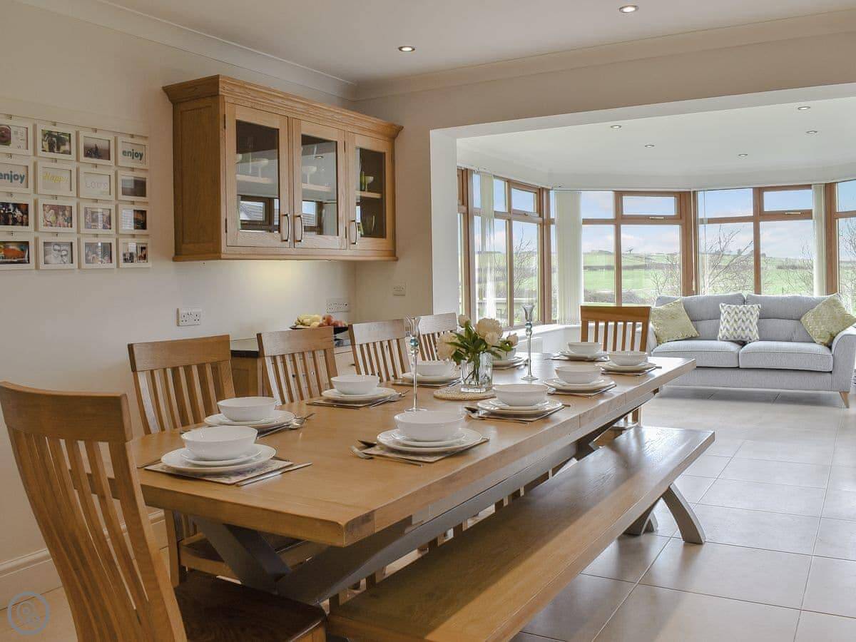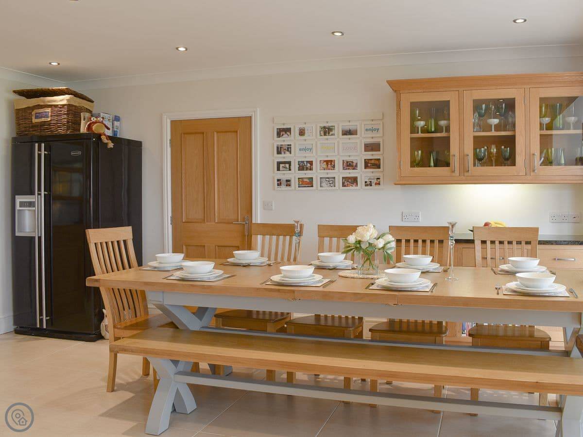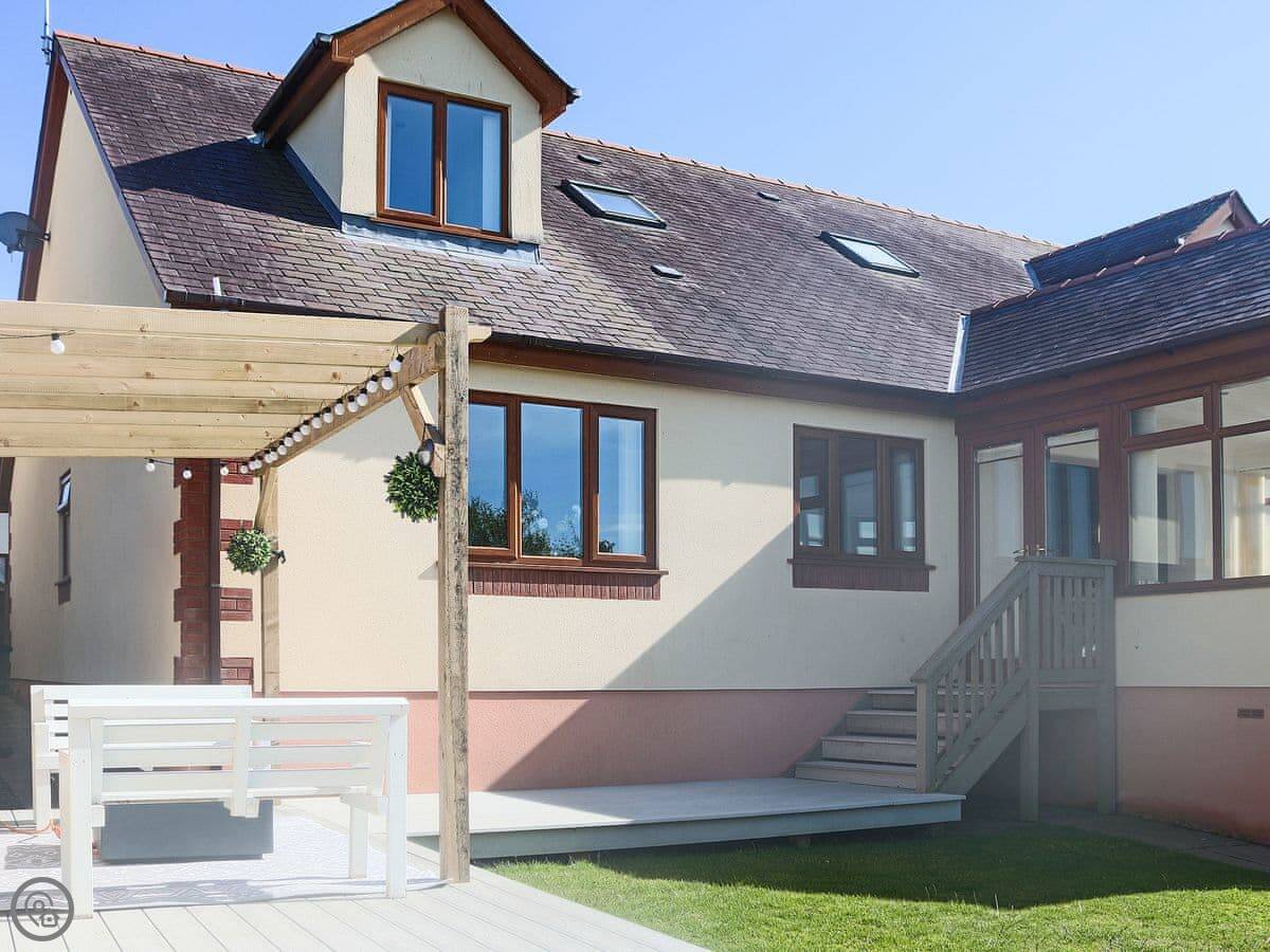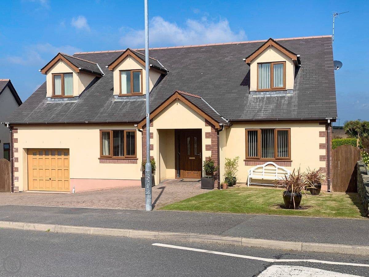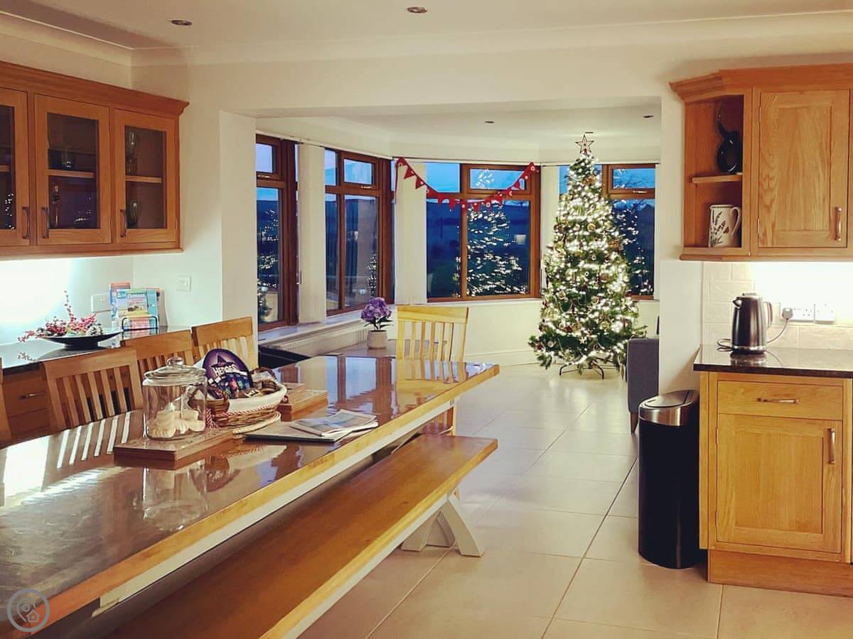 It sleeps ten people across five bedrooms. Three bathrooms, one on each floor. The kitchen is big which is good if a few of you are cooking. It has a 5 Star rating so everything is in good working order. You can bring two dogs.