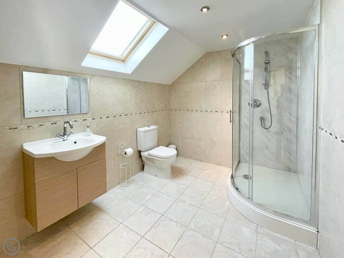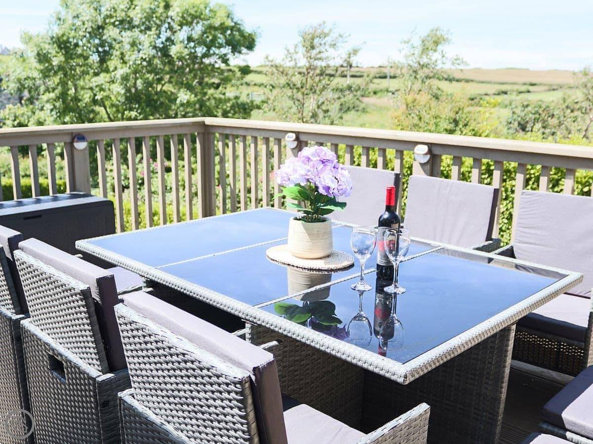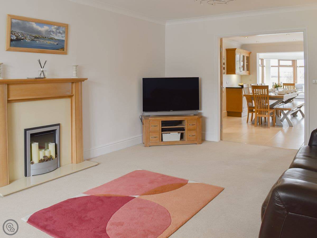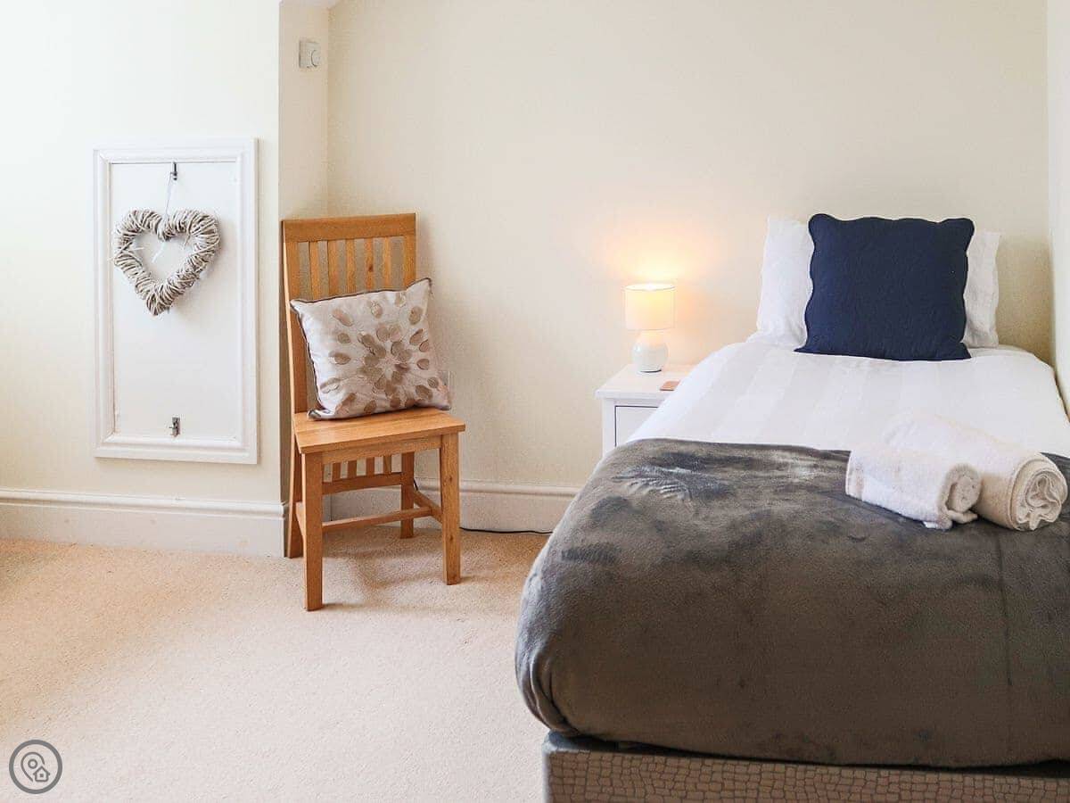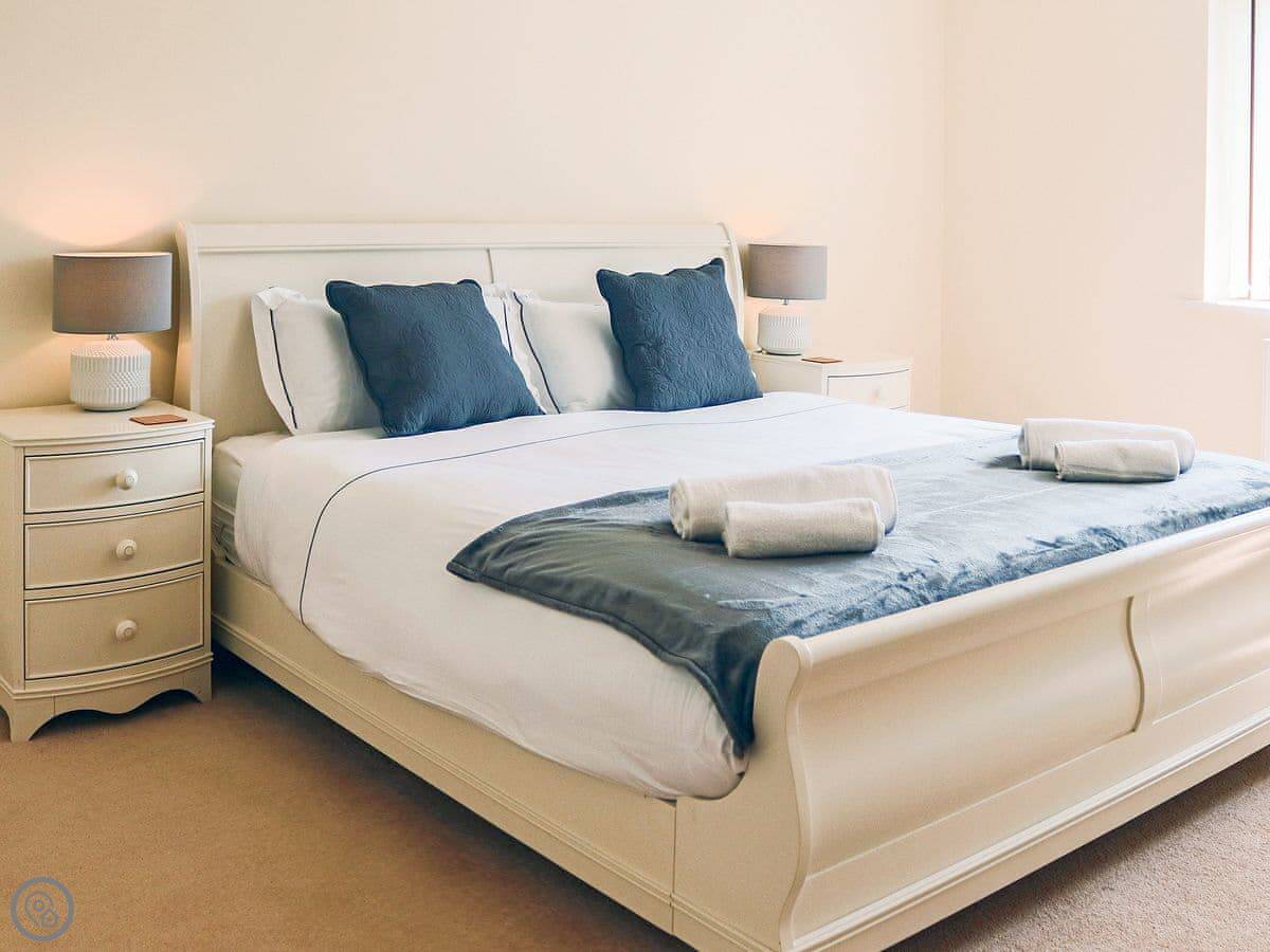 It sleeps ten people across five bedrooms. Three bathrooms, one on each floor. The kitchen is big which is good if a few of you are cooking. It has a 5 Star rating so everything is in good working order. You can bring two dogs.