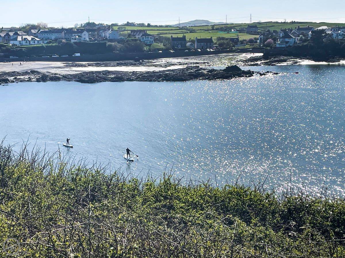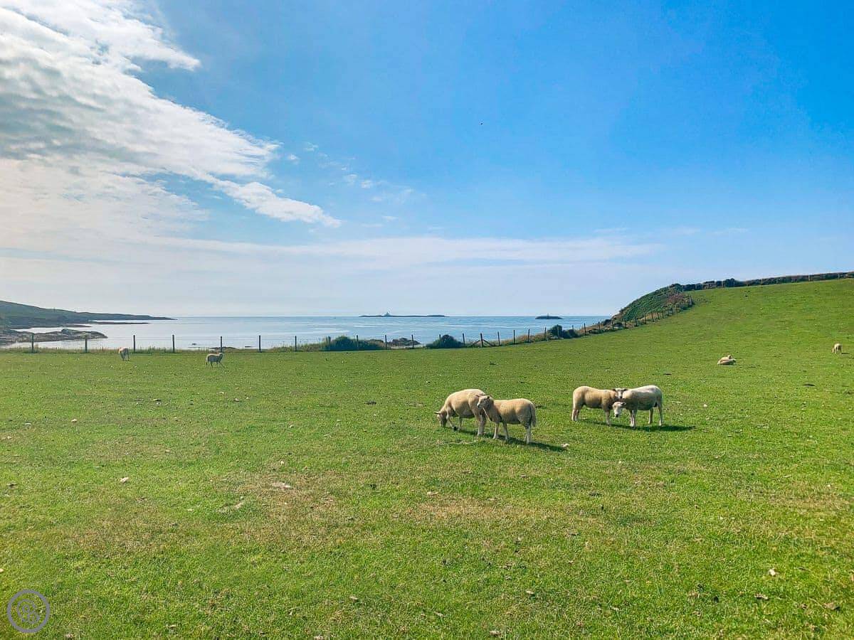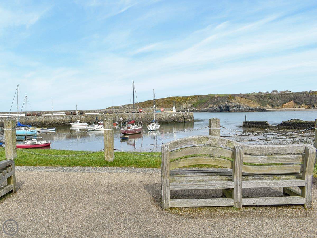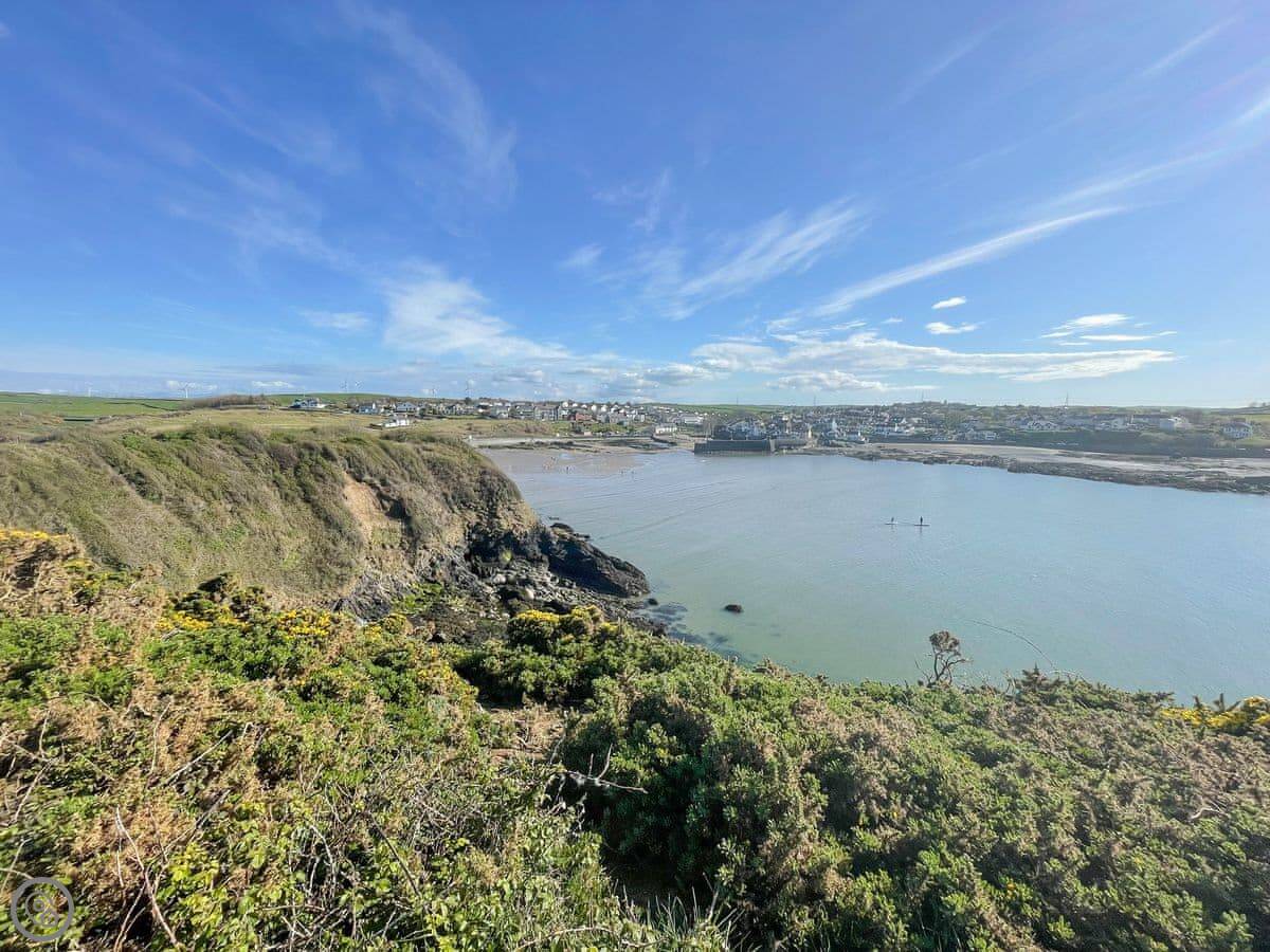 Cemaes itself is about a ten minute walk downhill. There's a couple of pubs that do food, a few shops for basics, and a nice little harbour. The coastal path runs right by it if you want a proper walk. The main beach in the bay is sand and shingle, good for a paddle. The walk to the bay takes you back up a hill, so it's a bit of a climb.