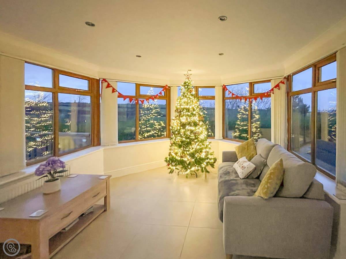 Llwyn Ysgaw is just outside Cemaes, on the north coast of Anglesey. It's a detached stone house, not on a main road. You can see the sea from the upstairs windows.