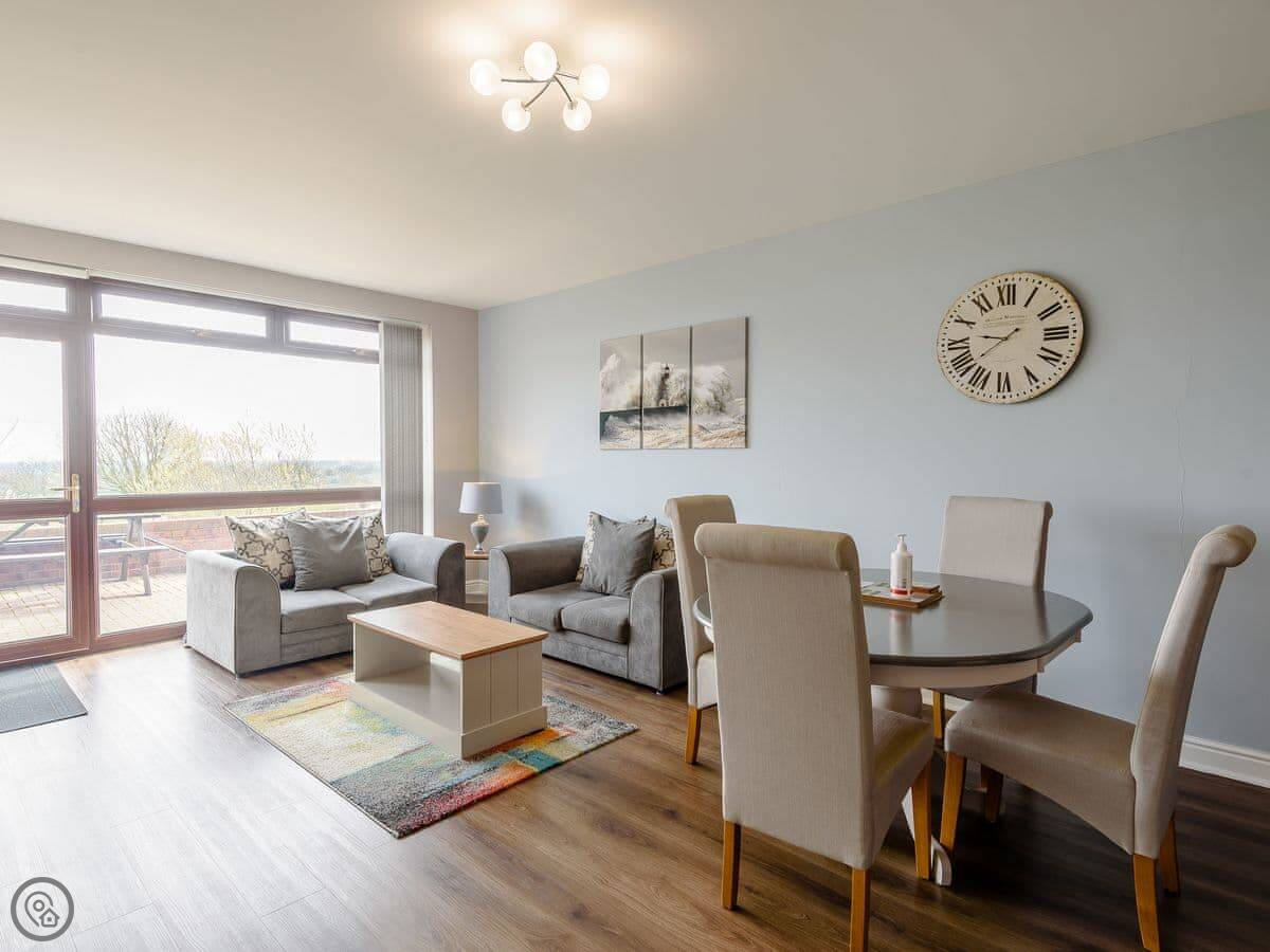 Cottage 6 is one of a few places on Ashby Hill. It's on a country park, so the land is open. You look out over a lake and fields. The view is the main thing.