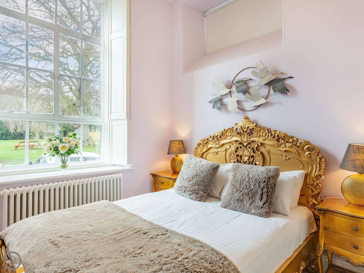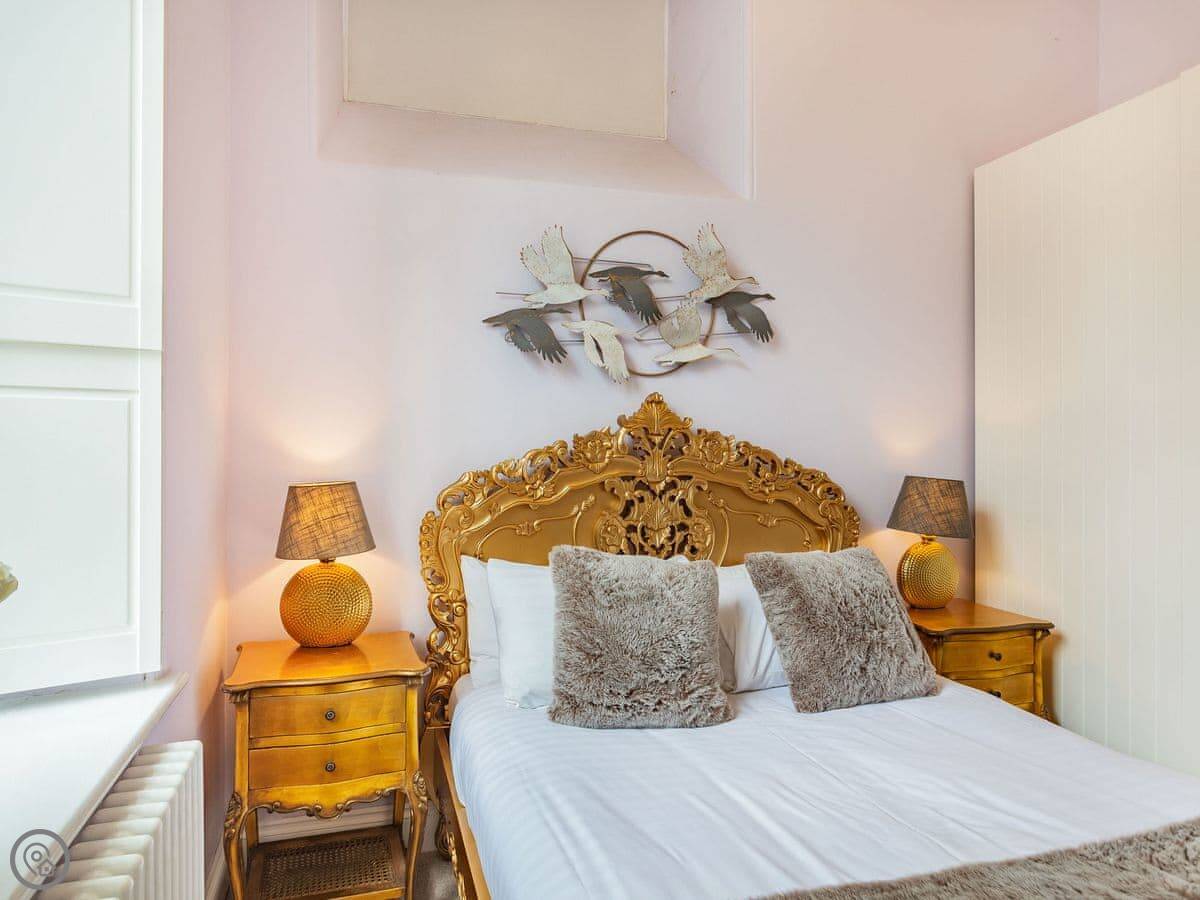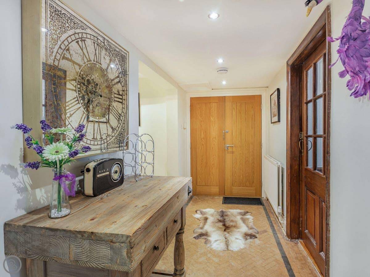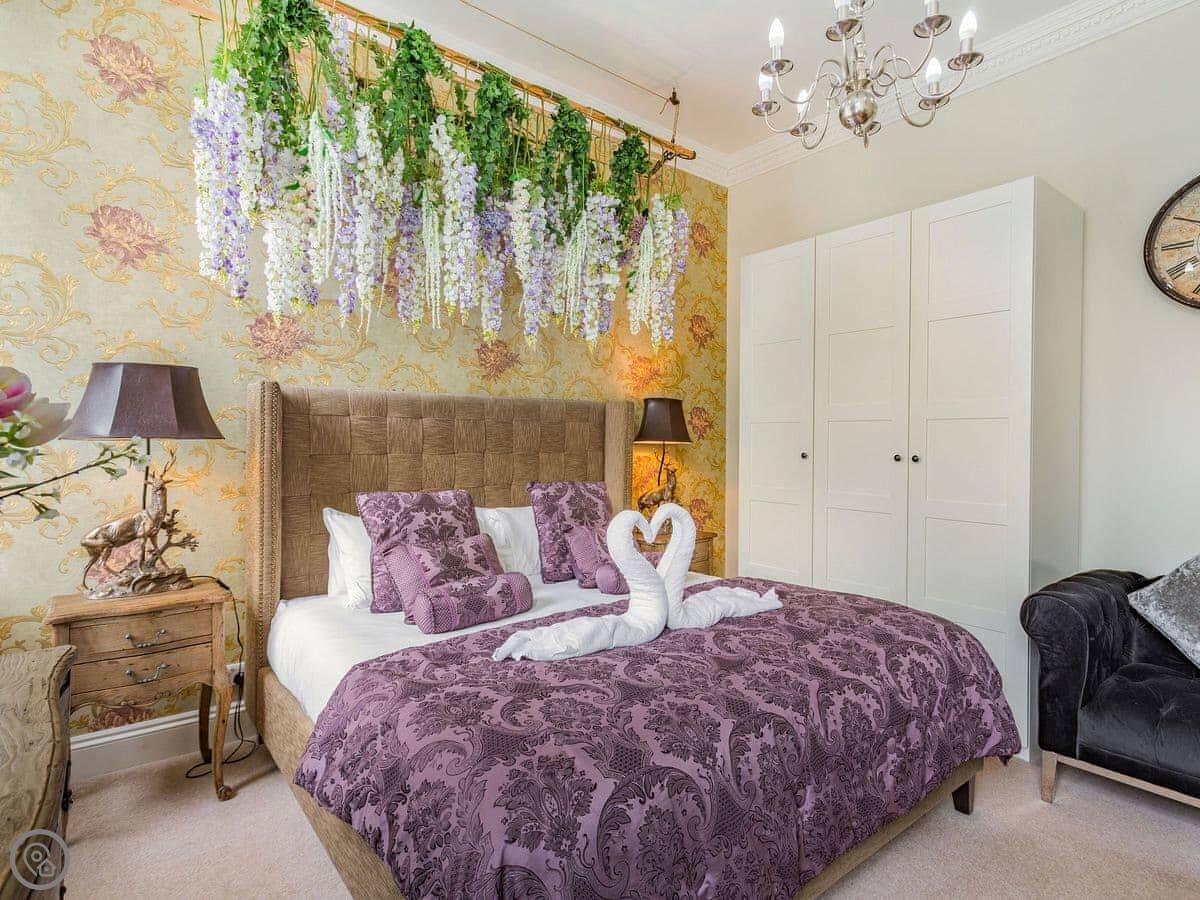The galley kitchen is home to all the contemporary appliances you could need to create a feast fit for royalty to be enjoyed in the dining room within the cosy alcove. The master bedroom is simply stunning, beautifully decorated with a fabulous super kingsize bed, and an ornate desk for use as a dressing table, through to the en-suite bathroom with a decadent copper roll top bath and marble floor. The second en-suite bedroom presents a regal theme with hints of gold running throughout and overlooks the gardens. After a day exploring the beautiful dales, enjoy some relaxation, open the bubbly, slip on the provided robes and head to the spa room to relax in the four-person spa bath, with mood lighting and bluetooth.