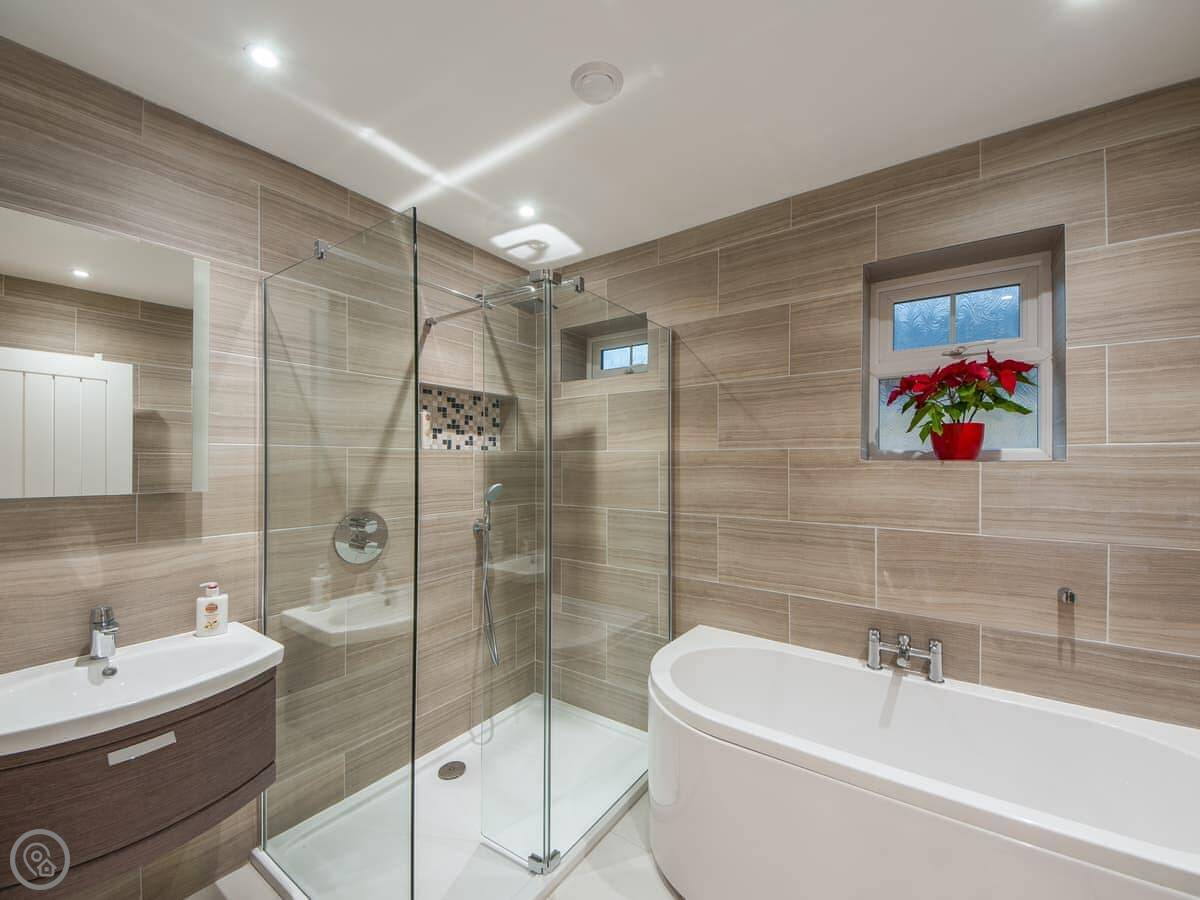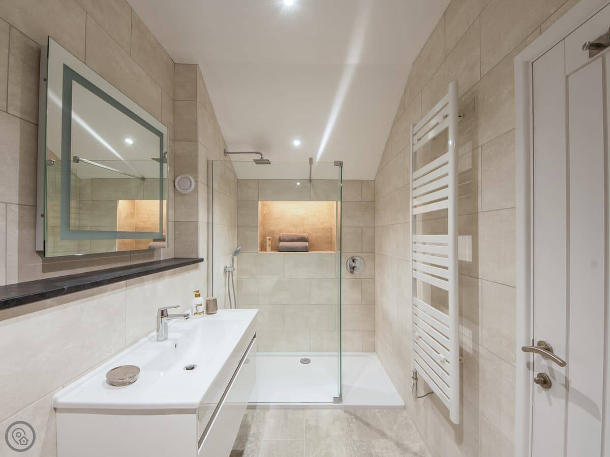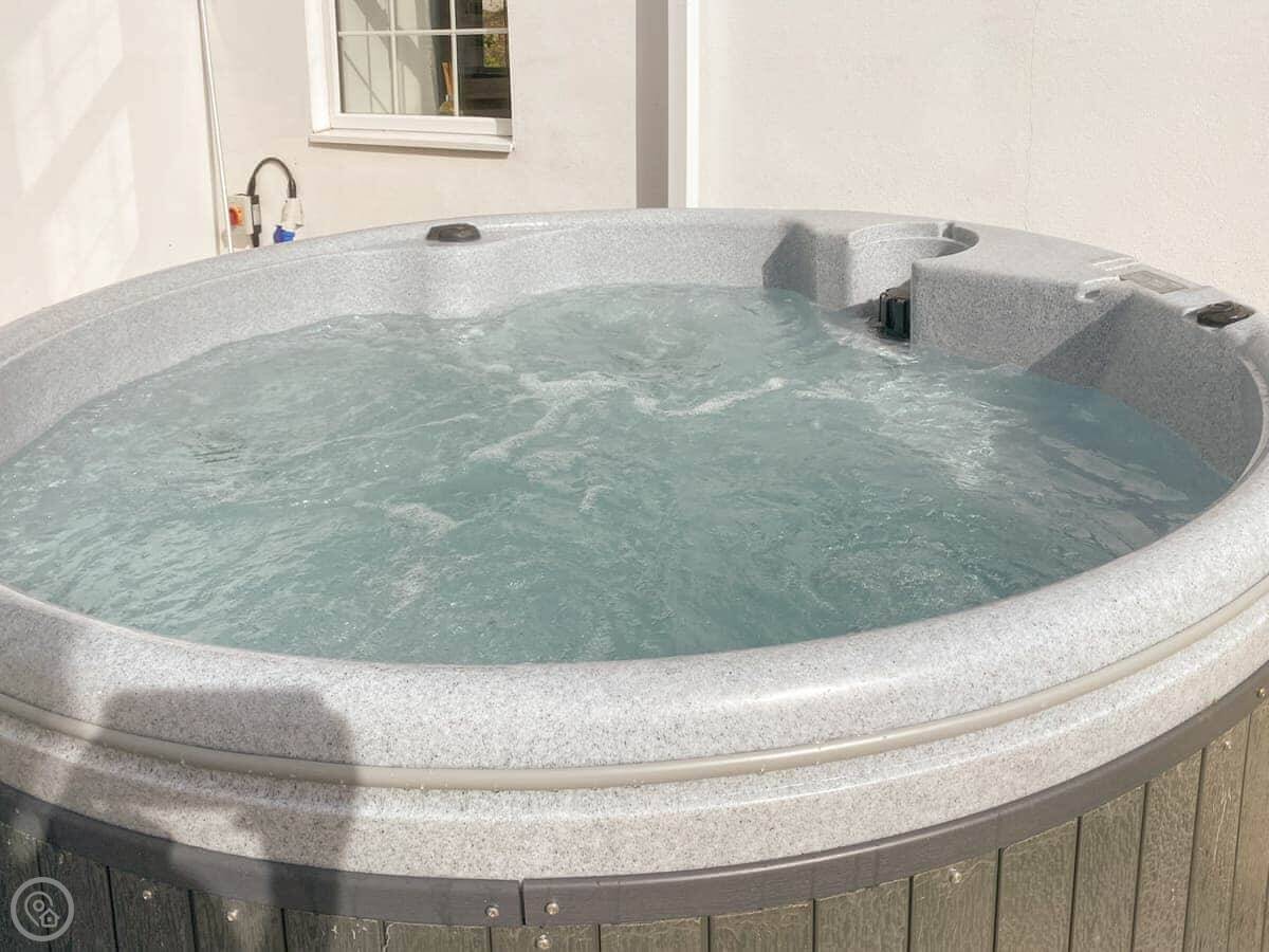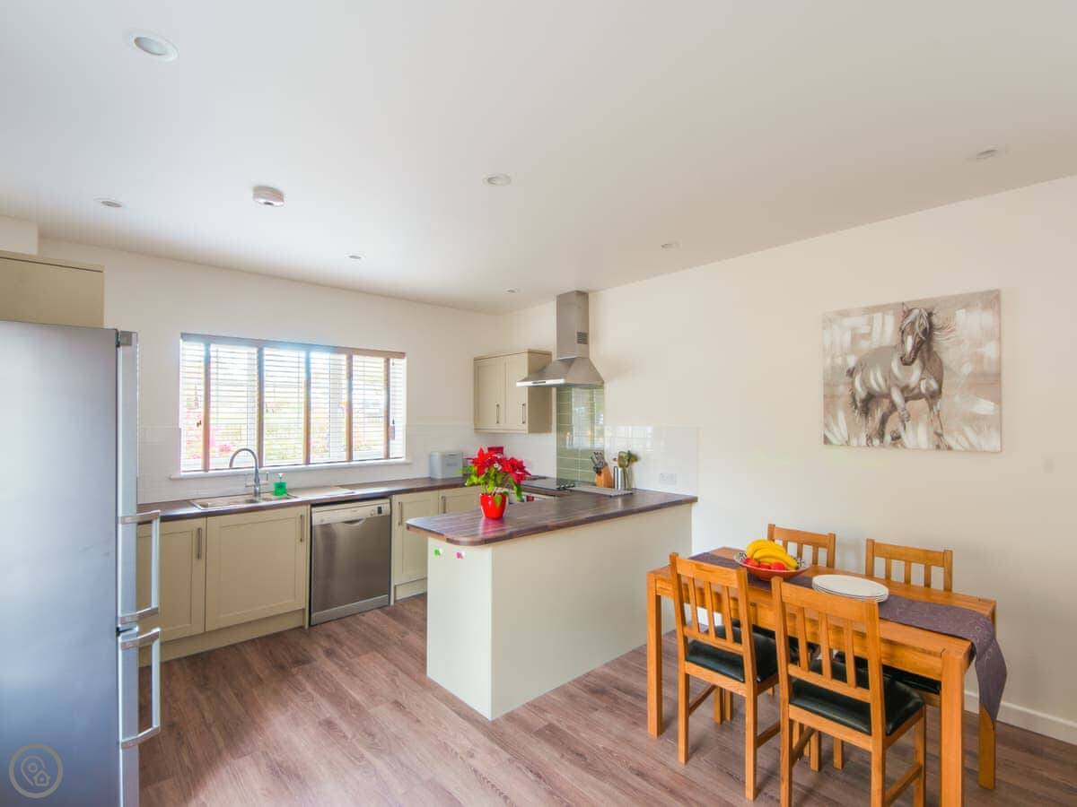 You've got your own enclosed patio garden with a barbecue. Then there's about 27 acres of shared grounds around the stables. There's a big lawn, a kids' play area, a woodland walk, and a field. It's quiet.