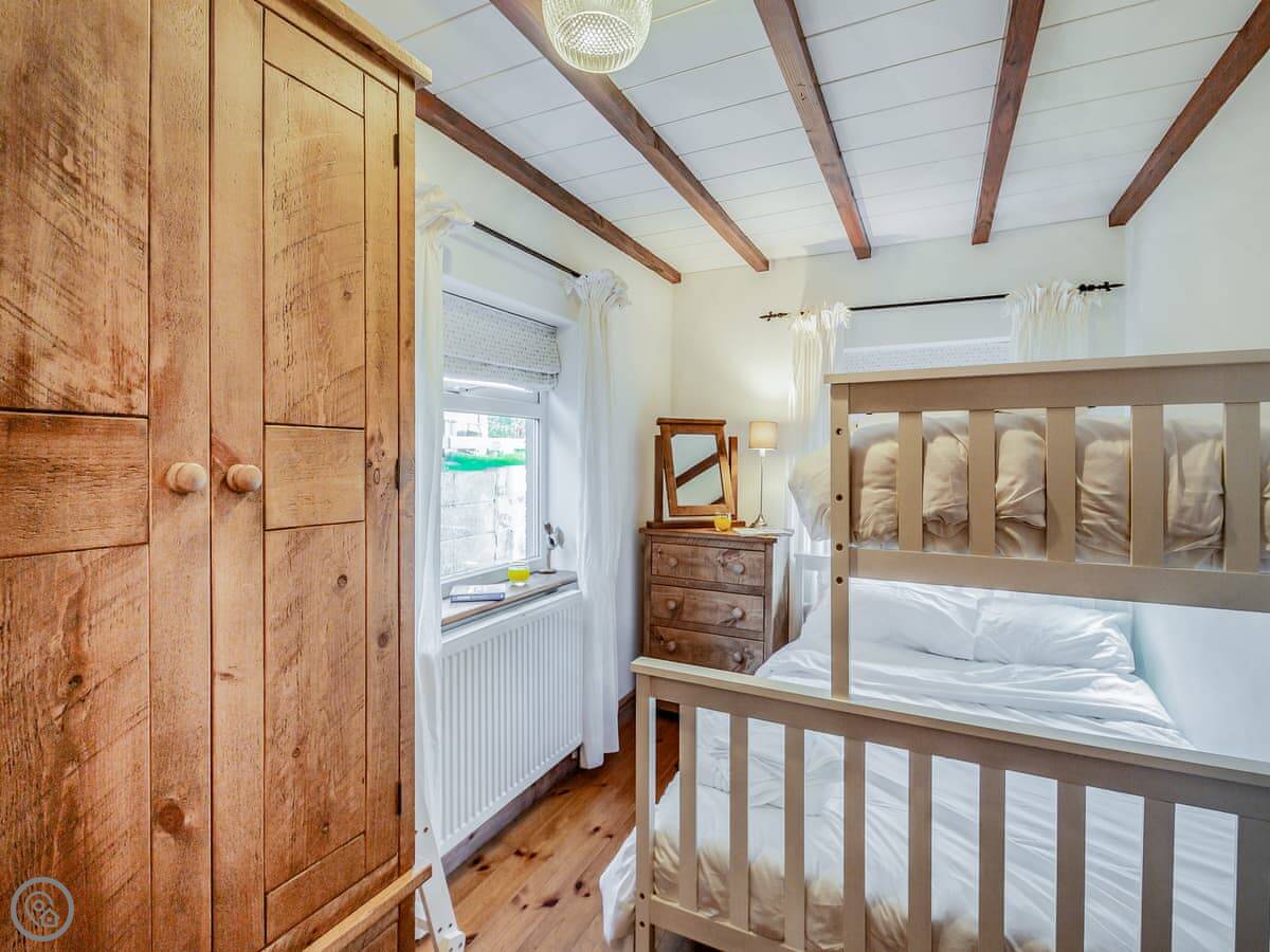 A quintessential Welsh stone cottage with steps to and within the property has all your home comforts. Boasting two inviting living rooms adorned with cosy wood burners offering warmth and comfort, with one featuring a Freeview TV for entertainment and French doors allowing the natural light to bathe the room while leading to the enchanting garden. The kitchen is a culinary haven, boasting ample counter space and a myriad of utensils, ensuring every culinary creation is executed with ease and precision. The kingsize bedroom exudes comfort with its plush bedding and elegant furnishings, while the bunk bedroom offers a cosy retreat for flexible sleeping, complete with charming décor. The garden features a tranquil sitting area, nestled amidst vibrant flora and dappled sunlight, providing the perfect spot for relaxation and al fresco dining amidst nature’s beauty with an impressive backdrop made of sea views. Perfect for a relaxing break from the hustle and bustle of everyday life.