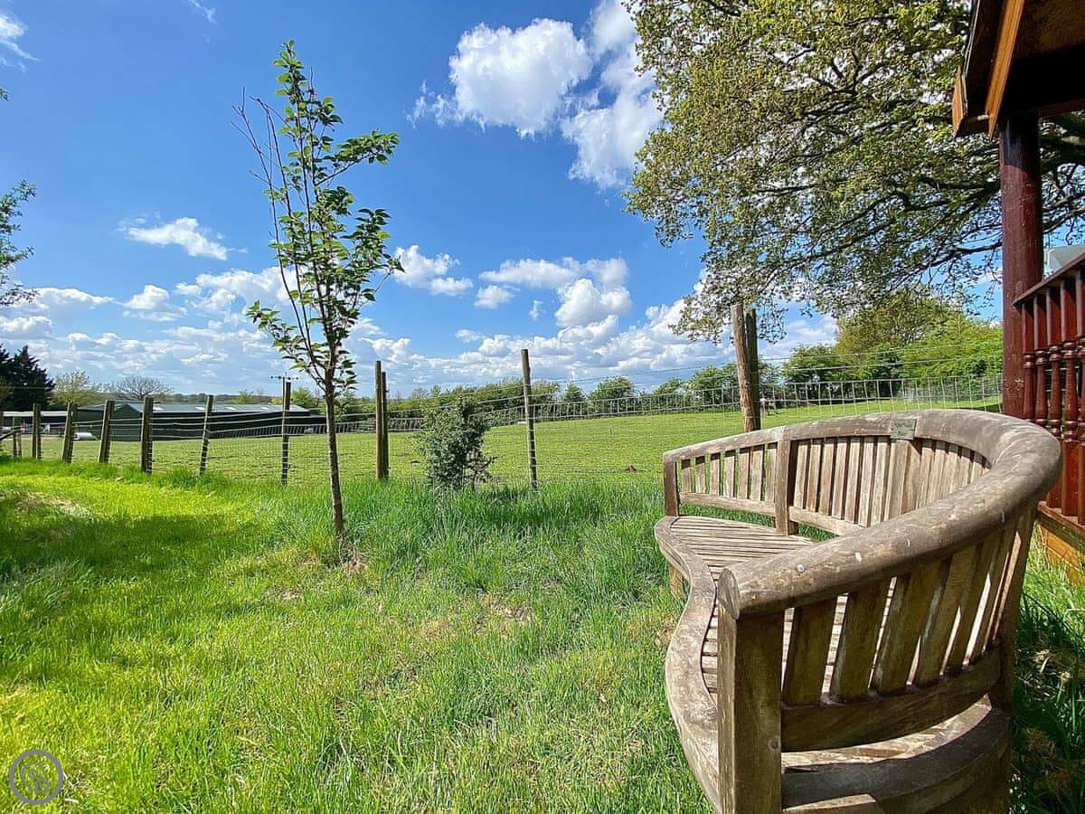 You can walk around the farm. There's about 63 acres. We keep horses here, so sometimes you can see them from your door. There's a fire pit area everyone can use. There's also a shared lodge with sofas if you want to sit somewhere different.