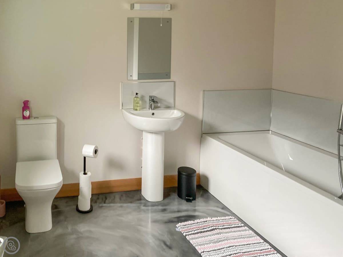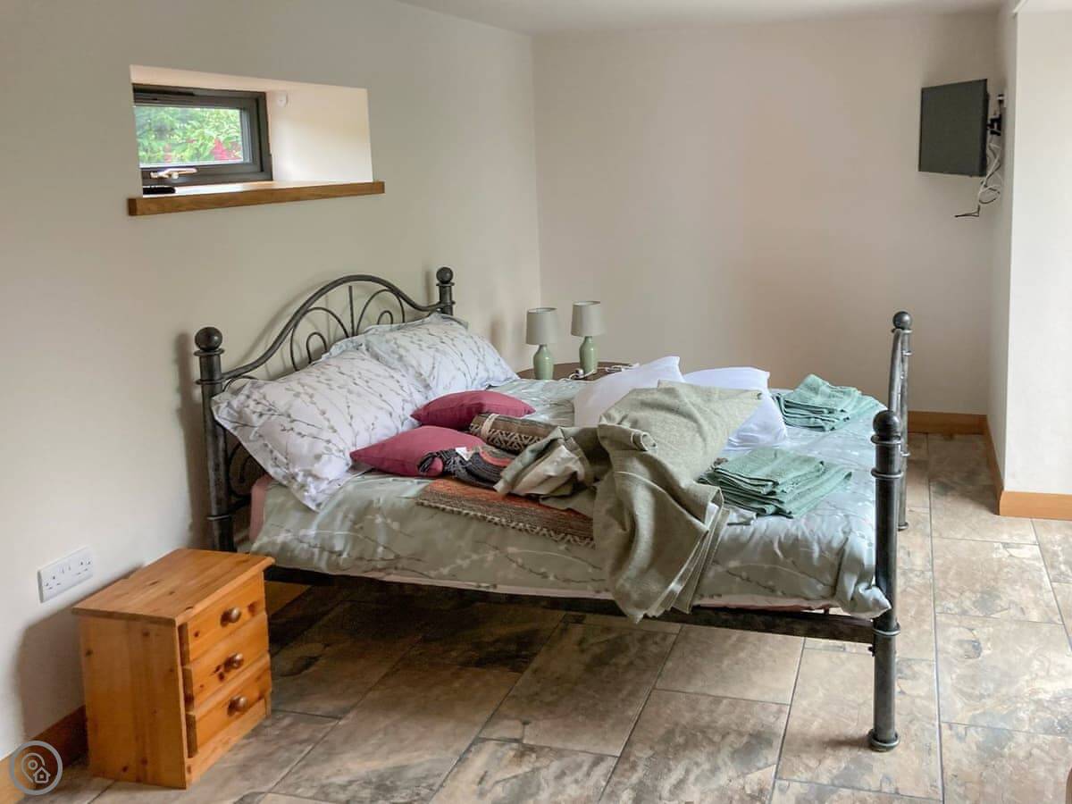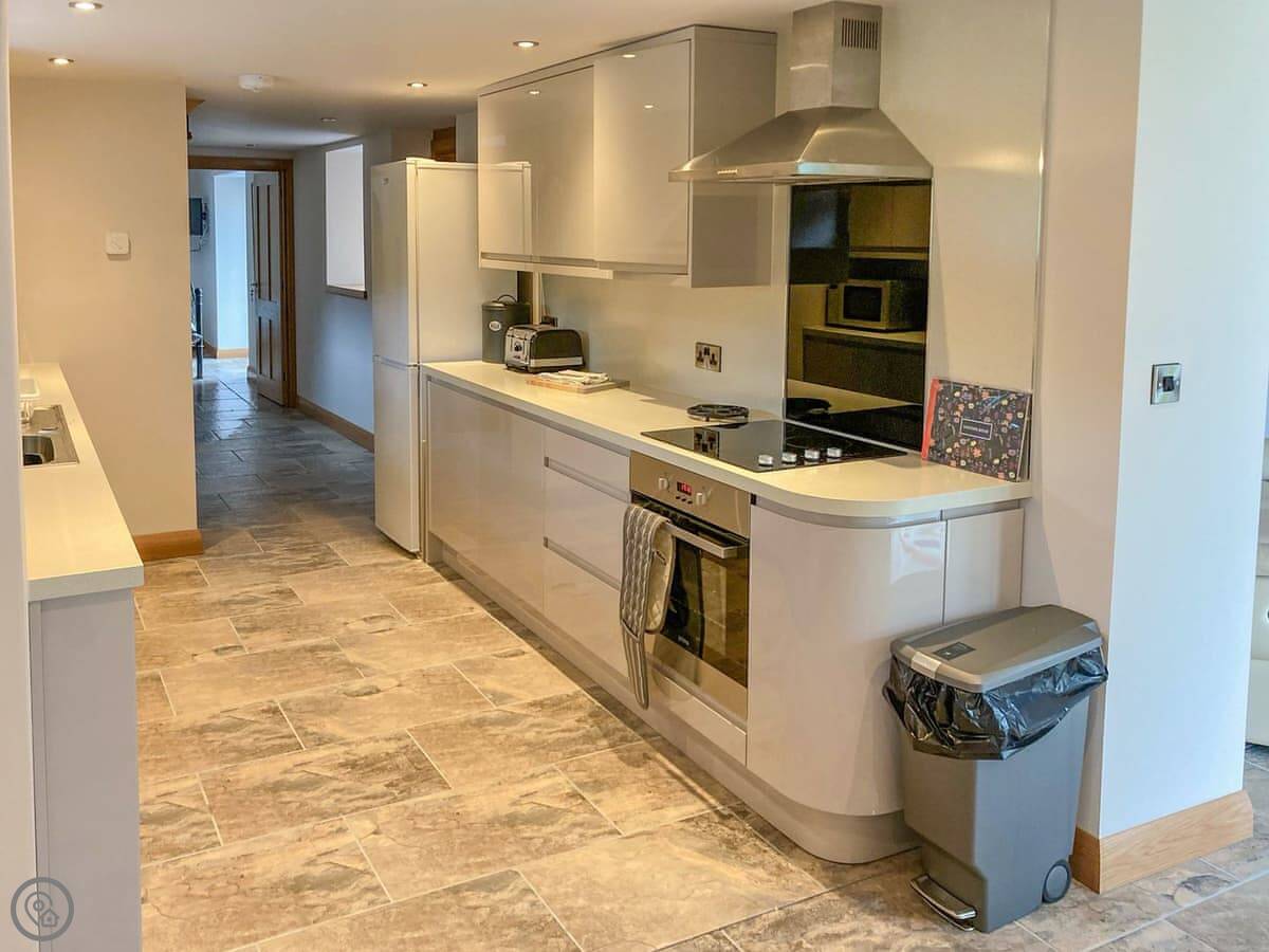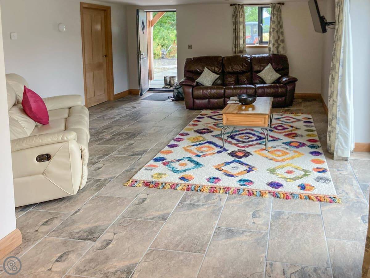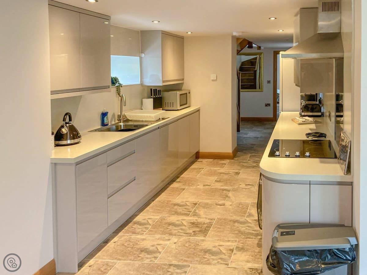 The main living space is an open plan living room with high ceilings, soft furniture, and a pleasing contemporary décor, where guests often tend to congregate in front of the Netflix-enabled Smart TV or peer out of folding doors onto the outdoor patio space. Like the kitchen, this space benefits from underfloor heating throughout. On the same level, the kitchen is kitted out with everything you need to prepare meals for the loved ones who you are sharing the house with, as well as a smart television and your own coffee machine, plus a dishwasher. The dining area is also integrated in this large open space, to enjoy meals, or a great spot to share a few beers and relax at the end of the day. On the same floor the cottage benefits from a double bedroom, with a double bed. There is also a wet room next door with underfloor heating. The remaining four bedrooms are located on the first floor, a double room with two single beds and smart tv with the family bathroom next door and an ultra-lush slipper bathtub. The second bedroom being the master with king size bed, and ensuite featuring a walk-in rain shower. The remaining two bedrooms are doubles both with double beds, one with an ensuite shower room. All four bedrooms, benefit from tons of natural light giving an airy feel with fantastic views of the countryside. Outside a spacious lawn is great for romping around, plus a patio with garden furniture for enjoying a glass of wine, and a BBQ or simply watching the sun set over the distant hills.
