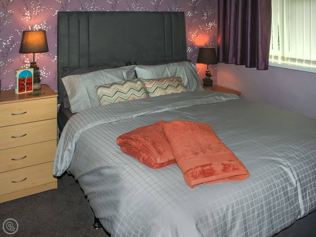 It sleeps four in two bedrooms, one with a king size bed and the other a double. There's one bathroom with a walk-in shower. It's a 4 Star place, so it's comfortable and has everything you need. It feels more spacious inside than it looks from the outside.