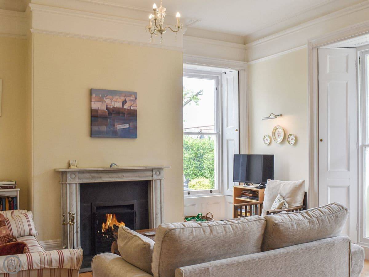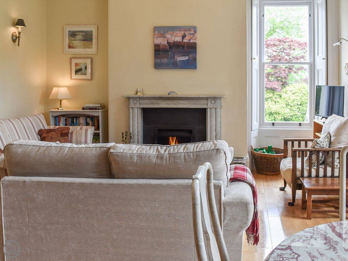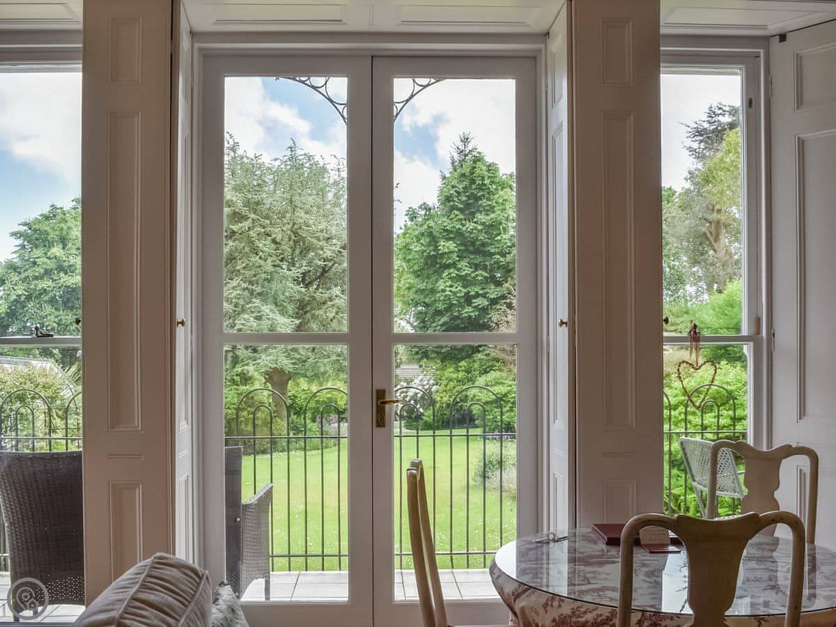 Welcome to The Garden View. Elegance and style not only describe this ground floor apartment perfectly, but also the house in which it resides and the landscaped gardens too. A superb all-weather indoor heated swimming pool with retractable roof nestles within the grounds and is available for your use. This charming holiday retreat offers an open plan dining room, kitchen and living space, with lovely high ceilings, complete with ornate fireplace, extremely comfortable sofas, shuttered windows and a beautiful white marble working fireplace to enjoy cosy log fire evenings. There are two bedrooms, one with ensuite walk-in shower, the second with twin sinks, bath with shower over.