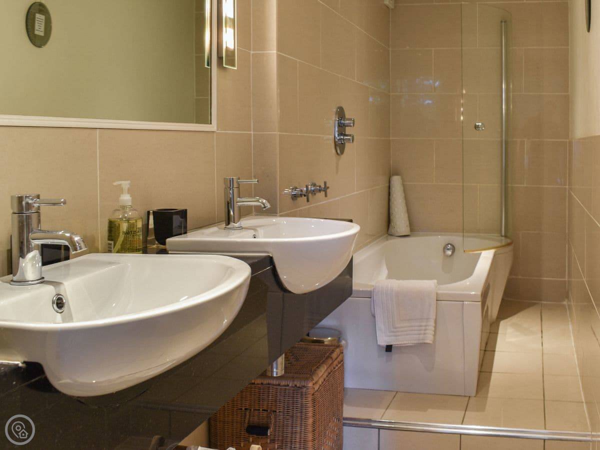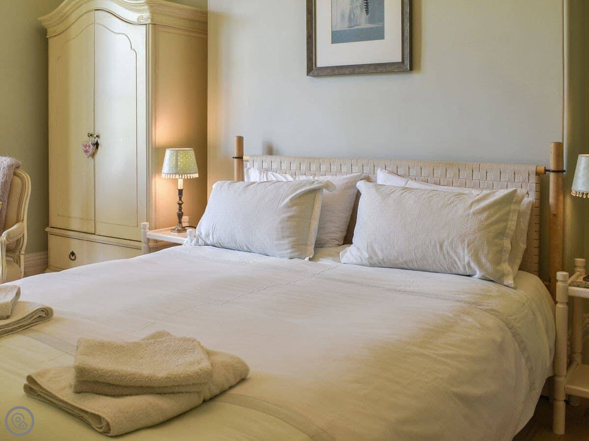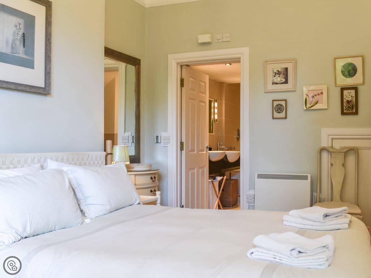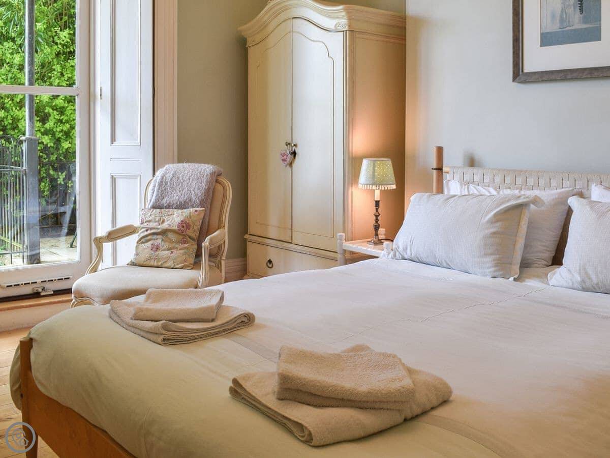 Welcome to The Garden View. Elegance and style not only describe this ground floor apartment perfectly, but also the house in which it resides and the landscaped gardens too. A superb all-weather indoor heated swimming pool with retractable roof nestles within the grounds and is available for your use. This charming holiday retreat offers an open plan dining room, kitchen and living space, with lovely high ceilings, complete with ornate fireplace, extremely comfortable sofas, shuttered windows and a beautiful white marble working fireplace to enjoy cosy log fire evenings. There are two bedrooms, one with ensuite walk-in shower, the second with twin sinks, bath with shower over.