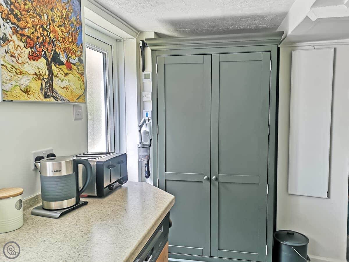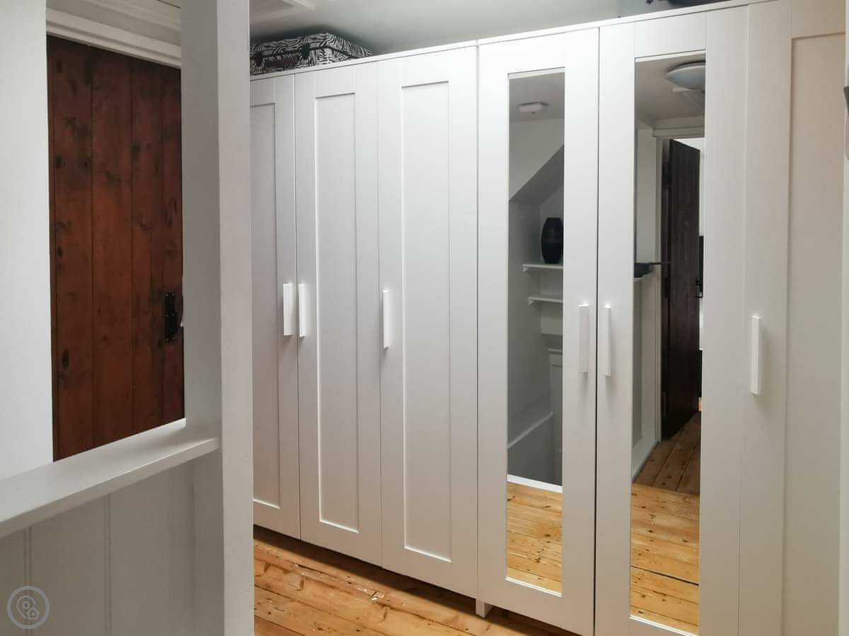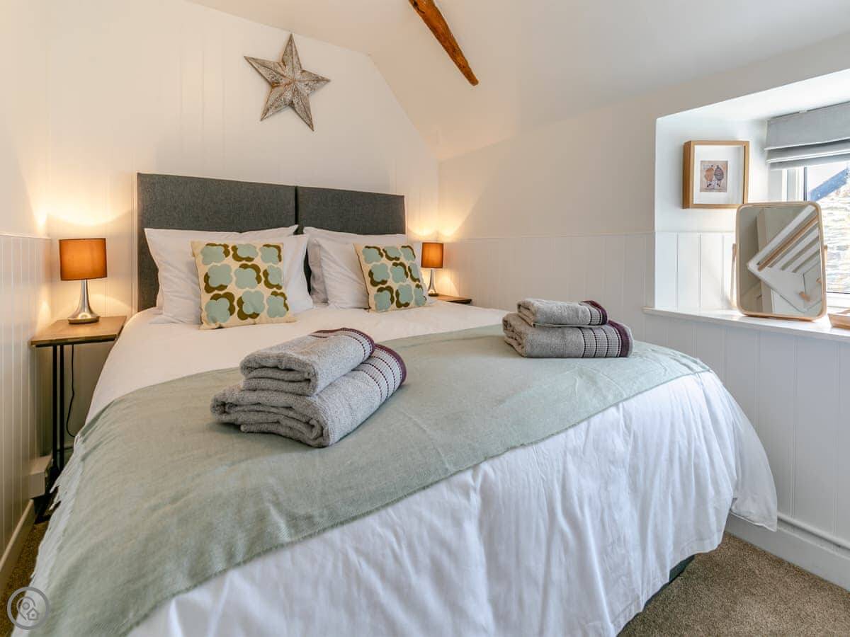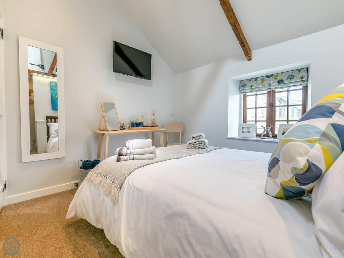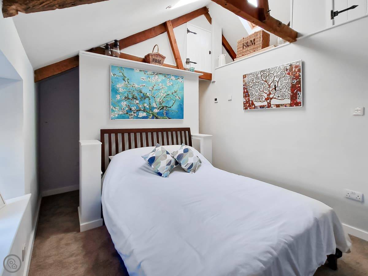 After an action-packed day exploring Dartmoor, head into the restful open plan living and dining area, and unwind on the sofa or armchair, watching a film on the Smart TV with Freeview, enjoying the glows of the wood burner in the background. The well-equipped kitchen includes a double electric oven, induction hob, dishwasher, microwave, washing machine, Nespresso coffee pod machine and upright fridge/freezer. Head upstairs where there are two beautiful bedrooms. The first has a double bed, chest of drawers and hanging space either side in alcoves behind bed. Smart TV with Freeview, and beautiful vaulted beamed ceilings. The second room has a kingsize zip and link bed which can be setup with twin beds if requested. Wardrobes on landing. The family bathroom is on the same floor and is fitted with a shower cubicle, vanity unit, heated towel rail and toilet.
