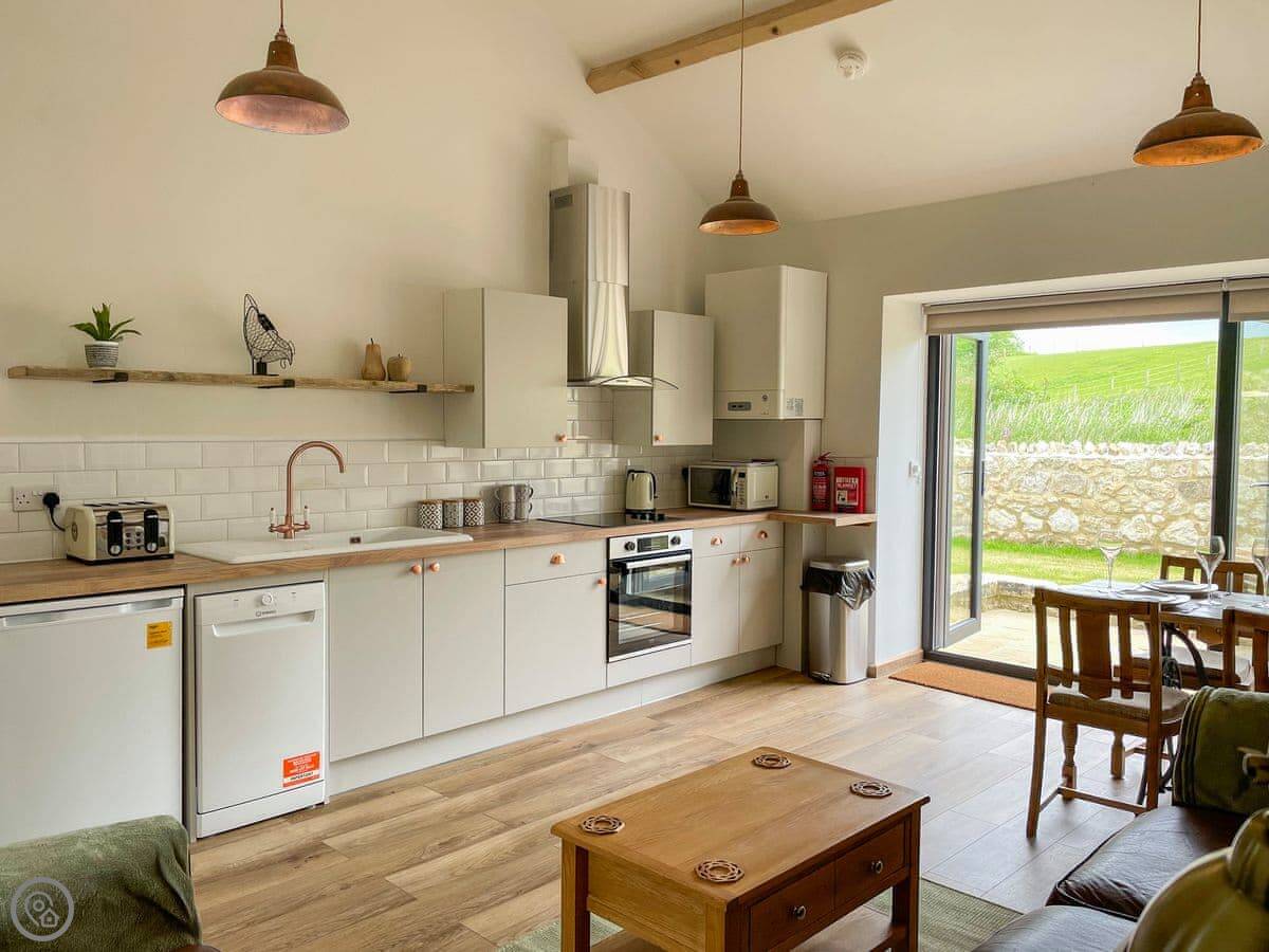 The Dairy, a former farm building, is situated in an Area of Outstanding Natural Beauty. The cottage offers cosy and comfortable accommodation alongside The Farriers . The Dairy is full of character boasting beautiful hand made features and tasteful décor throughout. On entering the property to your right along the corridor you’ll find the well-equipped kitchen, living and dining area. This space is the perfect communal area in which to unwind after a busy day exploring everything the island has to offer. The French doors lead you out to a private spacious garden that overlooks the farm’s fields, it’s a view not be missed! The Dairy has one shower room with a walk-in shower, a sink with a handmade vanity unit for storage and a heated towel rail. The master bedroom sleeps two guests in a kingsize bed and the second bedroom sleeps one further guest.