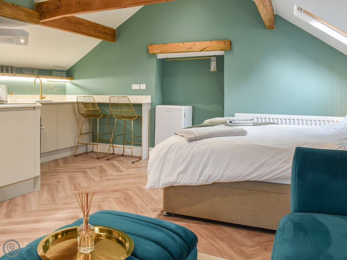 All three of these fabulous first floor apartments have been created from the original barns and stables on the farm. Little Hive, The Old Hayloft and Barn Owls Nest are the perfect retreat for exploring the stunning Peak District National Park and surrounding areas. Internally, the apartments offer guests wonderful interiors which cleverly combine the original fabric of the building alongside modern day living. Relax in comfy sofas and sink into the snuggly beds, perfect after a busy day exploring. The kitchen has all you could ask for to satisfy the chef of the family, and bespoke bathrooms finish off the apartments perfectly. Little Hive is a gated property set within 40 acres, which is home to over 30 horses. All three properties have their own individual style which the owner has skilfully developed, and the location is ideal, with so much to see and do in the area you will see yourselves coming back again and again!