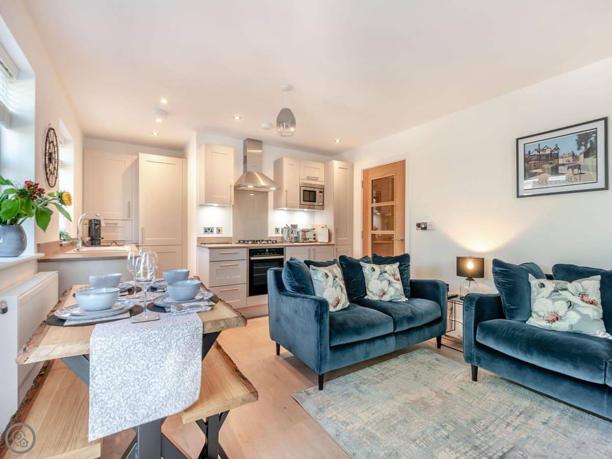 This pet friendly, two-bedroom apartment features open plan living space with an extremely modern brand-new kitchen which is well equipped with Neff appliances for all your dining needs, comfortable seating, and Smart 50" TV. The dining table is made from solid oak from the New Forest. The property features a kingsize room with Hypnos bed and twin bedroom room again with Hypnos single beds, perfect for a family of four, both with quality, Morris and Co bed linen. Outside are two allocated parking spaces and cycle racks, and the apartment also benefits from a balcony with seating for two. Forest Acorn is within walking distance of many local amenities and is within a 10-minute walk of the local railway station with frequent services to Bournemouth, Southampton and London Waterloo. During the last week of July there is an annual spectacle and celebration of forest life, the New Forest County Show. The local area is home to ponies, donkeys, and cattle – all of which are known to roam the main street in Brockenhurst. There is a pretty picnic and shallow water swimming spot on the river at Balmer Lawn.