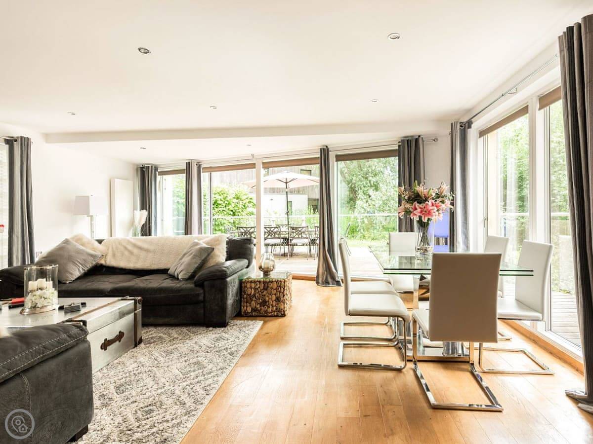 Sunset Lodge is a modern spacious home, wonderful for those wishing to enjoy a tranquil stay in the Cotswolds. The house sits on the very edge of mill house stream which is a haven for wildlife. The property offers extensive outside decking and seating by the water’s edge along with extended cantilevered decking over the water all protected with glass balustrade.