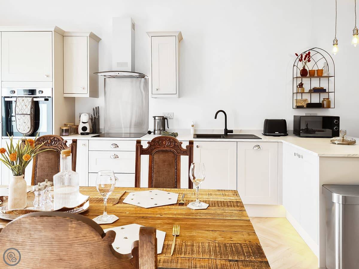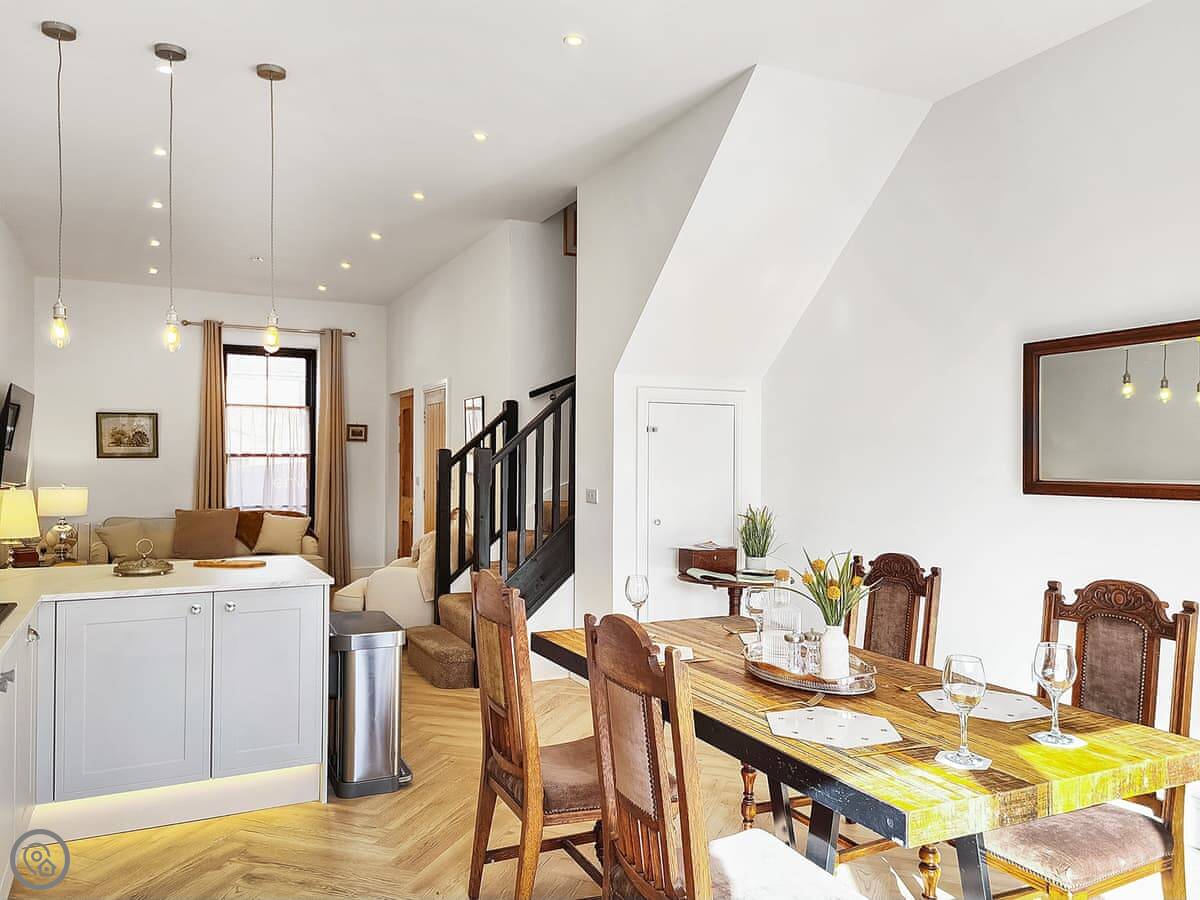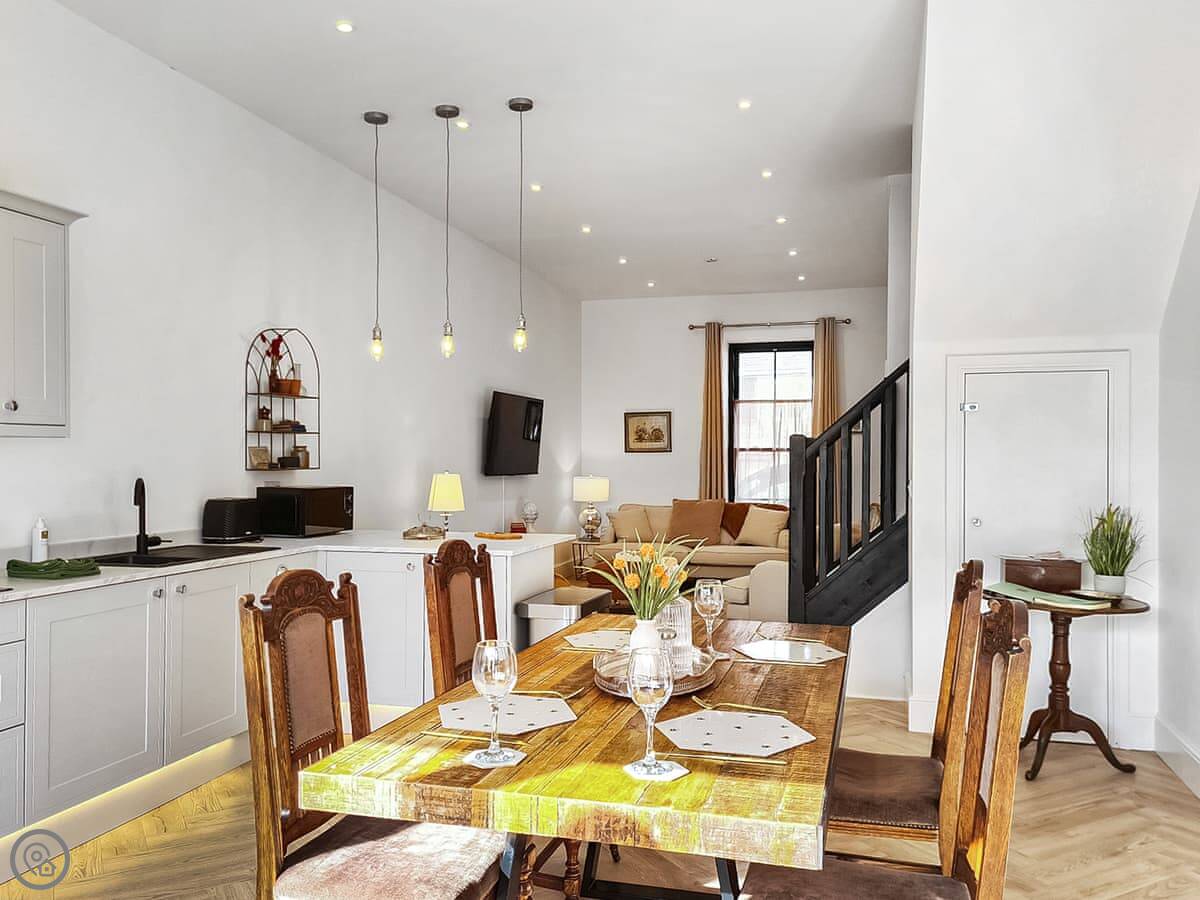 This unique property was sympathetically converted to a holiday cottage in 2023. No expense has been spared by the owners to ensure anyone who stays here will feel completely indulged. The ground floor is open-plan throughout, with a comfortable space for relaxing and cosying up together. The dining area accommodates four people comfortably to enjoy a special evening meal or a hearty breakfast before a full day exploring the area. The kitchen is contemporary with all modern appliances. French doors from the kitchen lead to a private courtyard area. This property is perfect for couples and small families looking for that ’extra special’ place to stay.