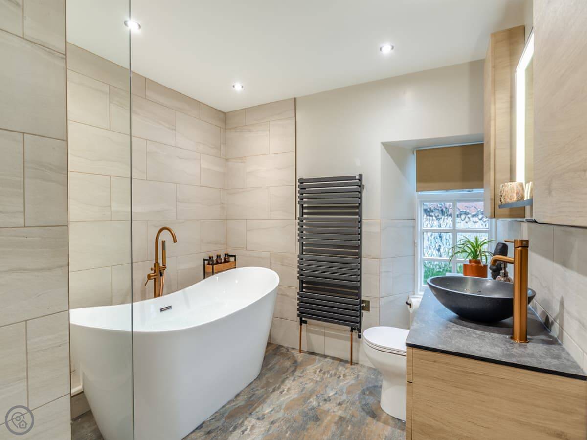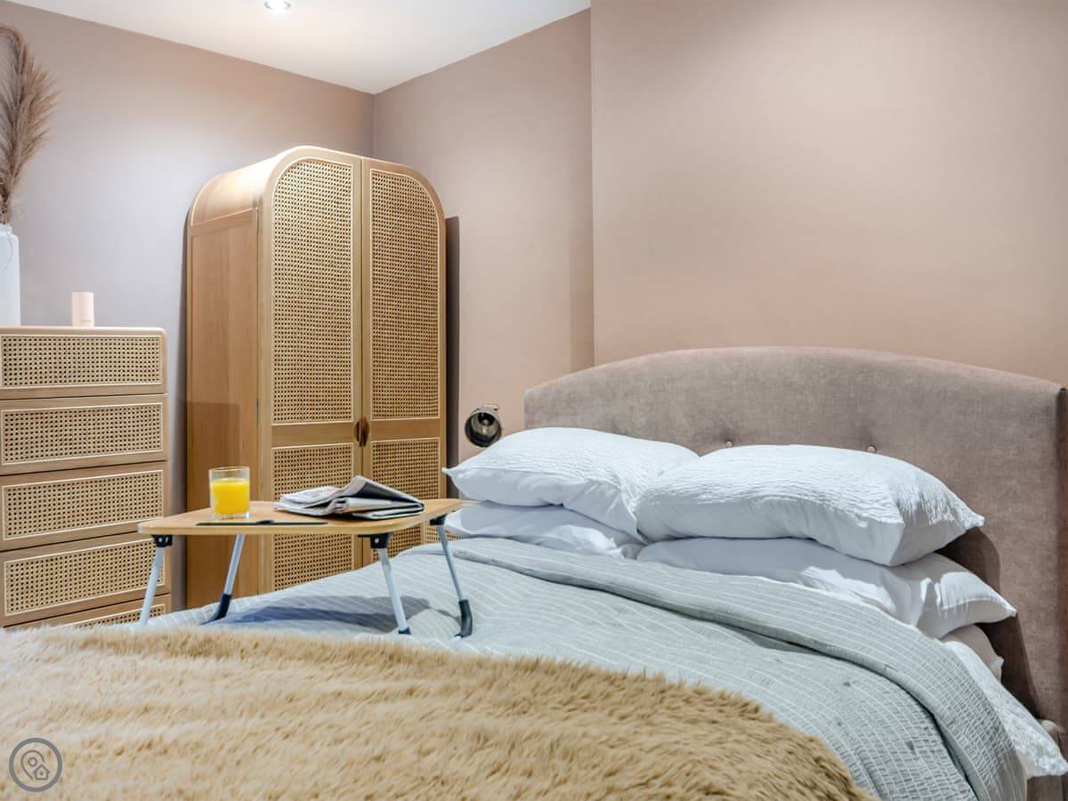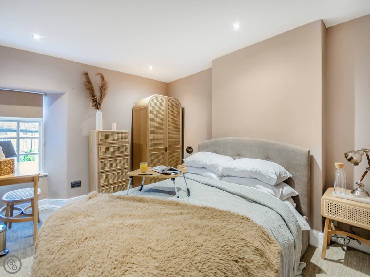 Facilities wise: it's got a dishwasher, washing machine, WiFi, and bedding and towels are included. It's wheelchair accessible at the entrance, but the living room is up a flight of stairs. Two well-behaved dogs are welcome.